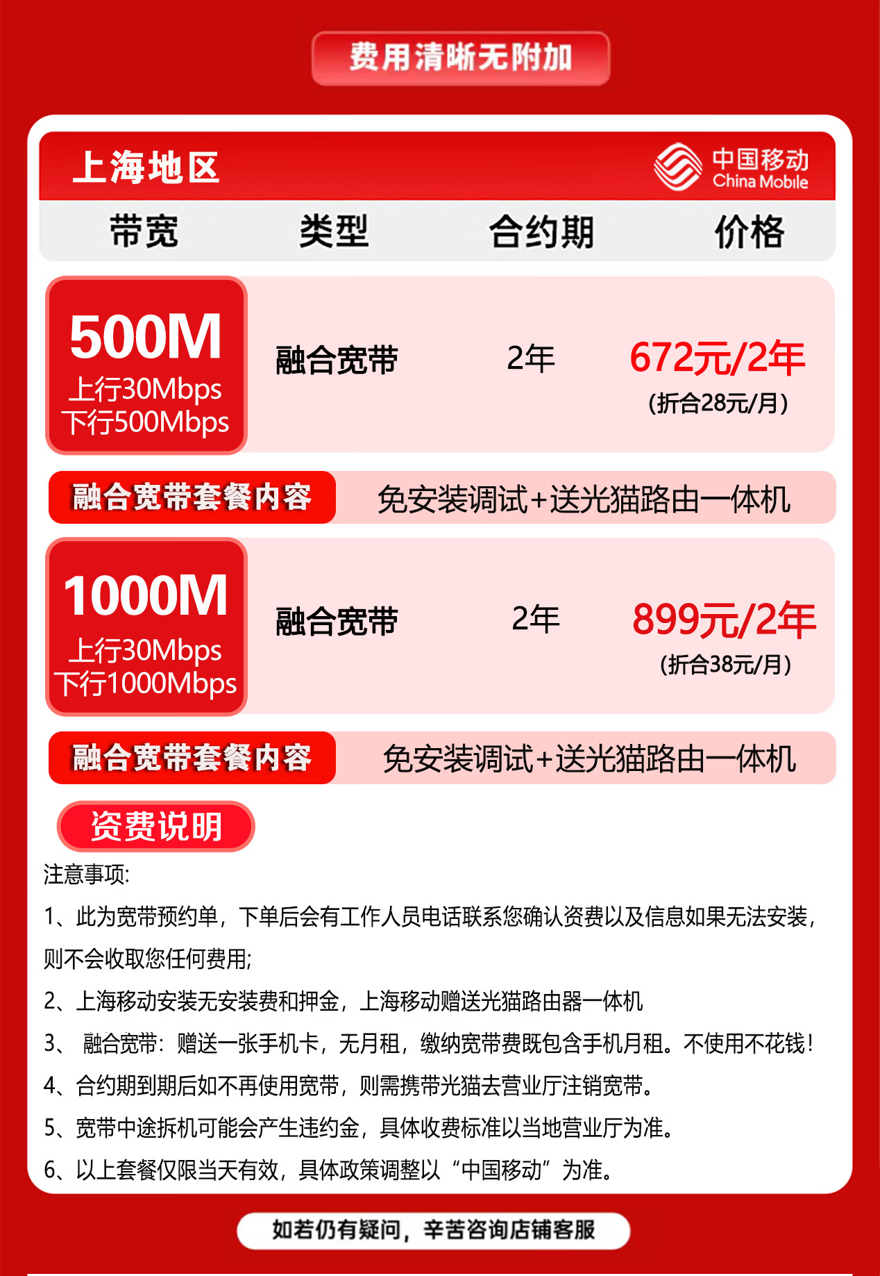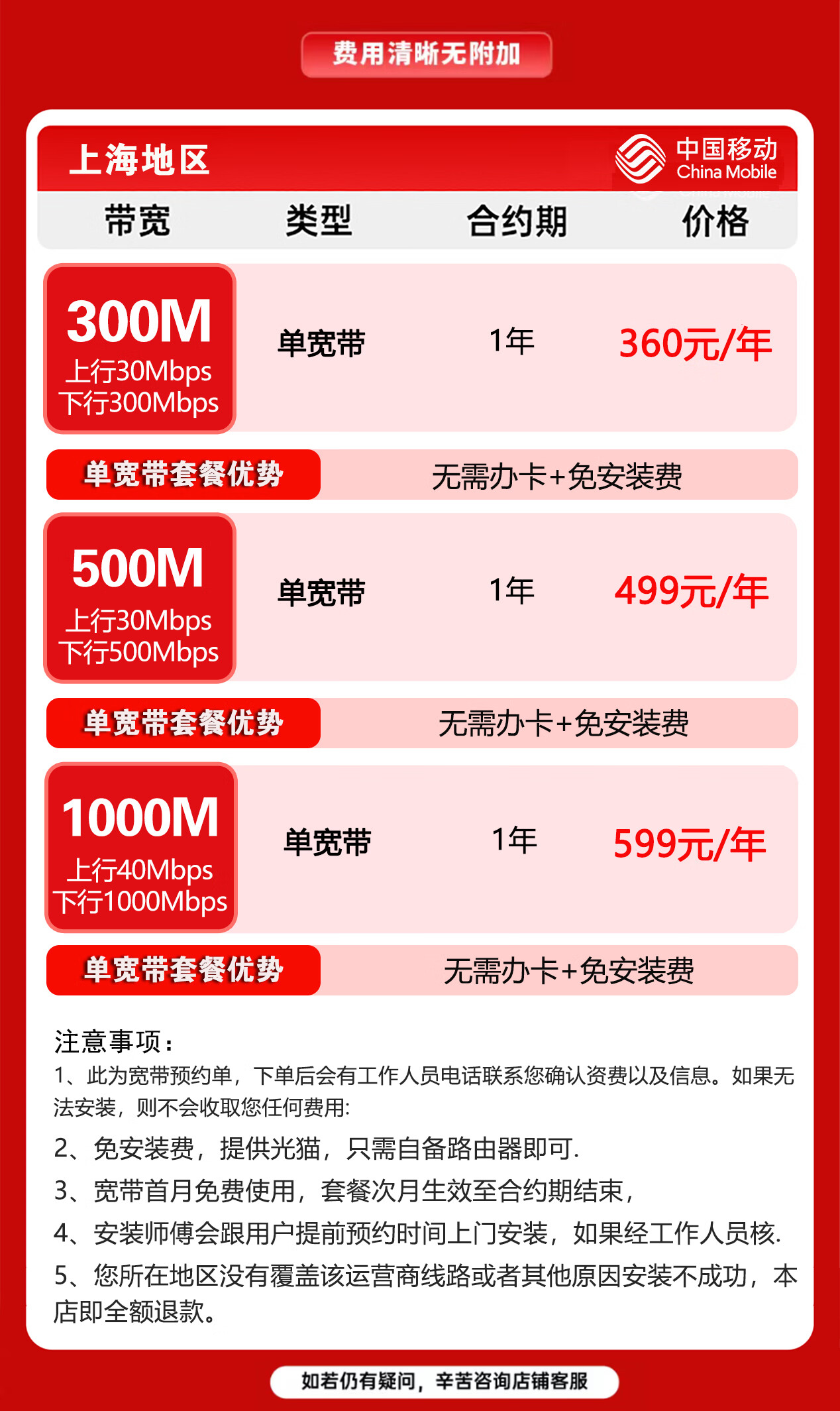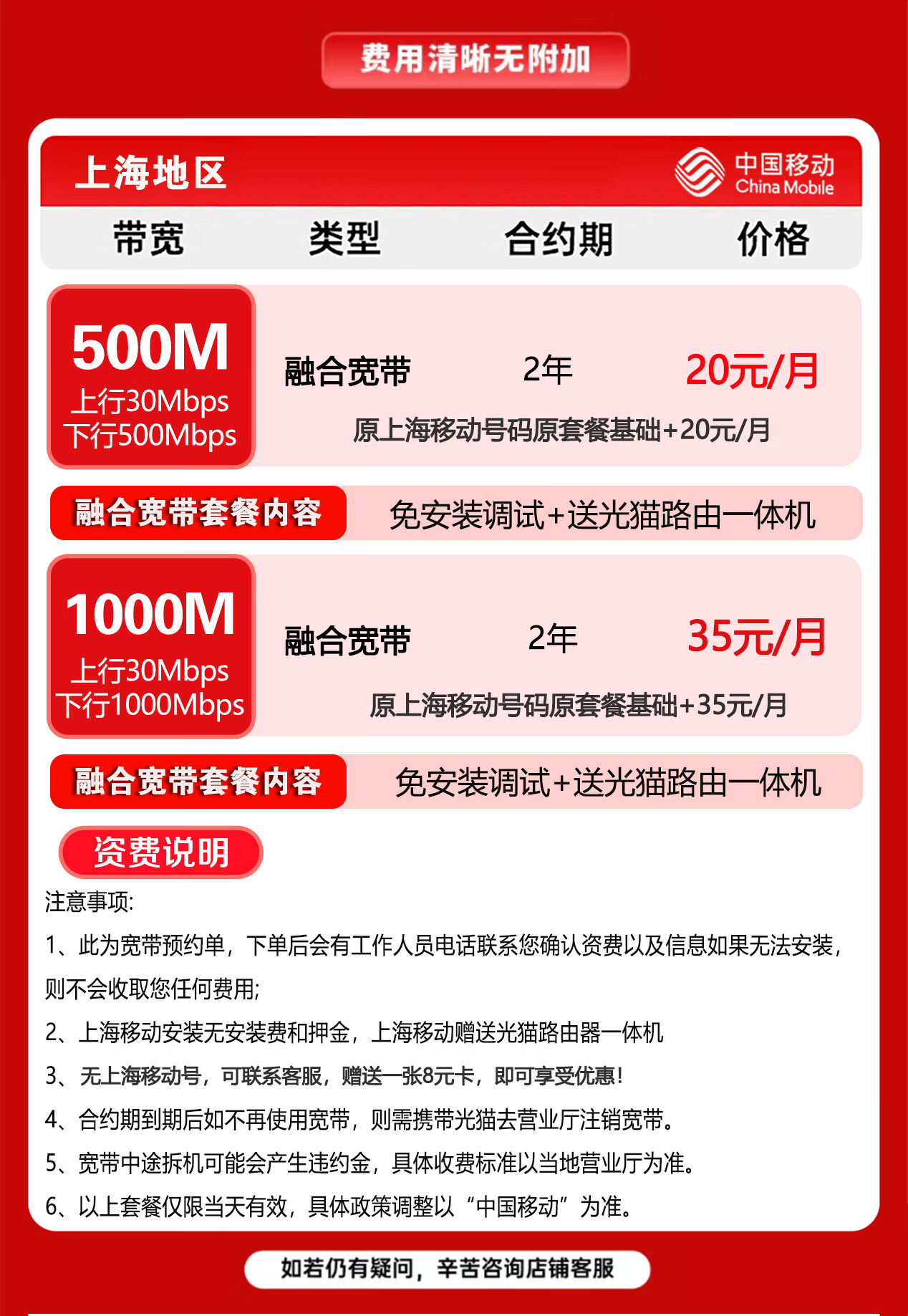 China Mobile Shanghai Mobile Broadband handles fiber optic broadband installation and door-to-door installation of Shanghai single broadband Shanghai Mobile Broadband handles Shanghai broadband for 499 yuan for 2 years 300M
