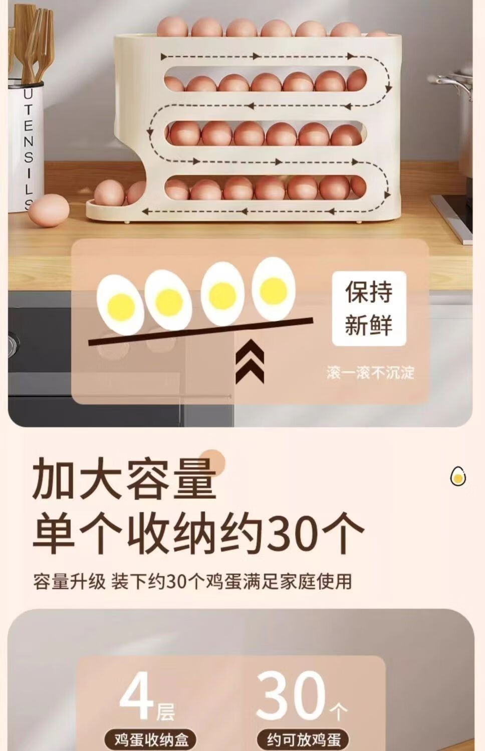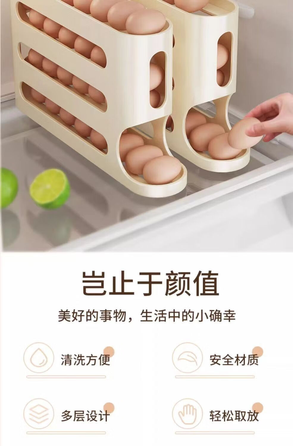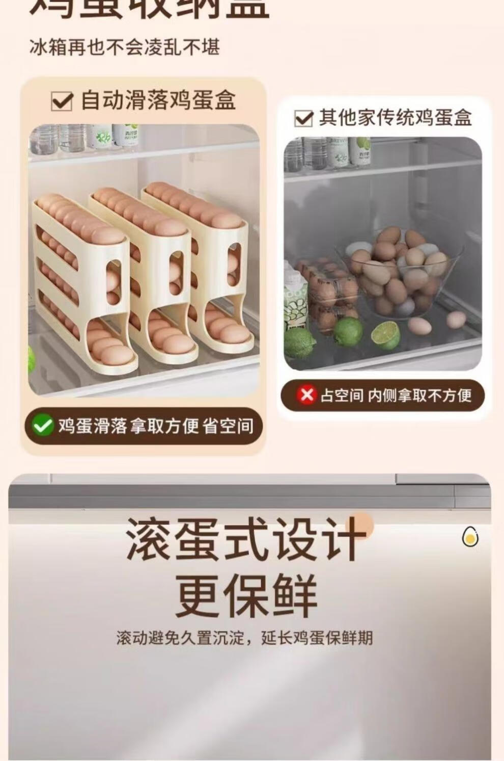NAOISKEY household egg carton-level slide-type egg rolling device kitchen refrigerator egg storage rack multi-layer oblique rolling egg carton // egg storage box clean and sterile // sterile egg storage box 1 pack pure white