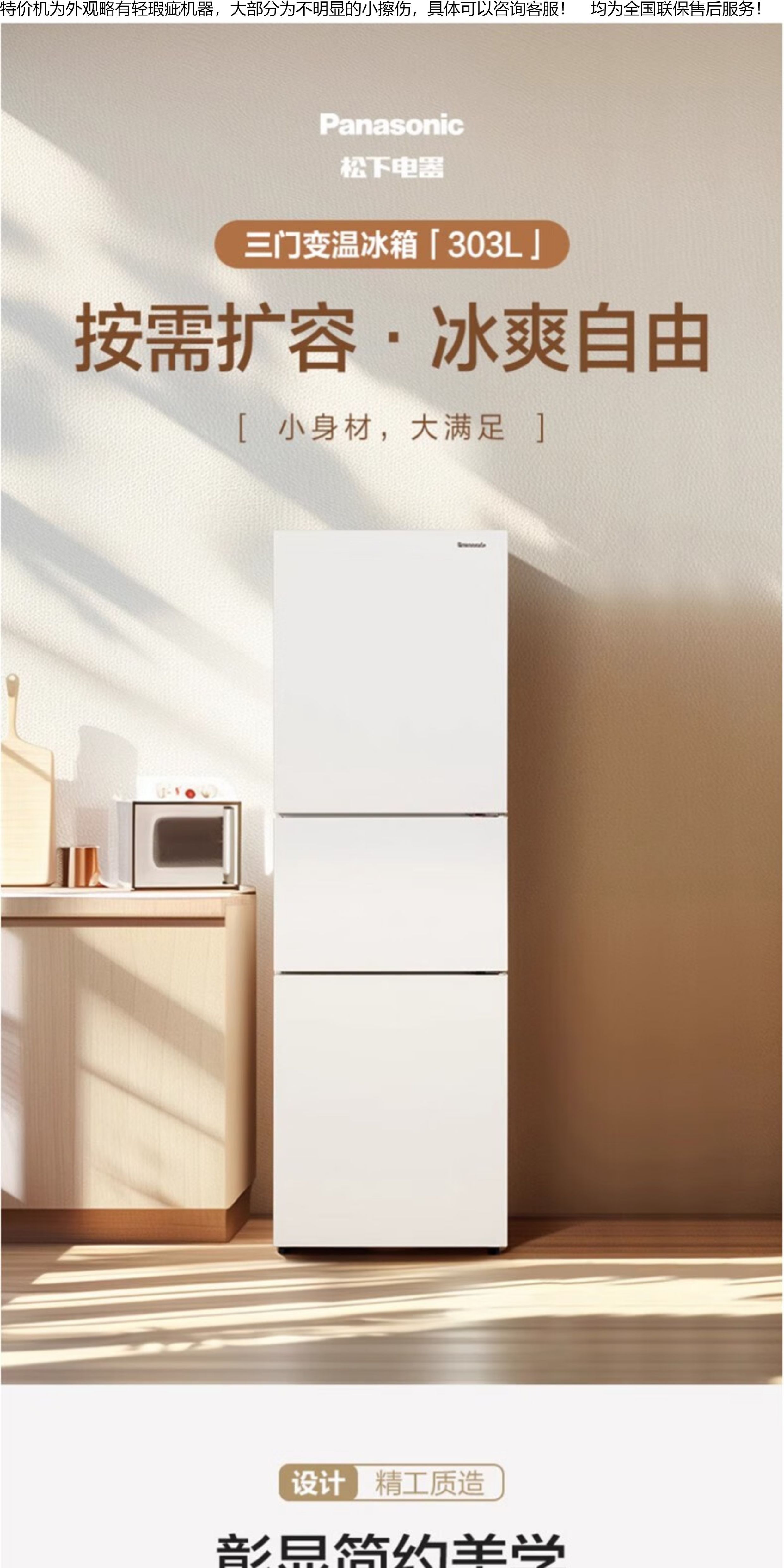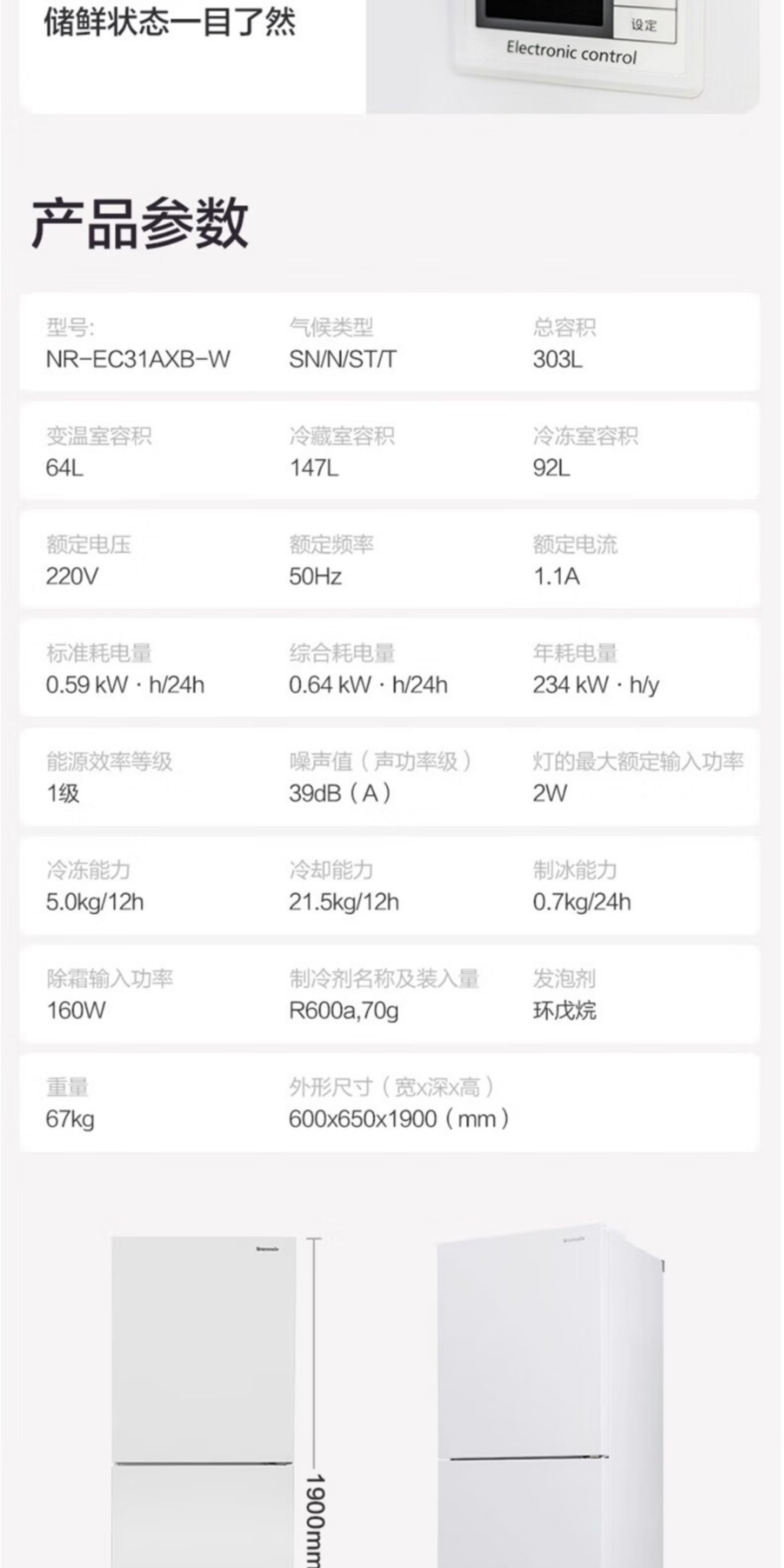 Panasonic/Panasonic NR-EC31AXB-W/XC30A2A-S three-door household refrigerator 303 automatic ice making Cranberry NR-XC30A2A-S slightly defective 300 liters