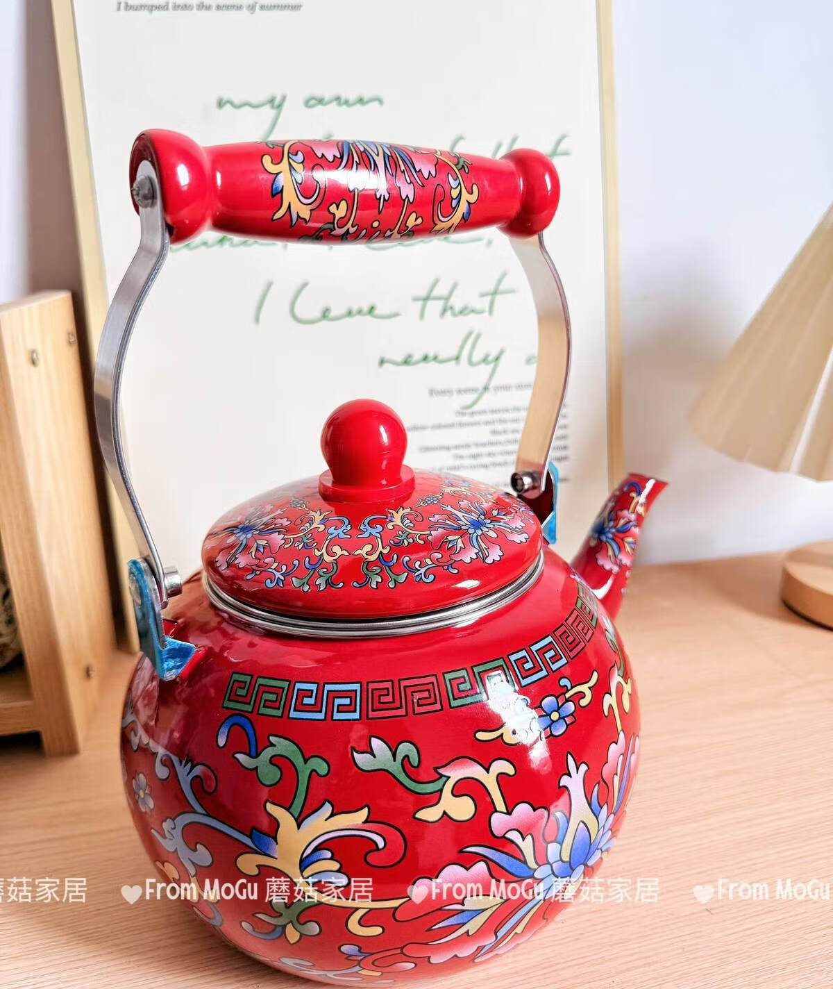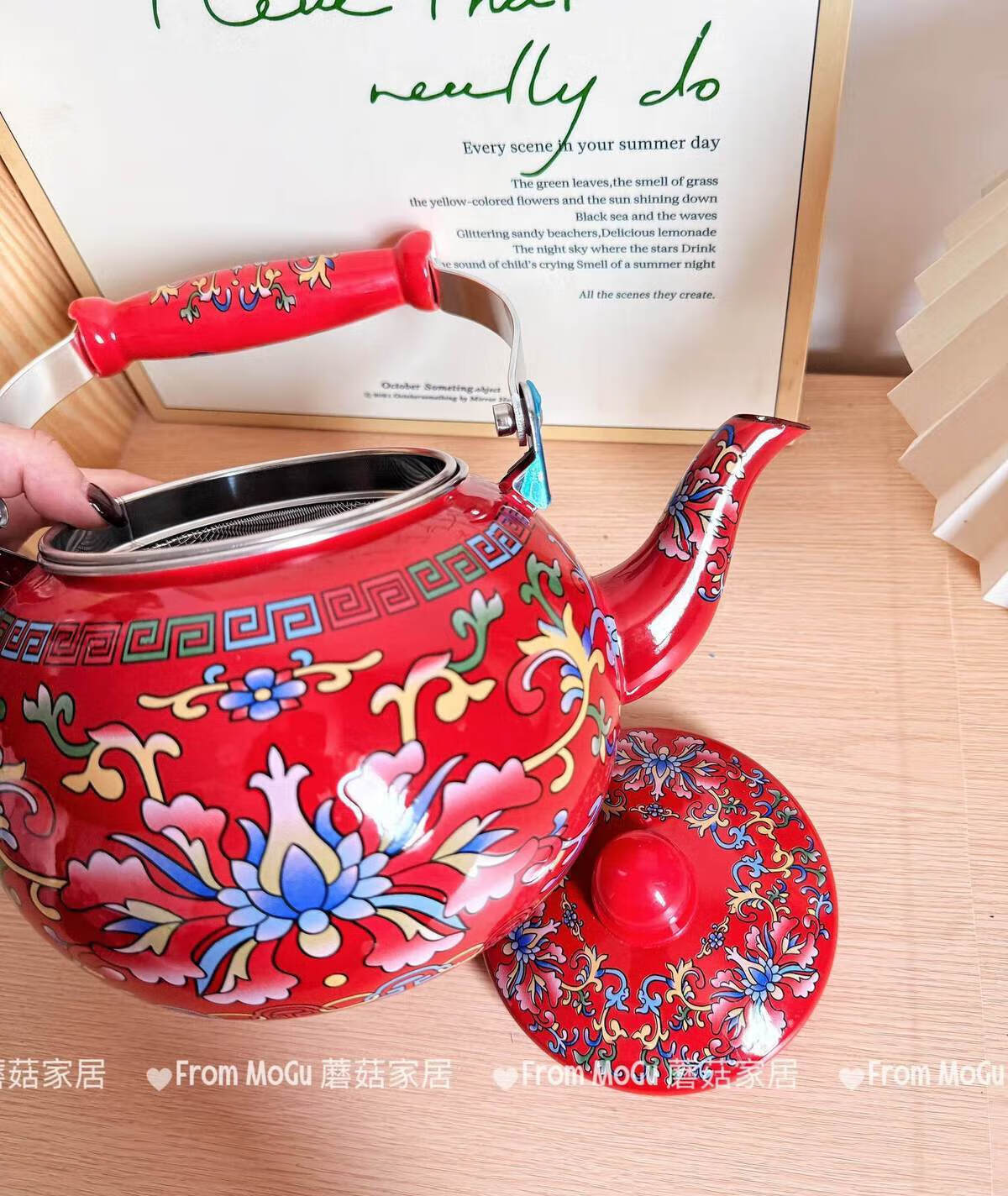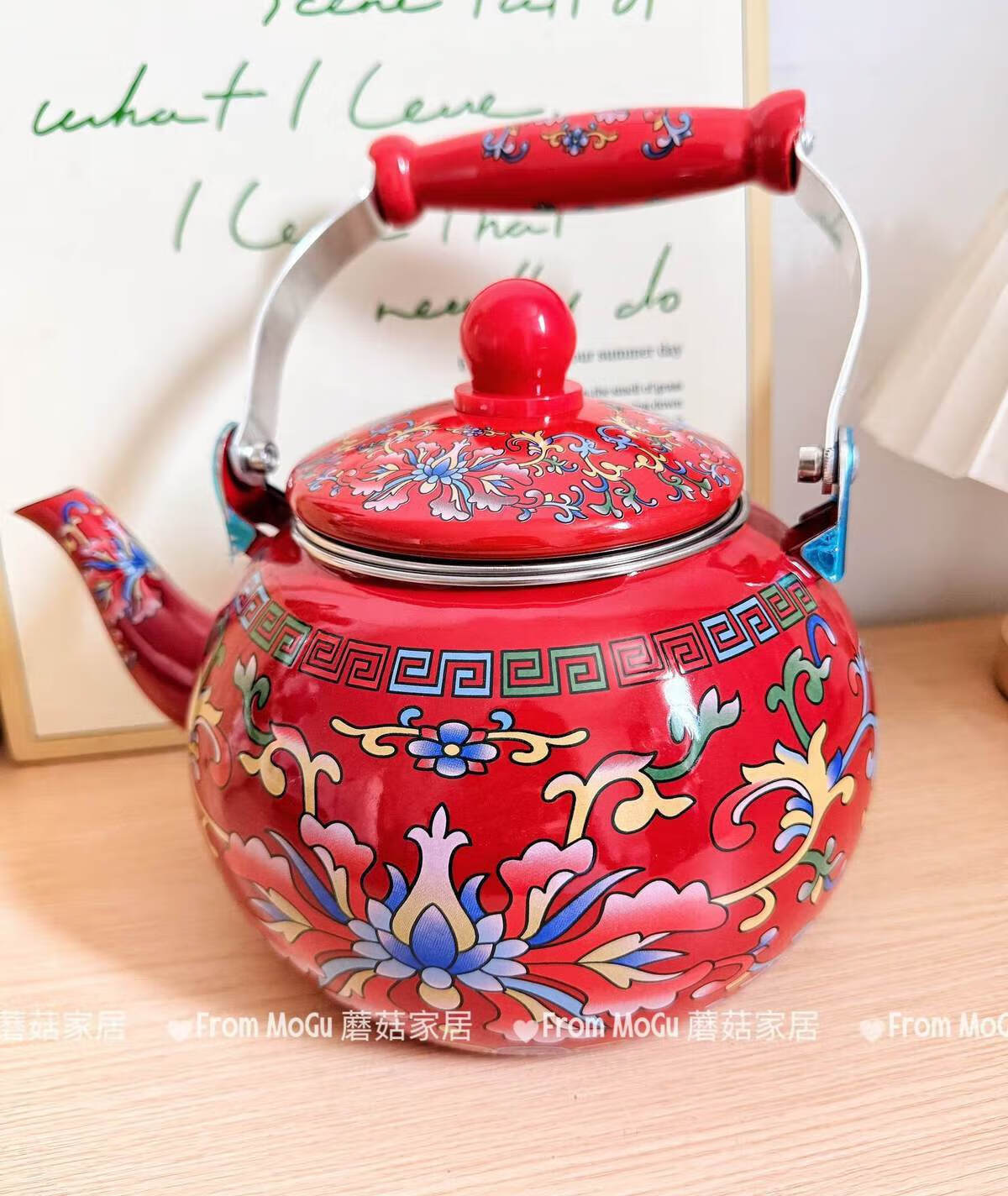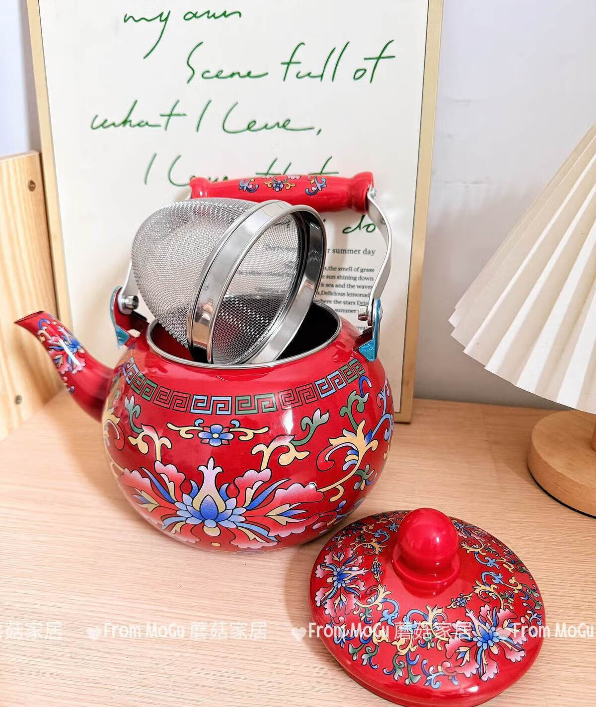 NAOISKEY Naoski Red Hook Lotus kettle thickened 2.5L large capacity enamel enamel old-fashioned kettle for cooking milk tea and boiling water Red Hook Lotus kettle capacity 2.5L