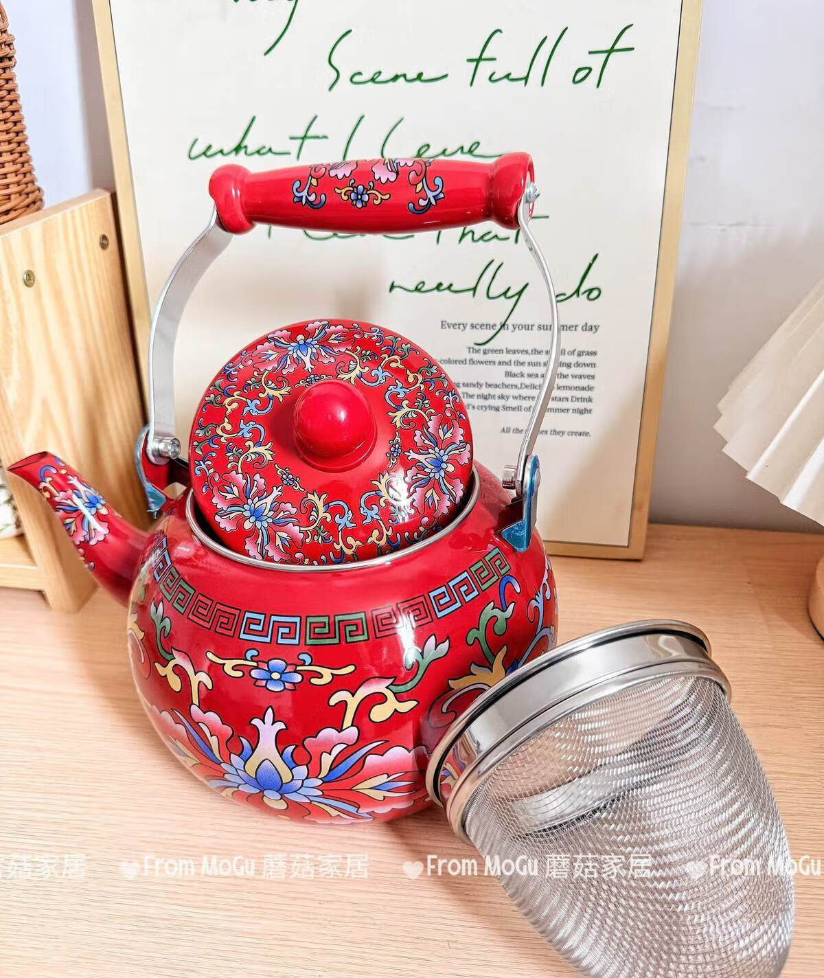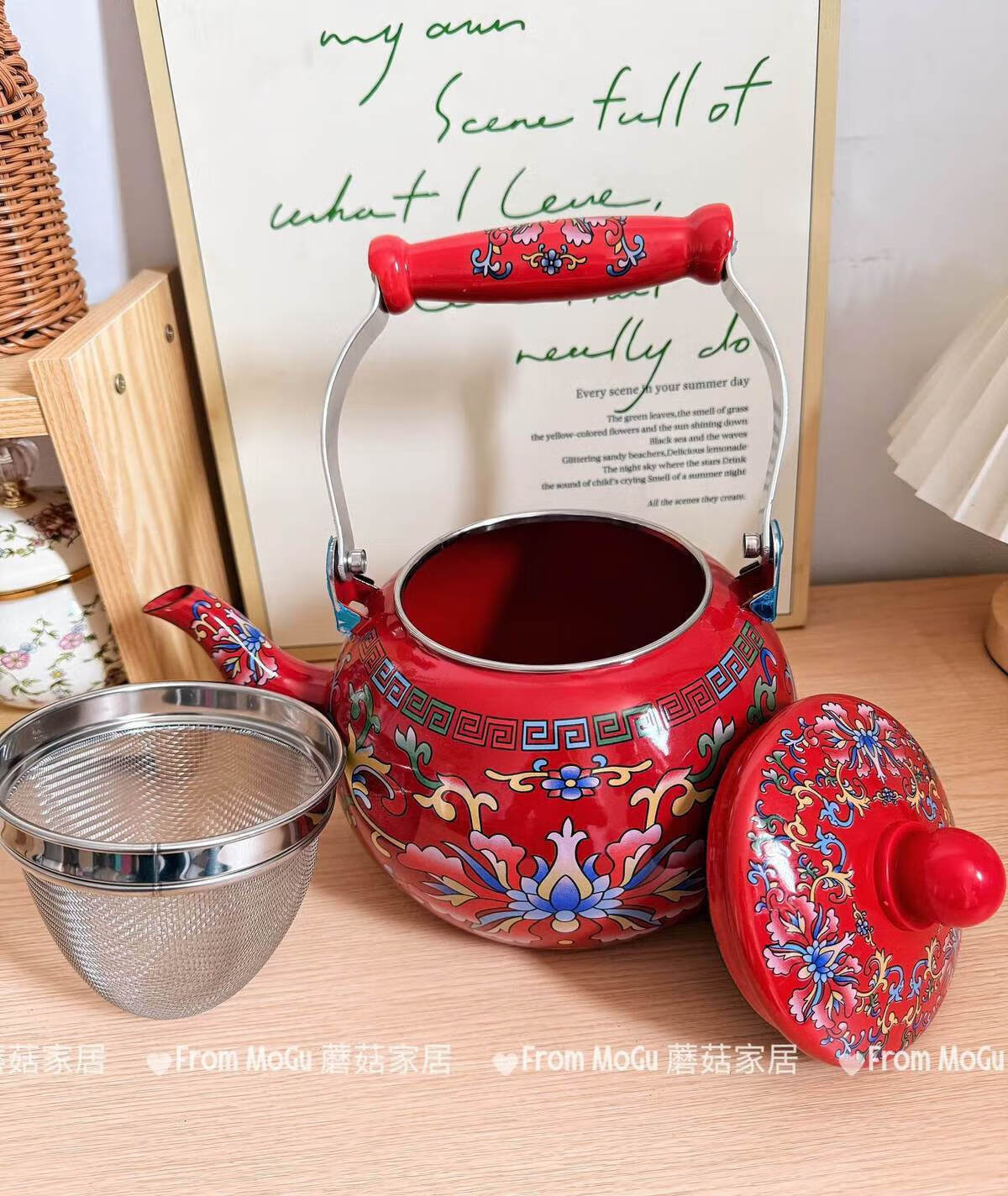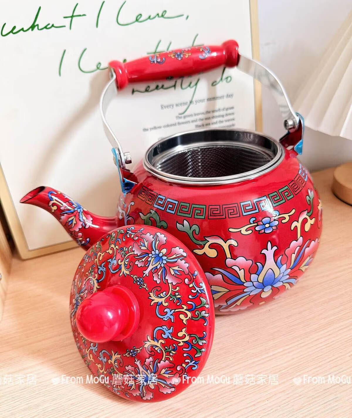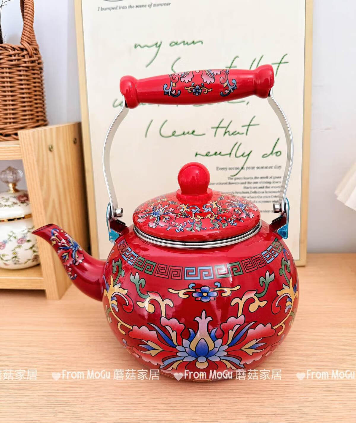 NAOISKEY Naoski Red Hook Lotus kettle thickened 2.5L large capacity enamel enamel old-fashioned kettle for cooking milk tea and boiling water Red Hook Lotus kettle capacity 2.5L