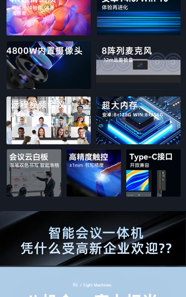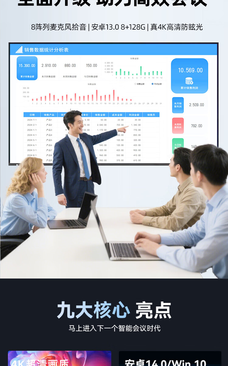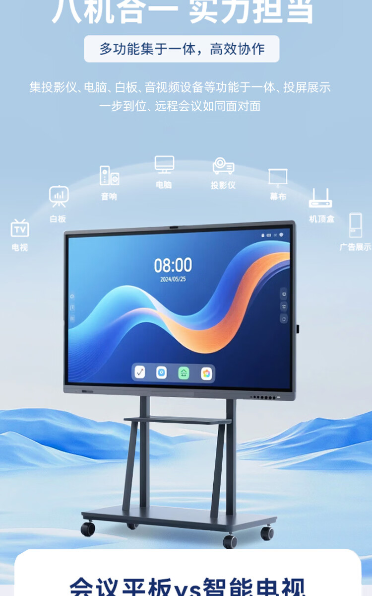 Seewo electronic whiteboard SEEWOAI conference all-in-one tablet touch screen multimedia teaching touch screen training mobile TV touch 4K education projection screen office remote smart screen 100 inches mobile cart + stylus Android + computer dual system 8 + 256G high configuration