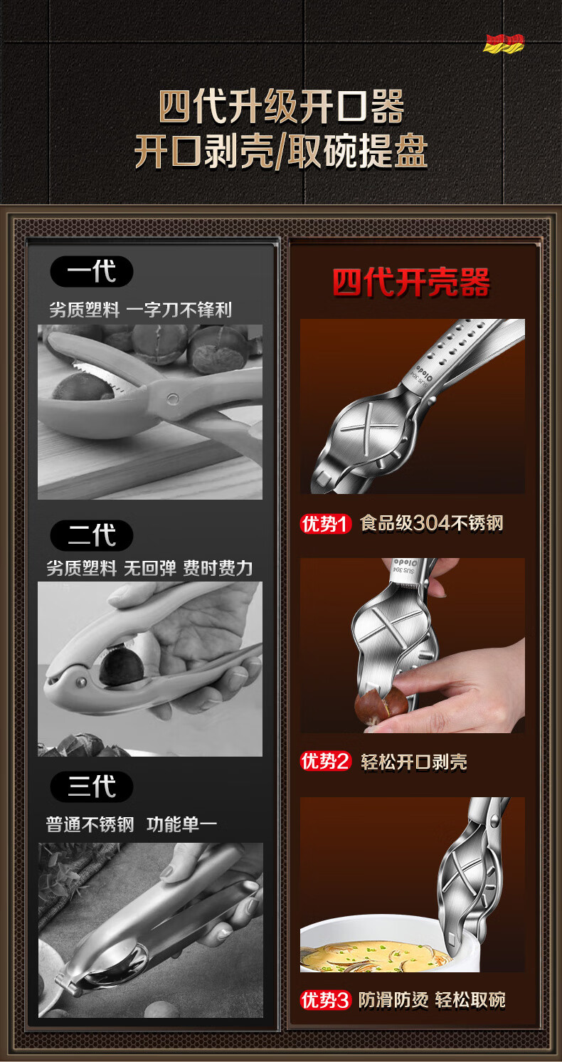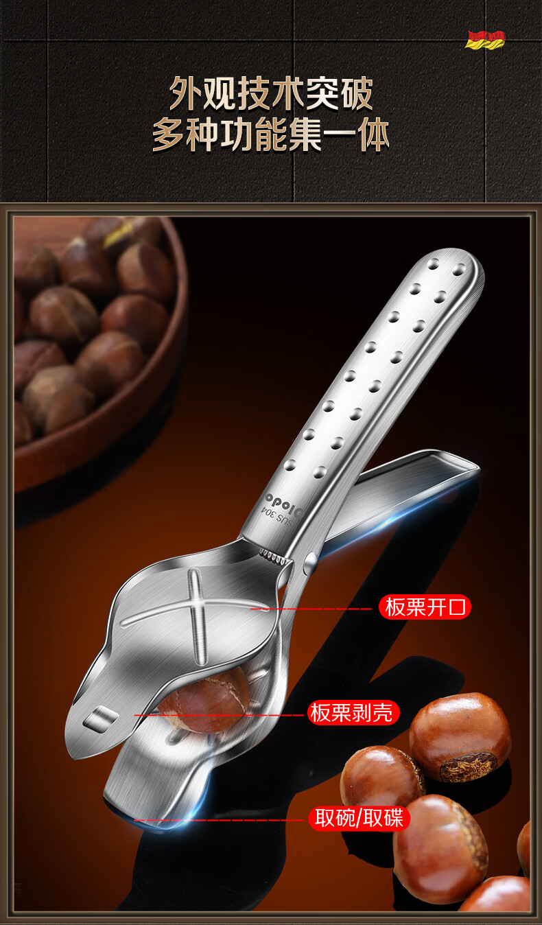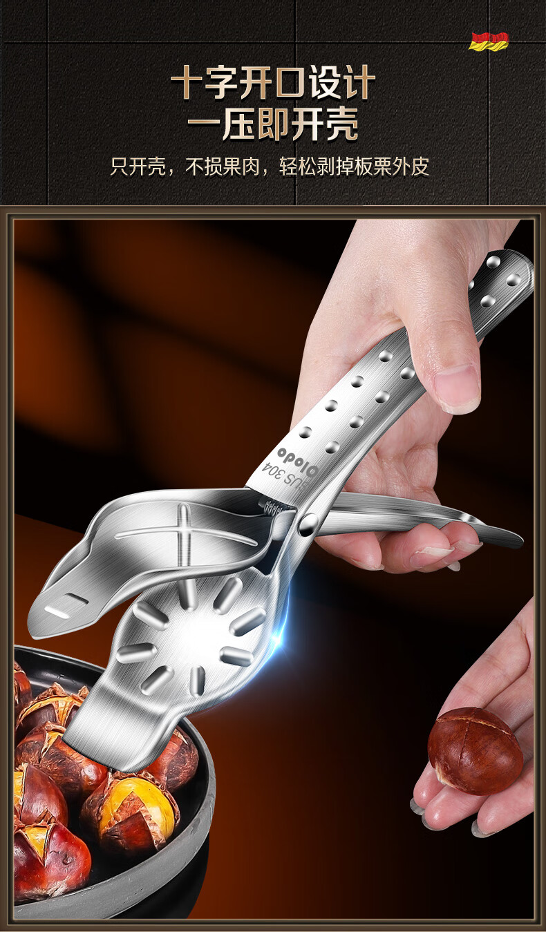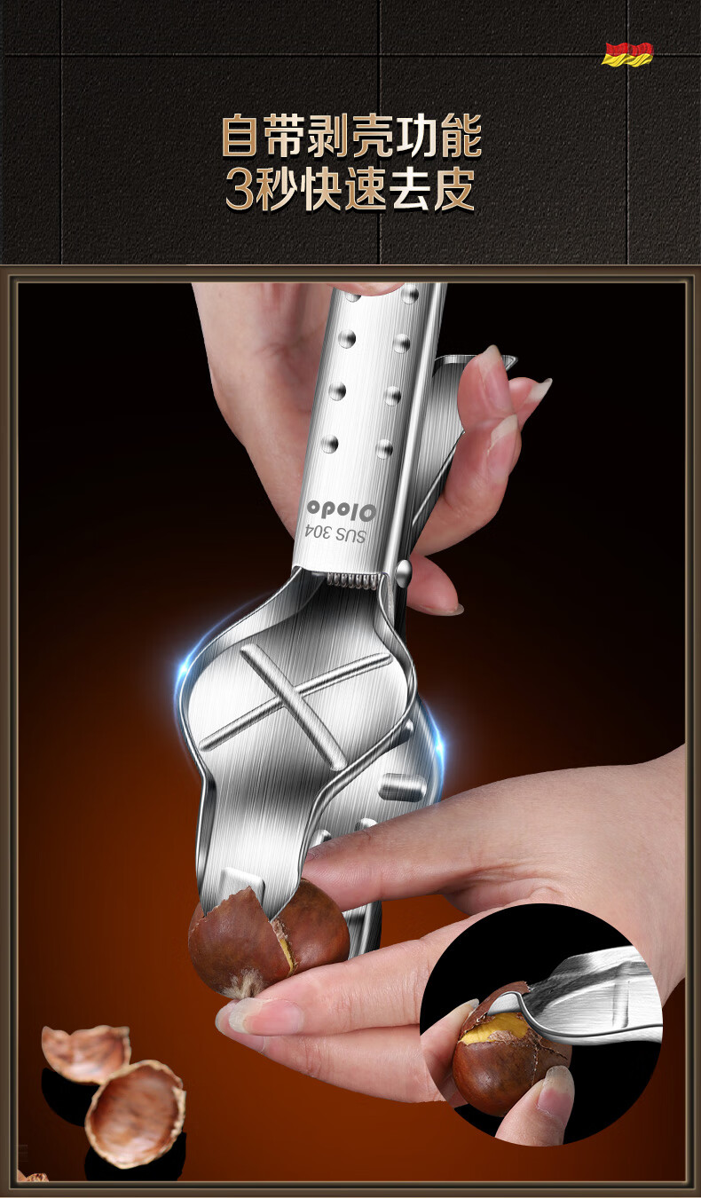 Olodo 304 stainless steel walnut clip, chestnut opener, multi-functional nut clip, special core removal tool, chestnut clip + 1 chestnut plate + 4 shelling protectors