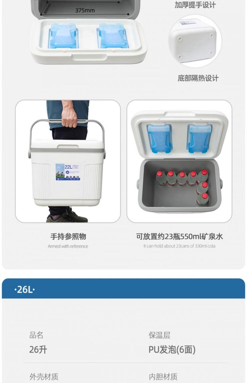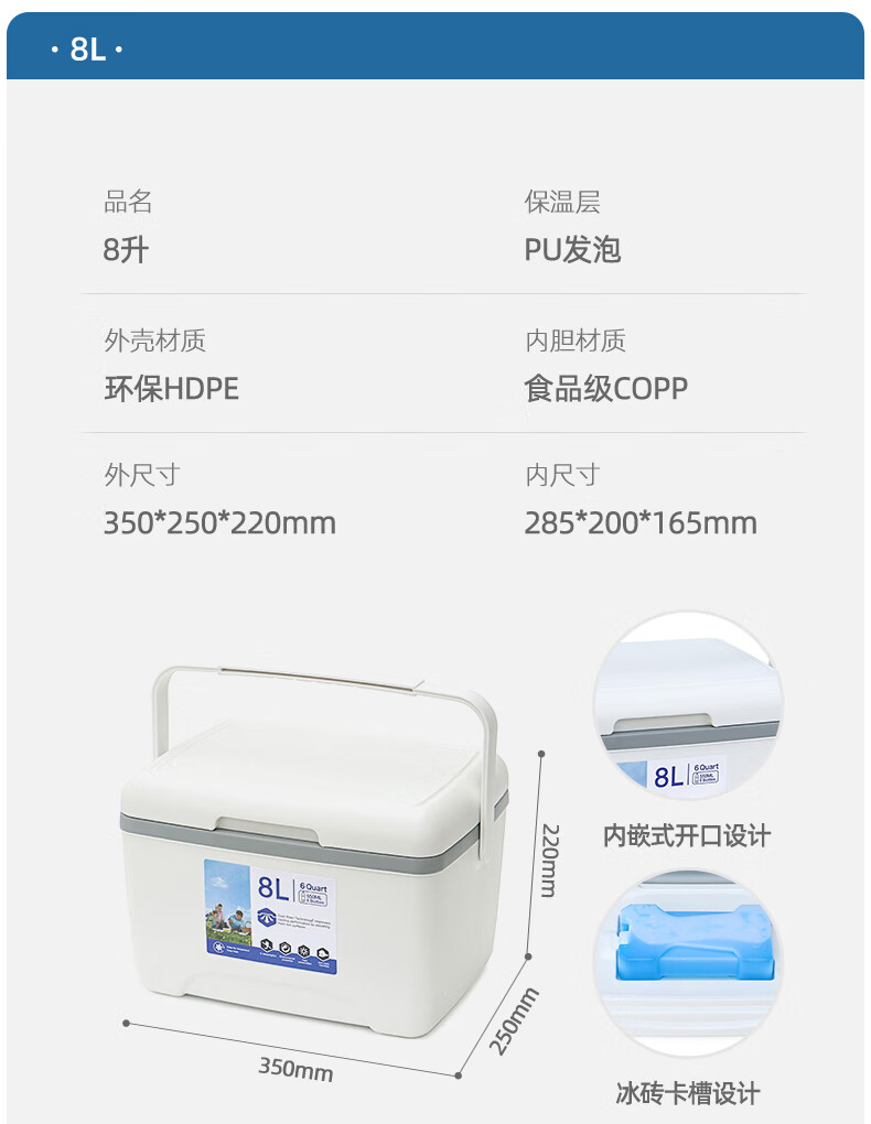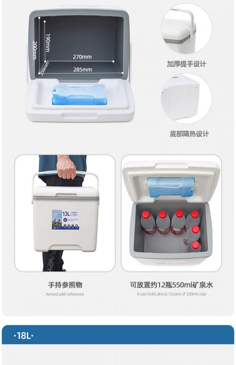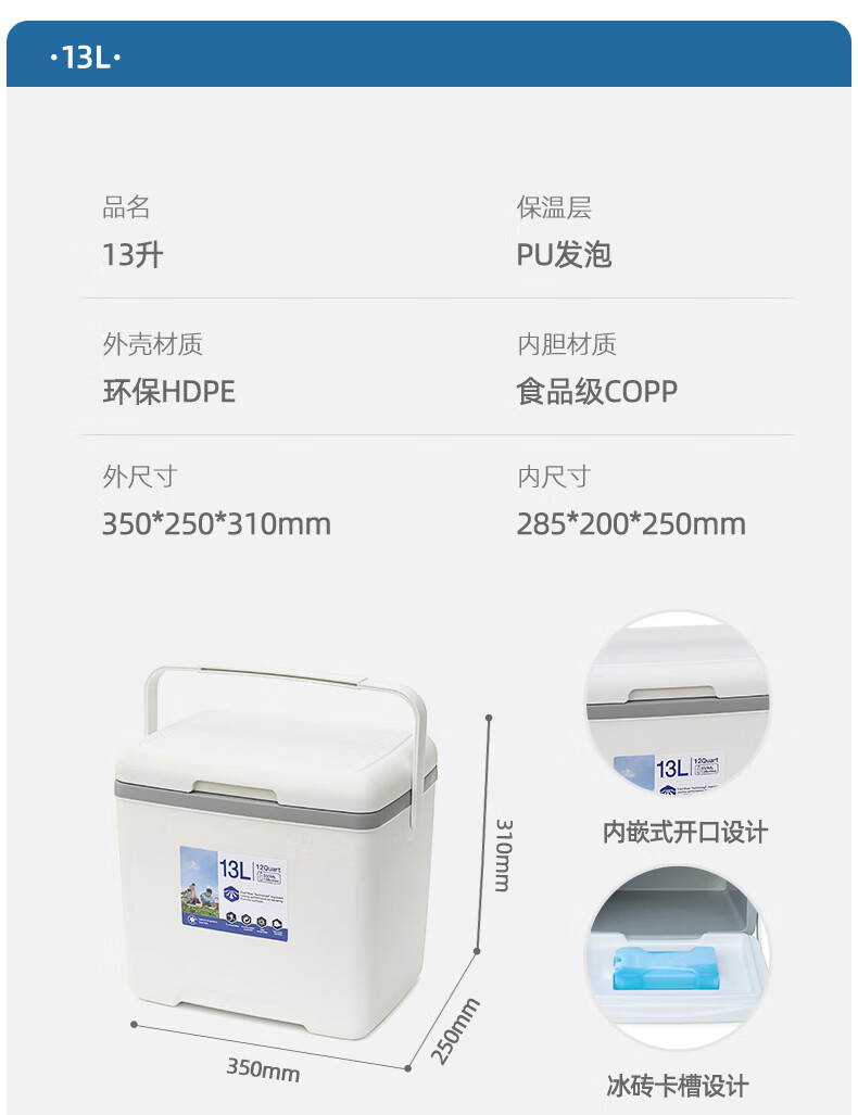 Fat Donglai's same style take-out insulated box, insulated box, refrigerator, household car-mounted outdoor food insulator, 13 liters white PU foam cover, ice brick + ice brick*1 + ice bag 1