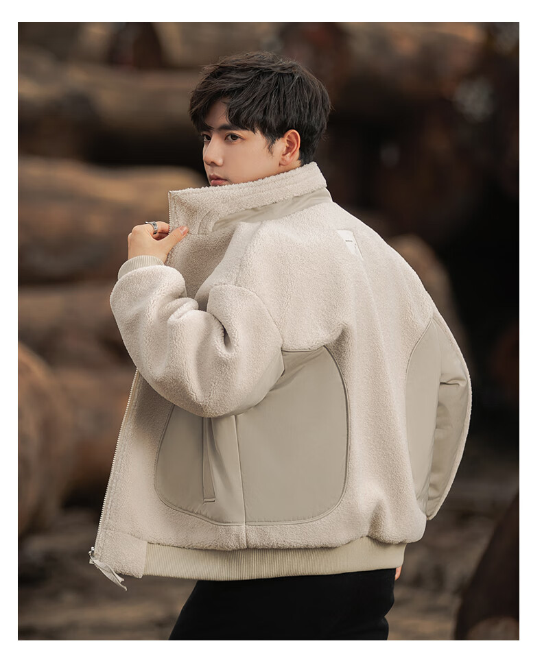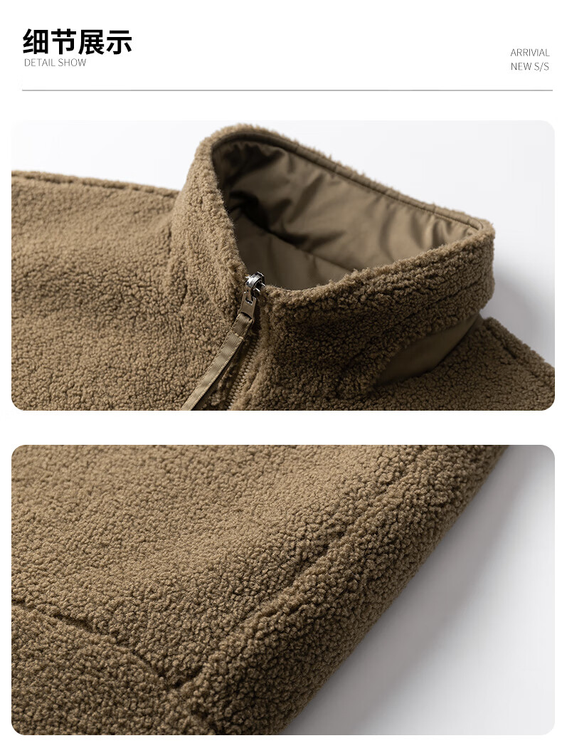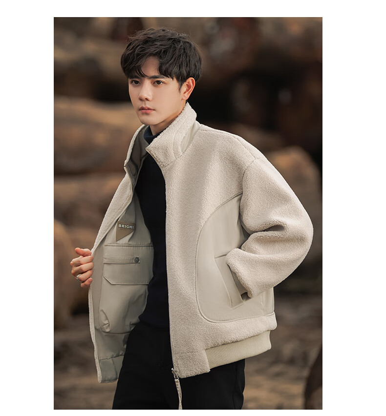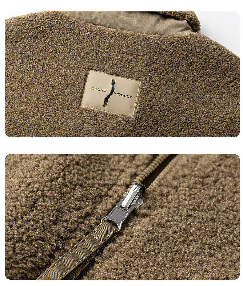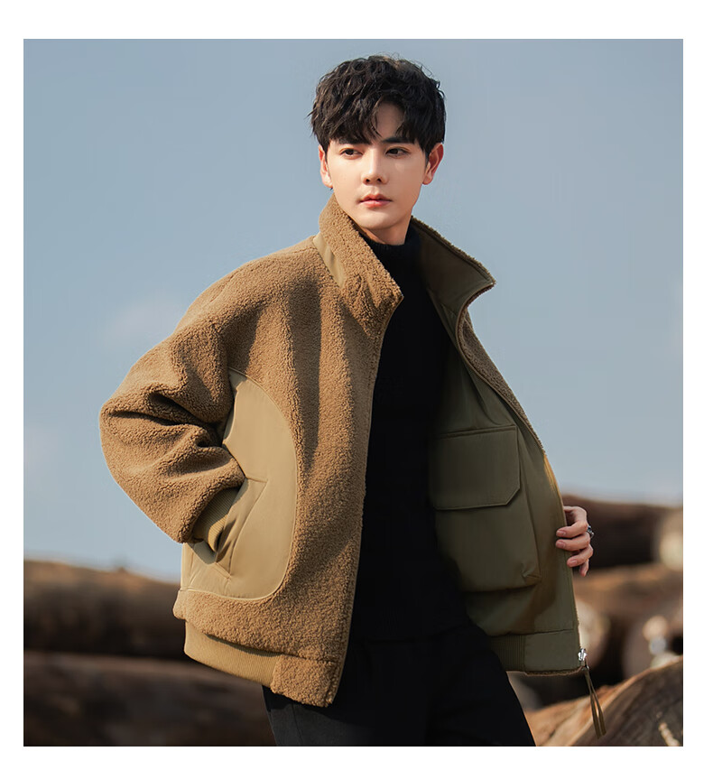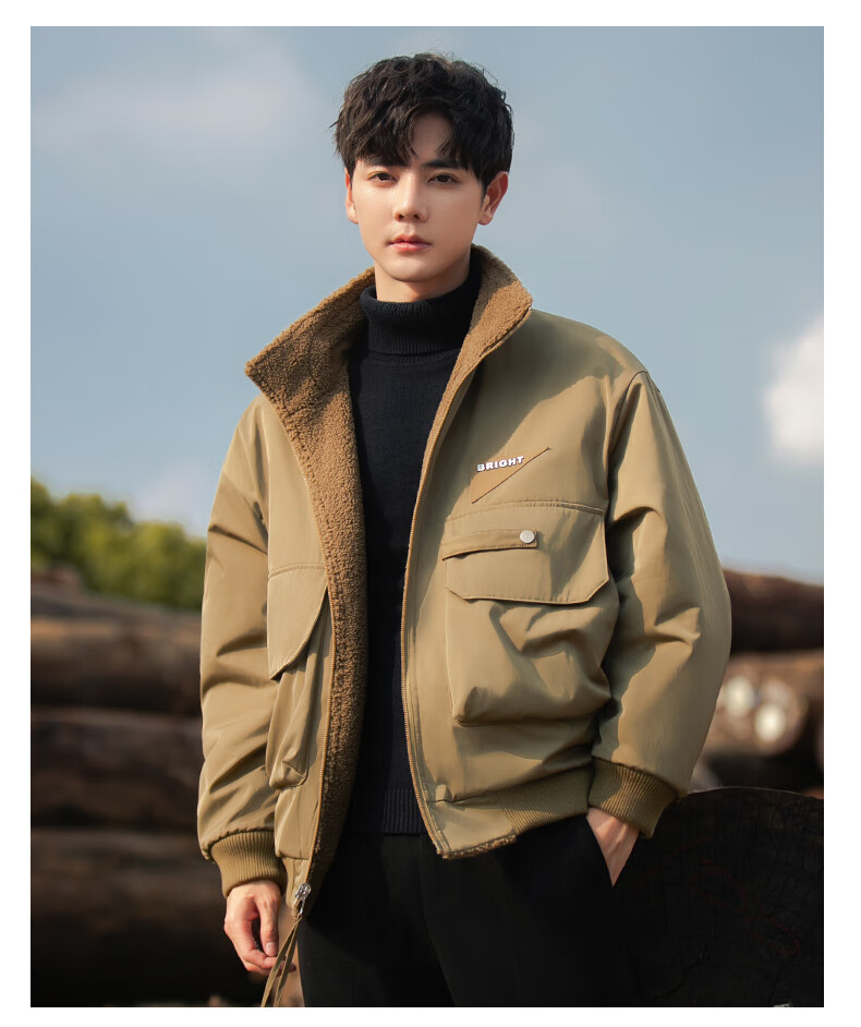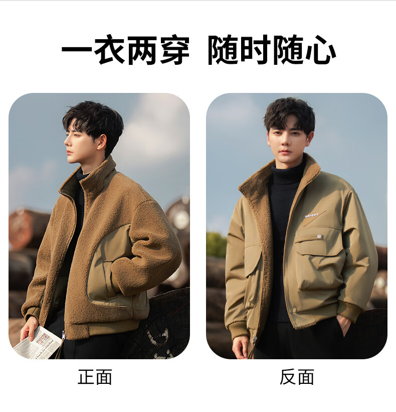 ROMON reversible sherpa jacket men's autumn and winter new jacket men's polar fleece fur one-piece men's thickened khaki XL
