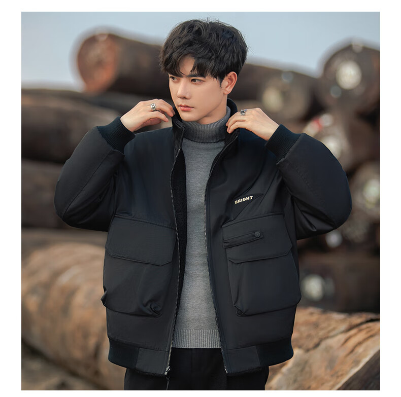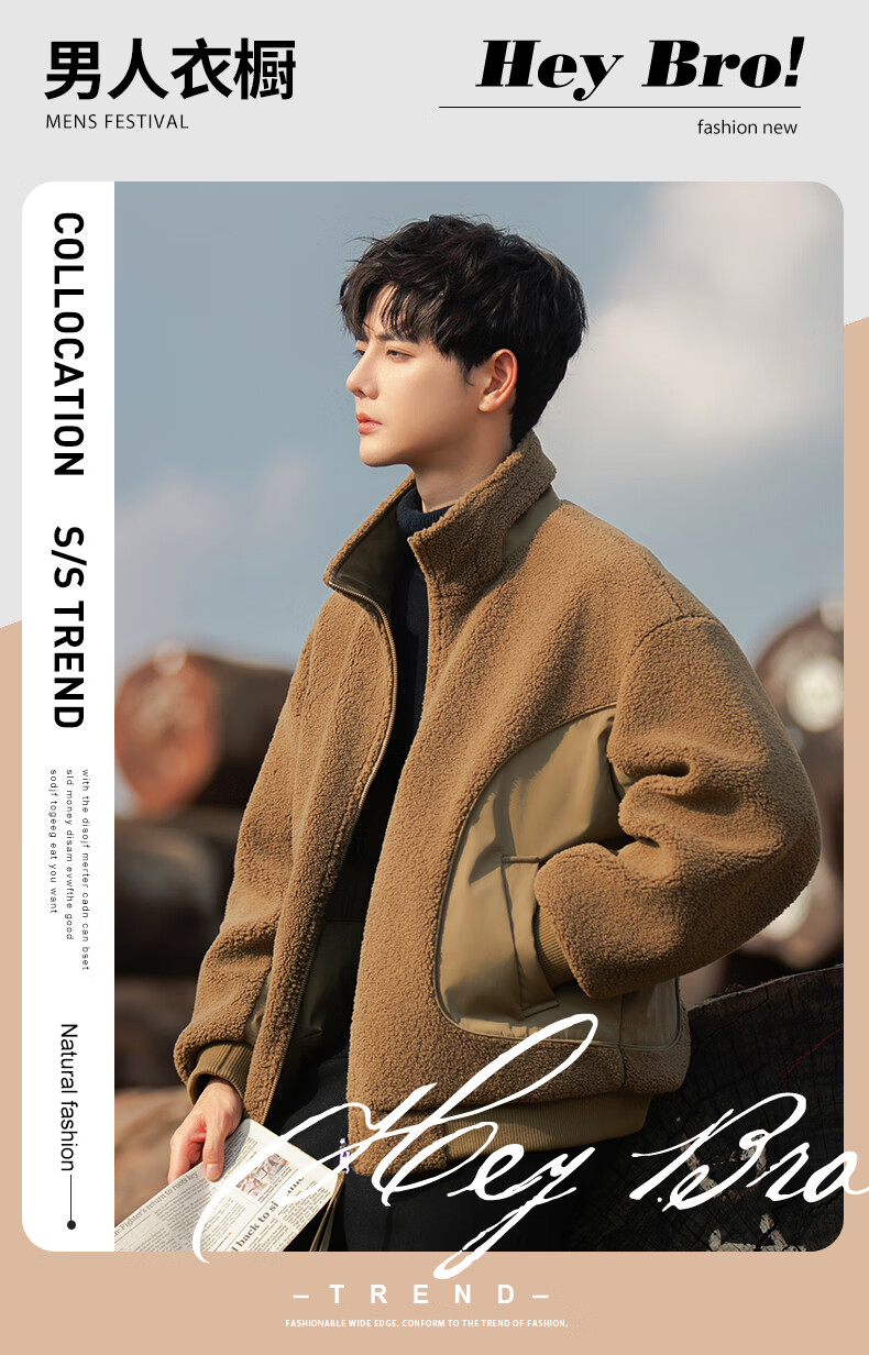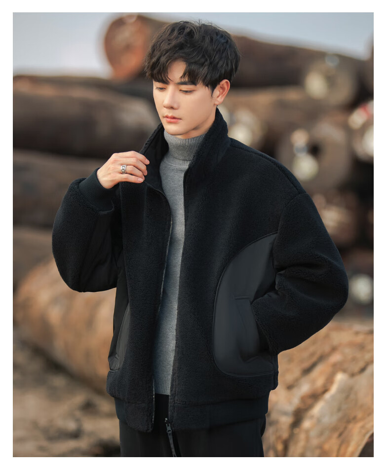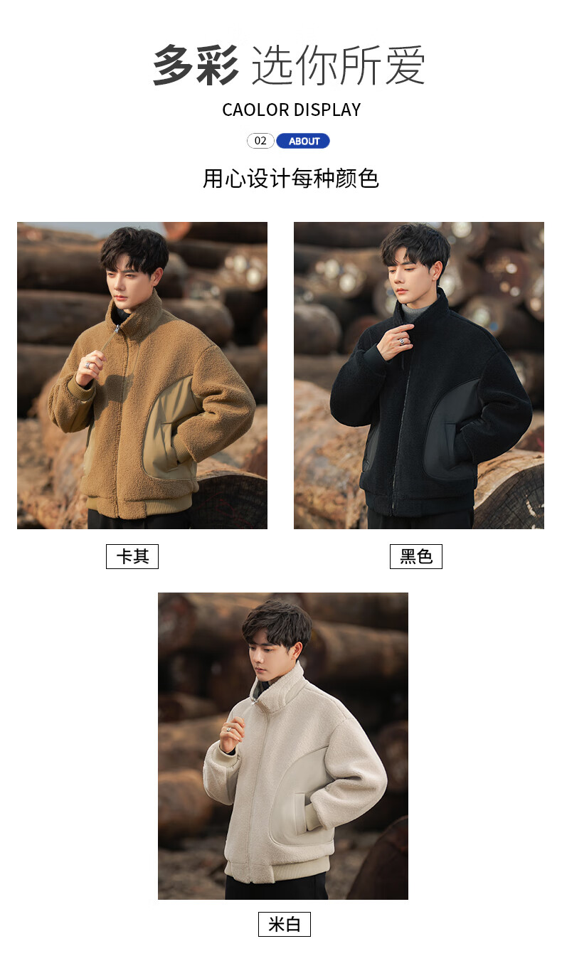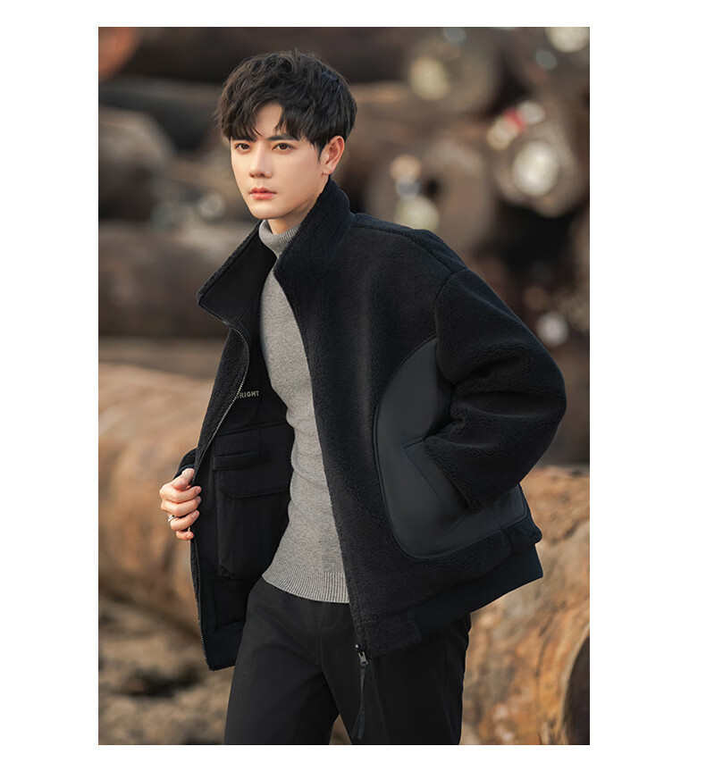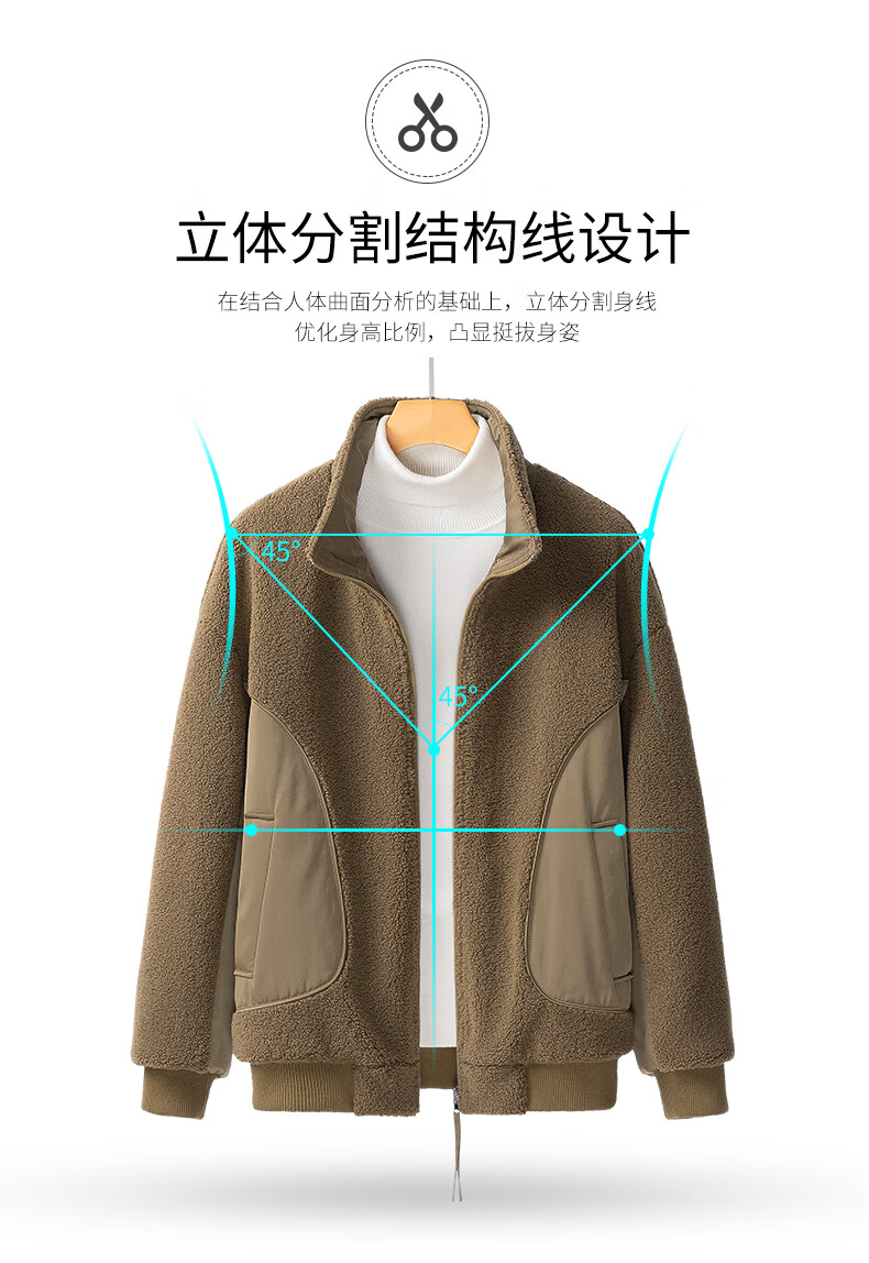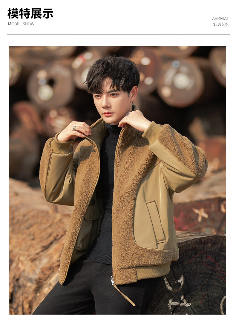ROMON reversible sherpa jacket men's autumn and winter new jacket men's polar fleece fur one-piece men's thickened khaki XL