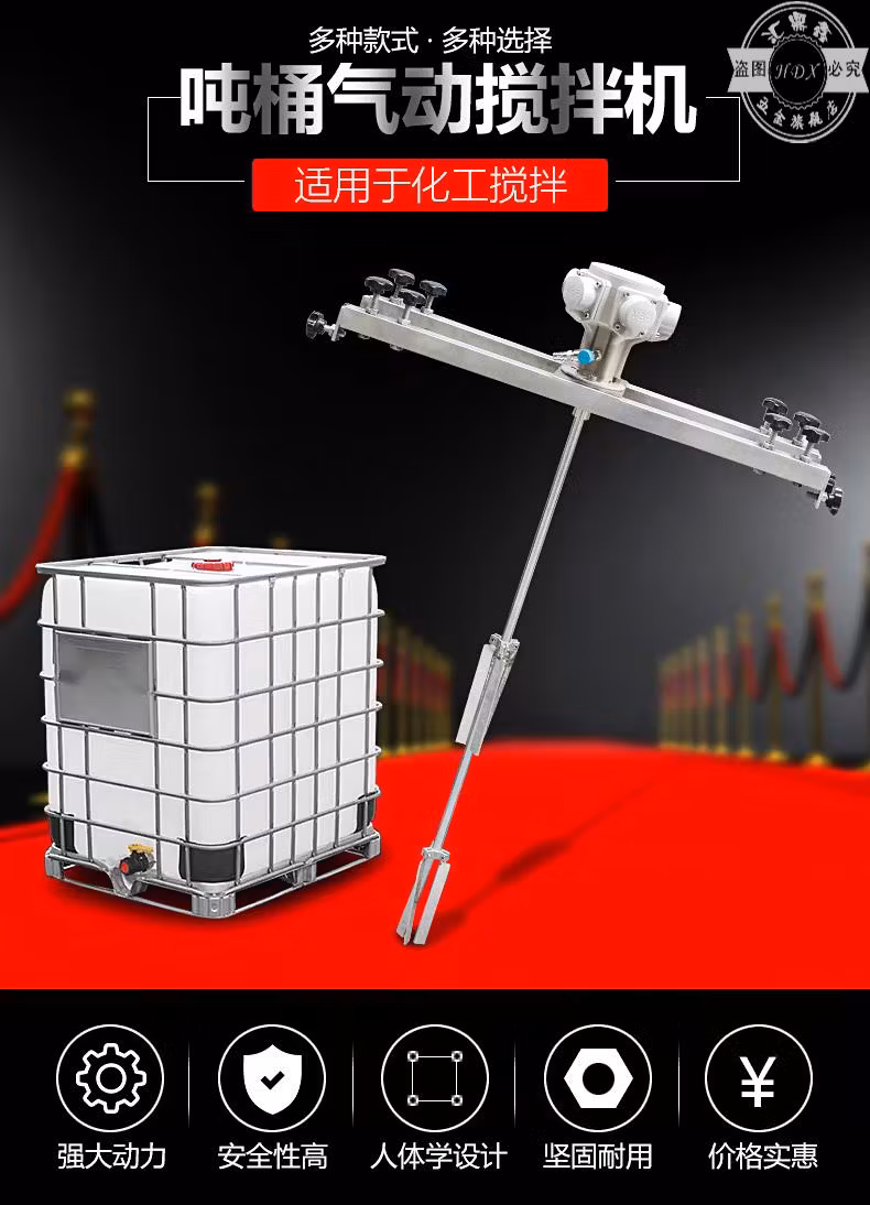 He Jiagong IBC ton bucket mixer 1000L pneumatic mixer bucket horizontal plate pneumatic mixer chemical raw material hand pneumatic H005 large five-cylinder motor for ton buckets