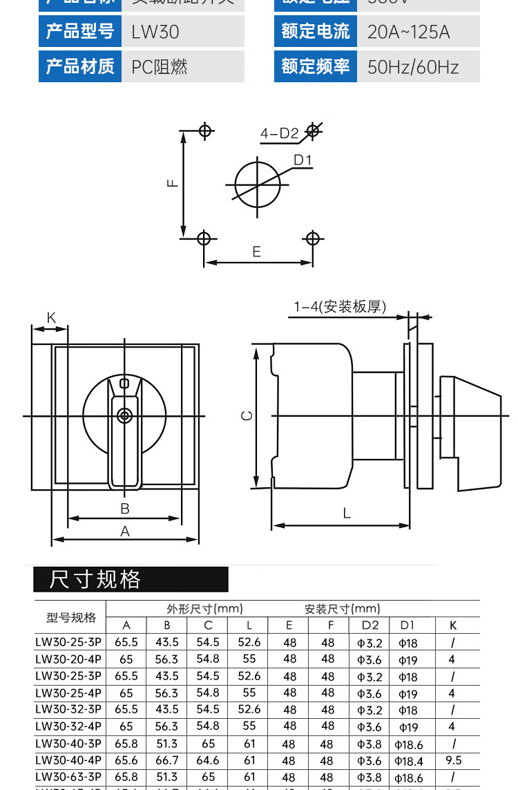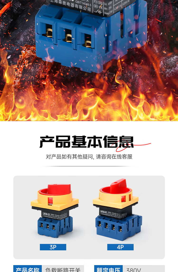 Load break switch LW30-25A three-phase load power cut off rotary SFD11-32 transfer switch 3P_25A_red handle