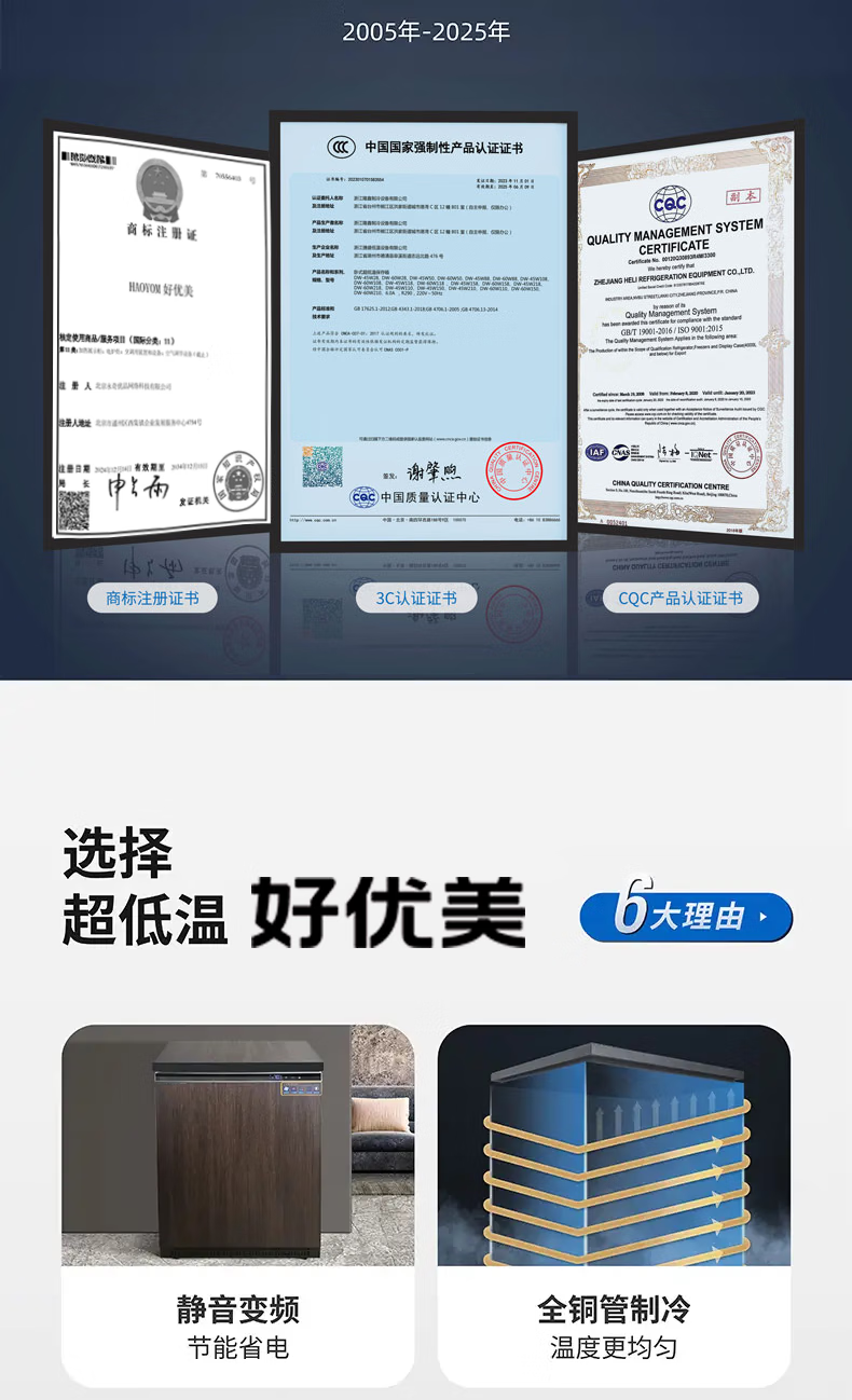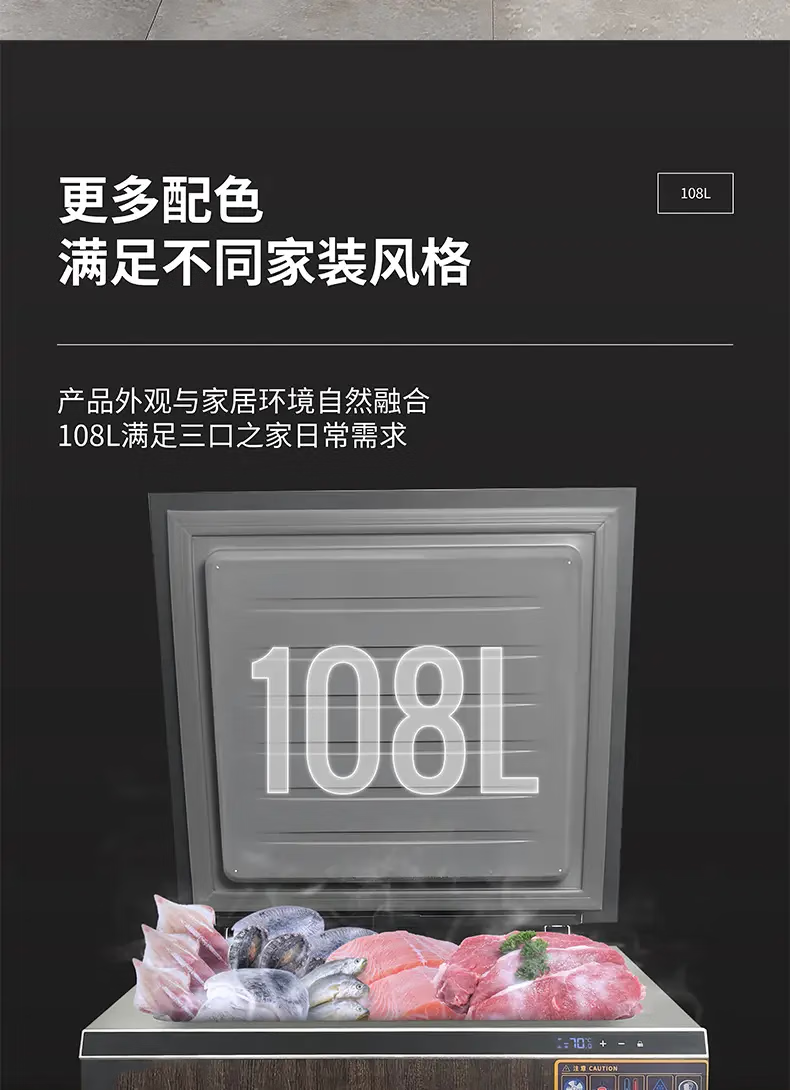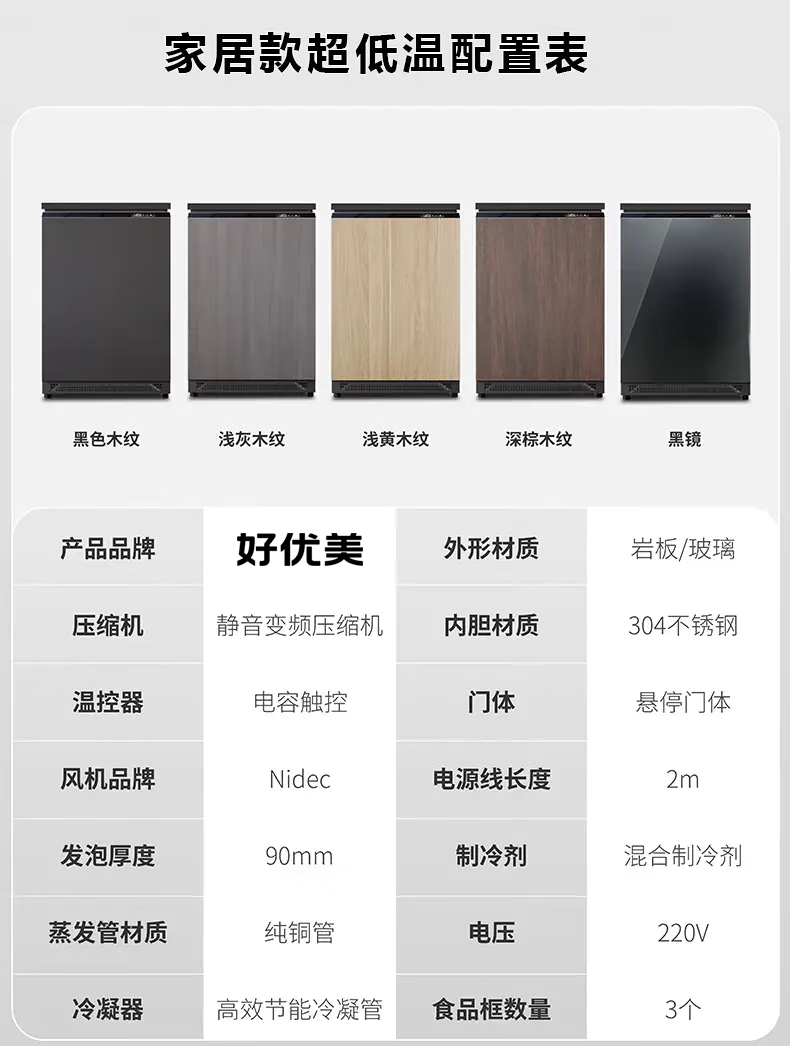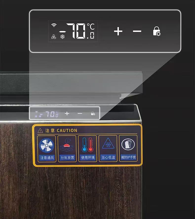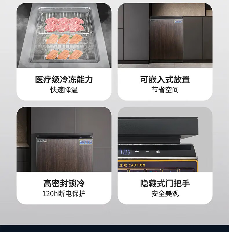Haoyouyou ultra-low temperature freezer - 60 minus 65 minus 70 degrees household freezer silent frequency conversion seafood salmon deep freezing quick freezing can be embedded in the refrigerator black wood grain -70 /108 liters / silent frequency conversion