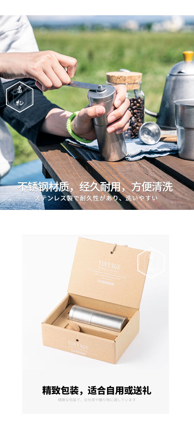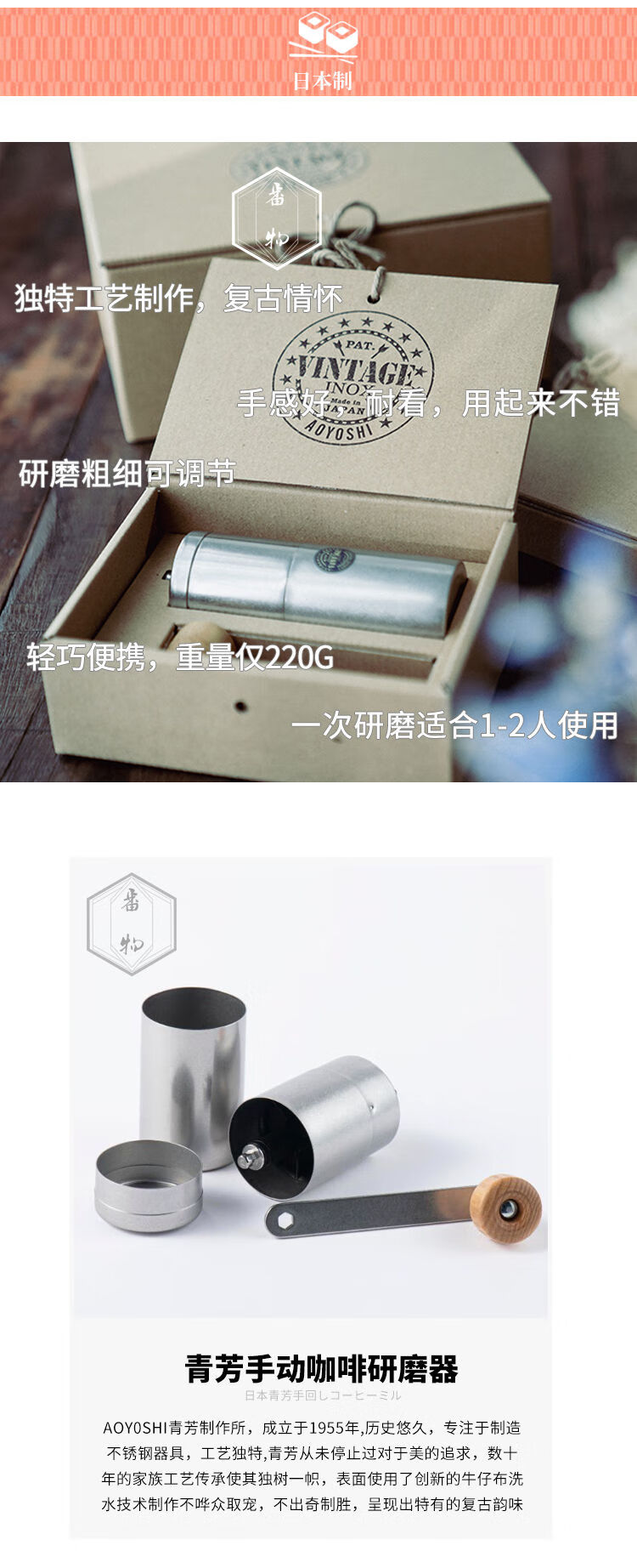 Japan imported Qingfang Manufacturing stainless steel retro manual coffee bean grinder hand-cranked bean grinder