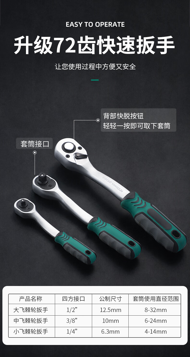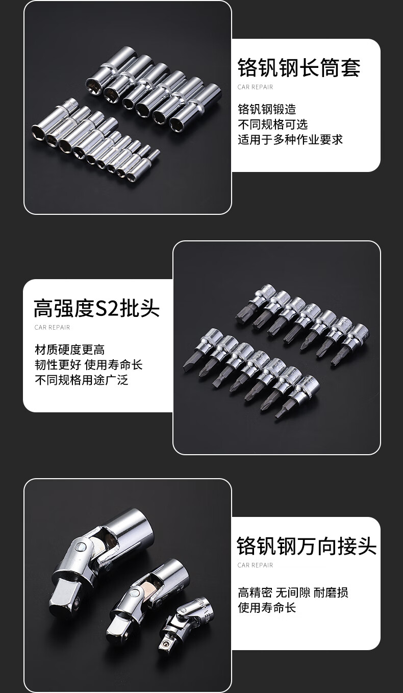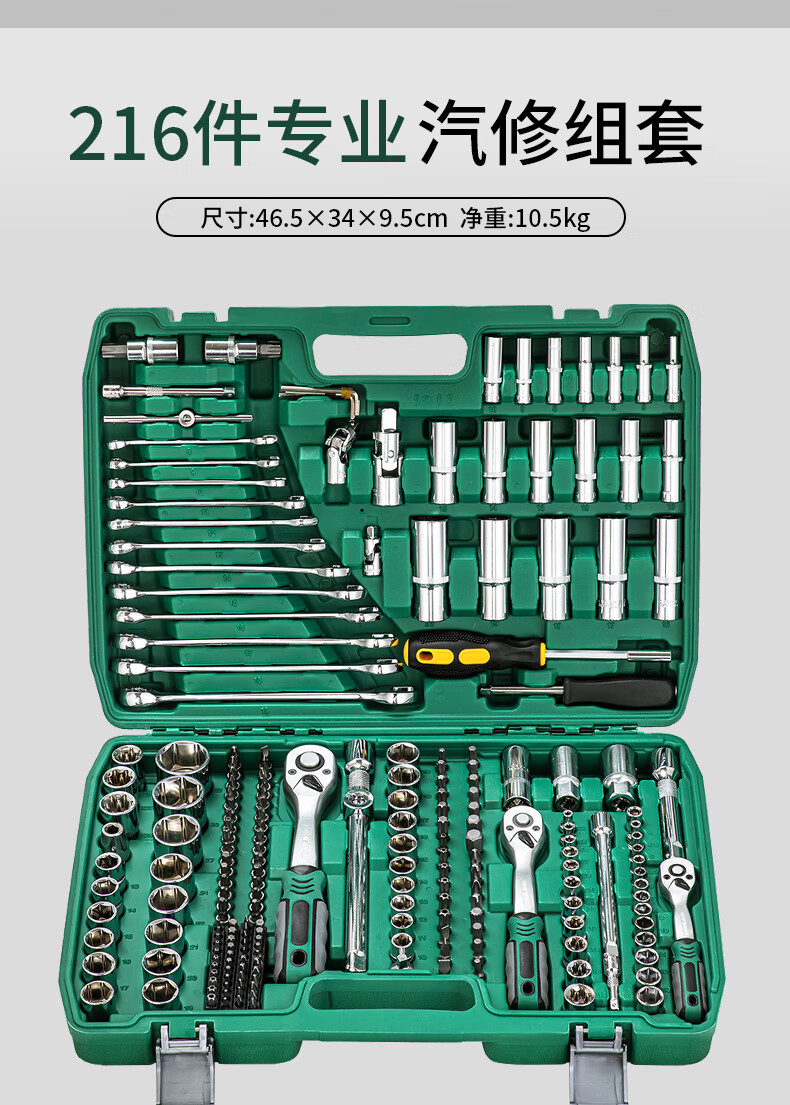 Shida Auto Repair Tool Set Socket Ratchet Wrench Car Repair Multifunctional Toolbox Combination Car Repair Set 4S Flagship 216-piece Set 72-Tooth Tool Set