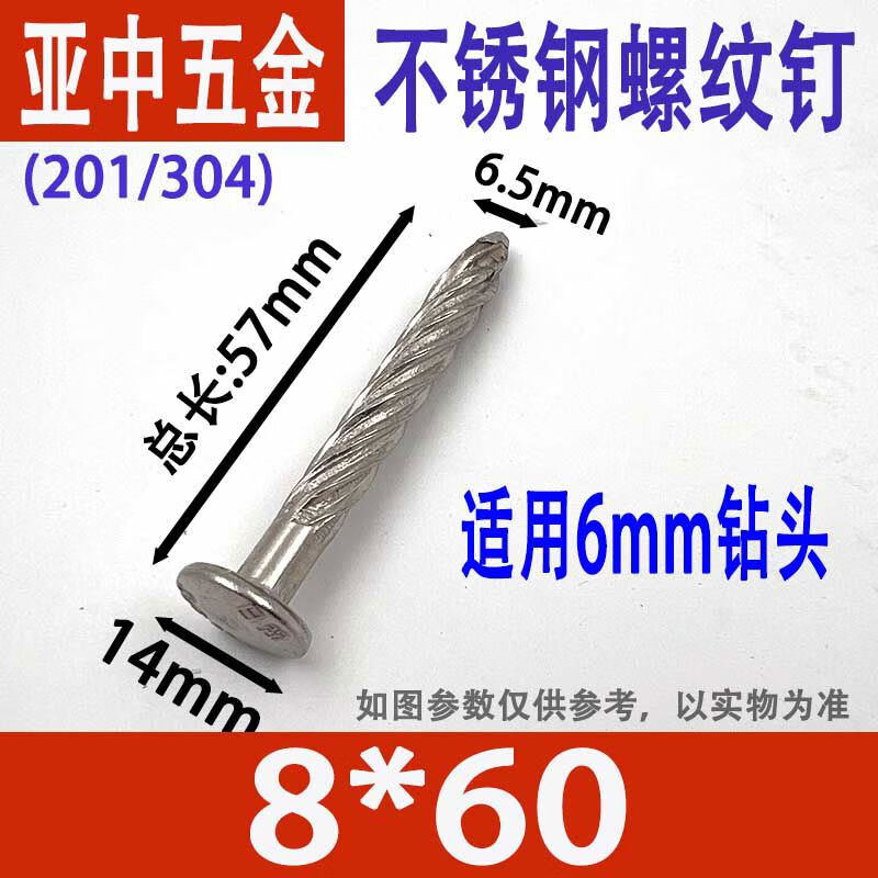 Jieyimao 304 stainless steel threaded nails 201 cement twist nails steel nails thickened anti-theft net fixed nails pressure explosion threaded nails M8 304 stainless steel 870 100 square diamonds