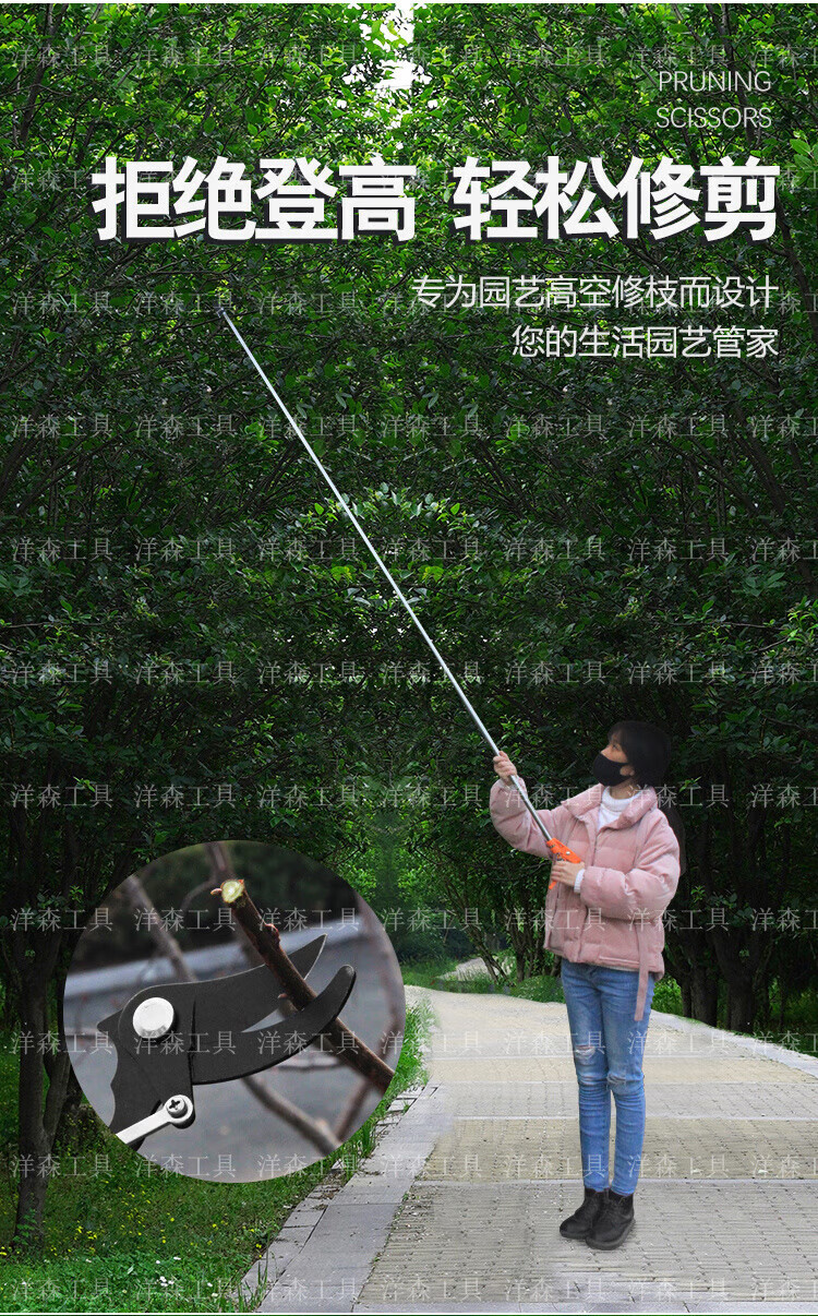 Jinge feather locust flower shears, high branch shears, pruning shears, stainless steel pruning, garden thinning flowers and thin fruit pruning, locust rice extension pole, high-altitude shears, pruning saw, 2.3 meters extension, 4 meters + saw blade gift