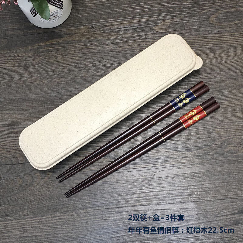 NAOISKEY set of high-looking boxed chopsticks and tableware, portable office worker wheat box, couple's chopsticks for two people traveling, two pairs of candied haws red and blue + wheat box