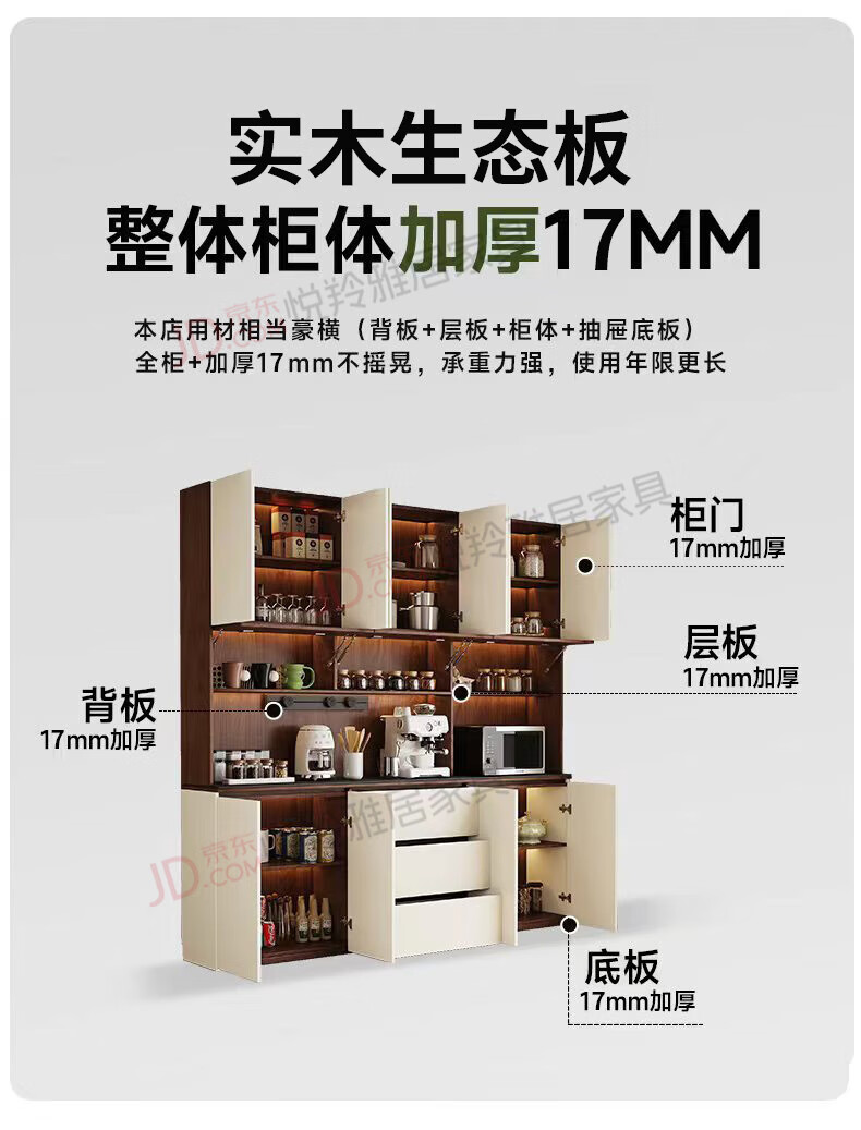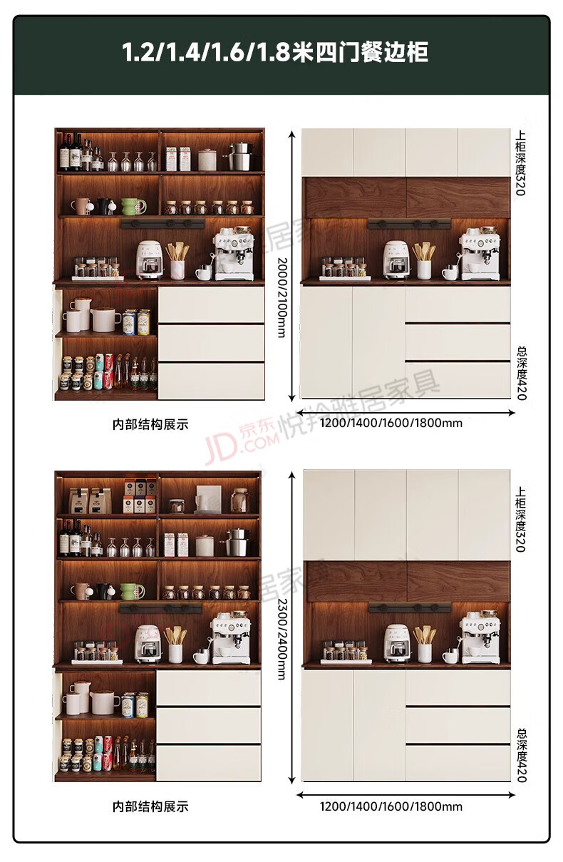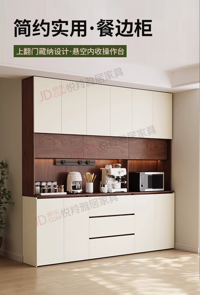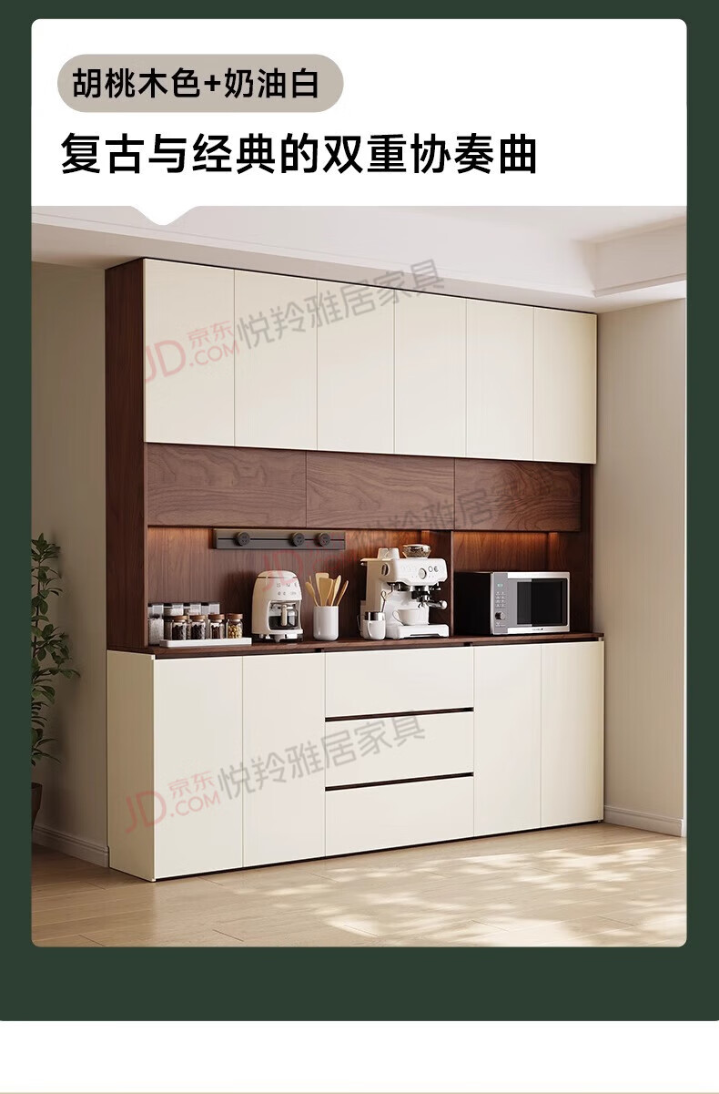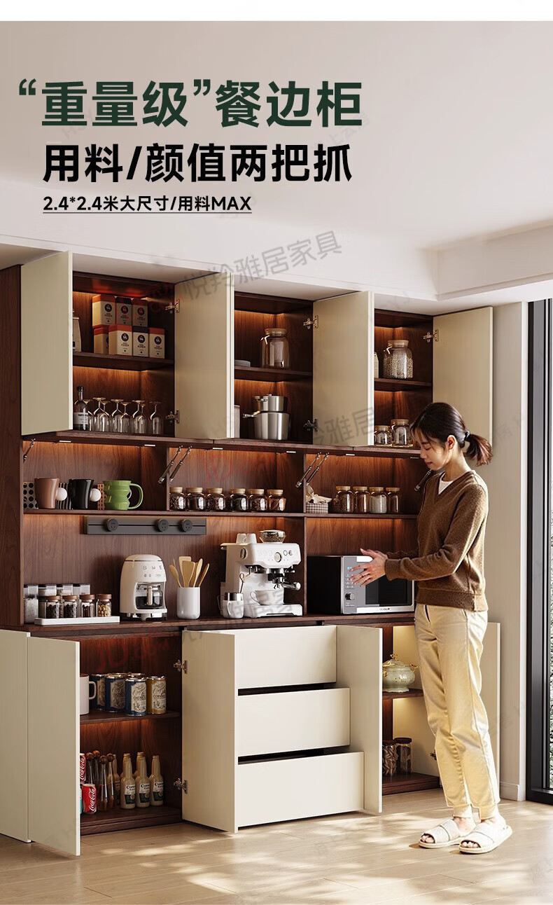 Yueling Yaju solid wood sideboard against the wall integrated storage cabinet living room multi-functional wine cabinet storage cabinet tea cabinet can be customized 1.8*2.0 meters high four-door sideboard -ENF level.