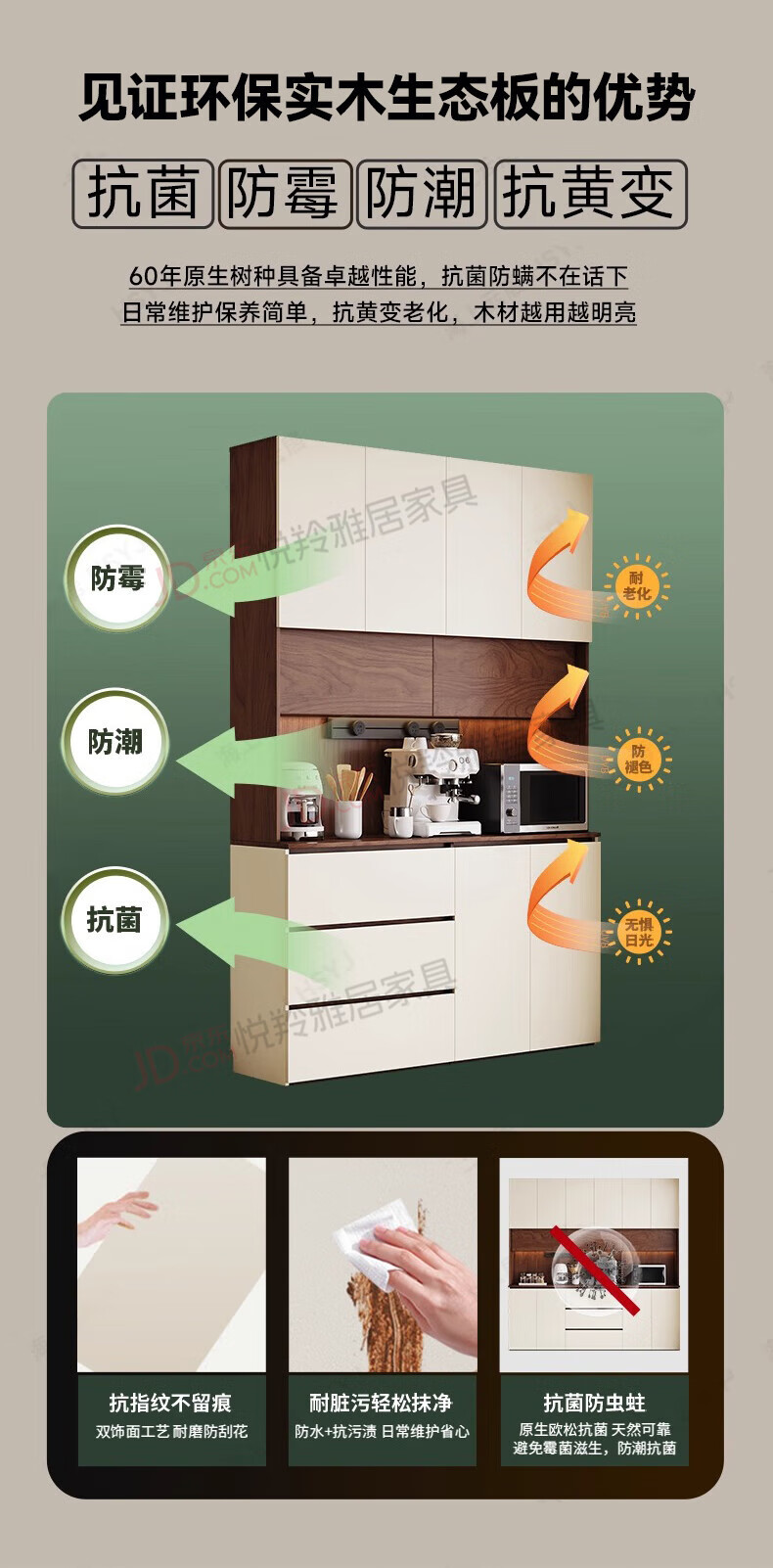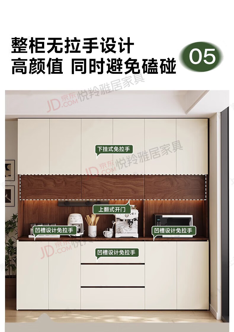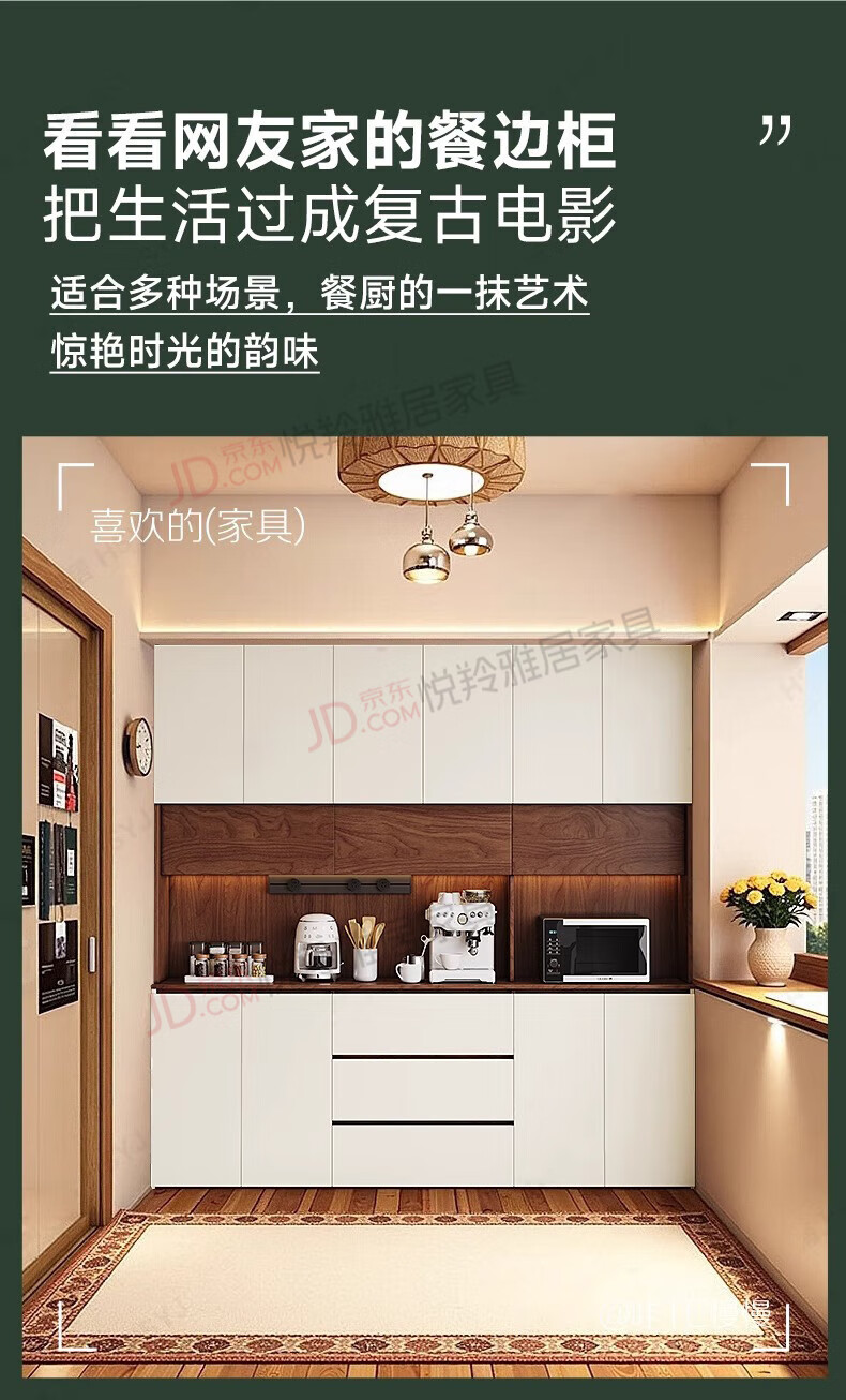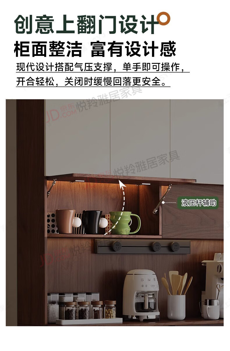 Yueling Yaju solid wood sideboard against the wall integrated storage cabinet living room multi-functional wine cabinet storage cabinet tea cabinet can be customized 1.8*2.0 meters high four-door sideboard -ENF level.