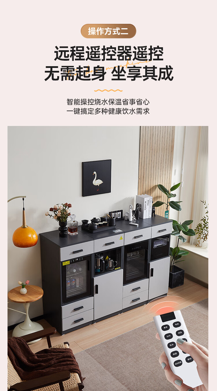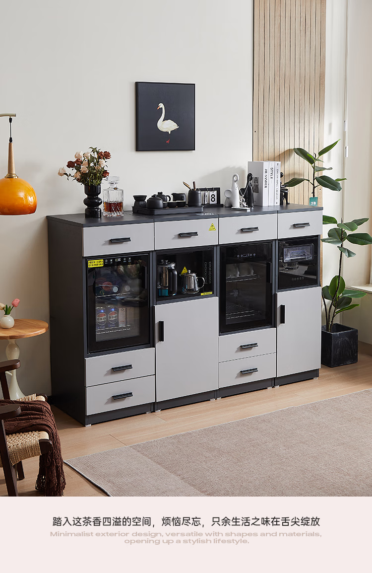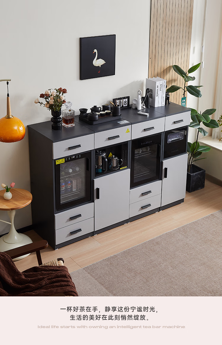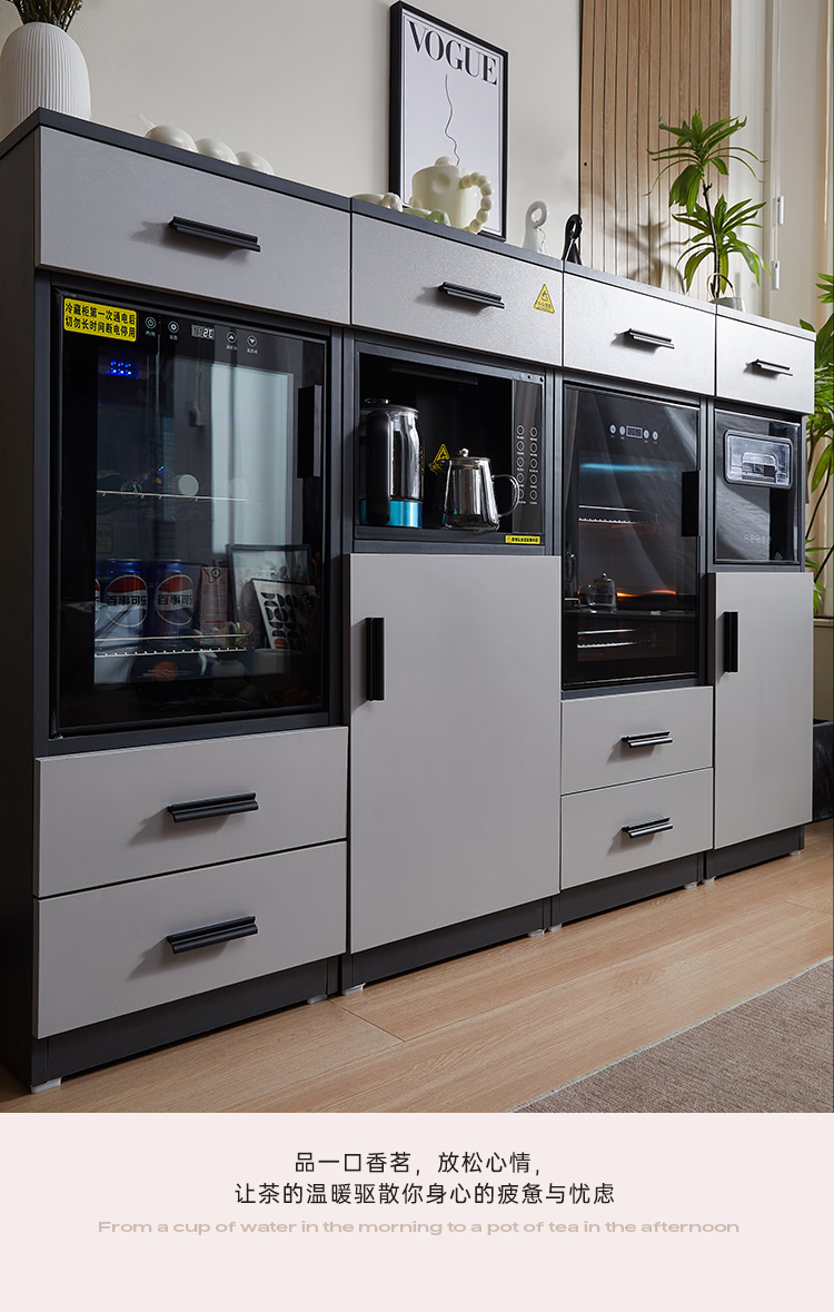 Zetian office tea bar machine with refrigerator refrigeration and fresh-keeping combination cabinet 2025 new home living room tea cabinet sideboard red walnut color cooling and heating type four-door combination-with refrigerator upgrade