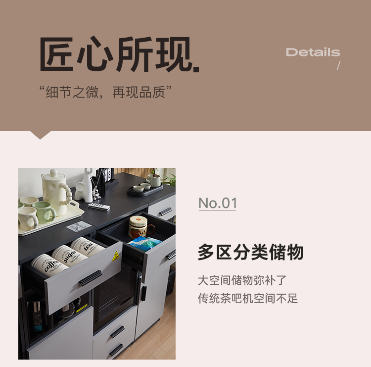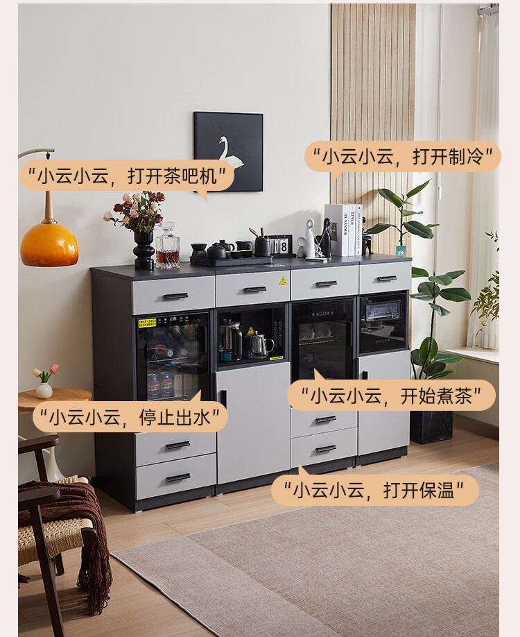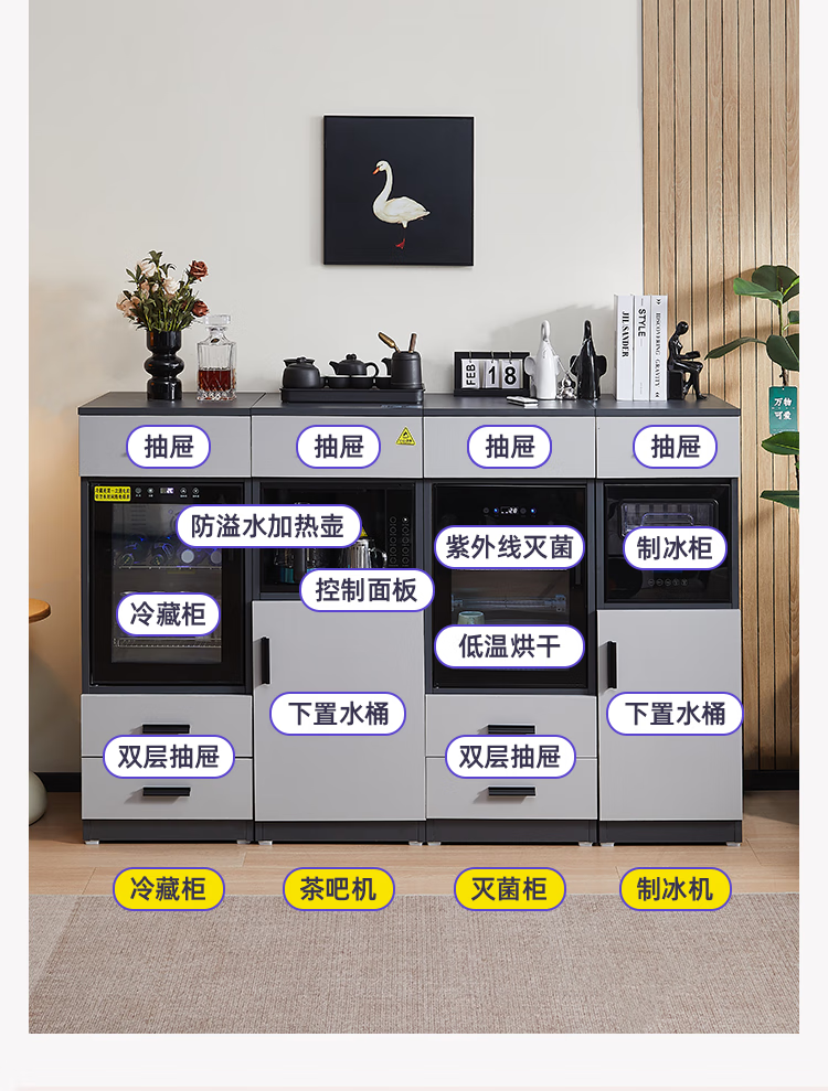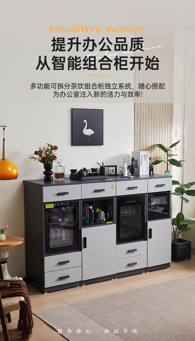 Zetian office tea bar machine with refrigerator refrigeration and fresh-keeping combination cabinet 2025 new home living room tea cabinet sideboard red walnut color cooling and heating type four-door combination-with refrigerator upgrade