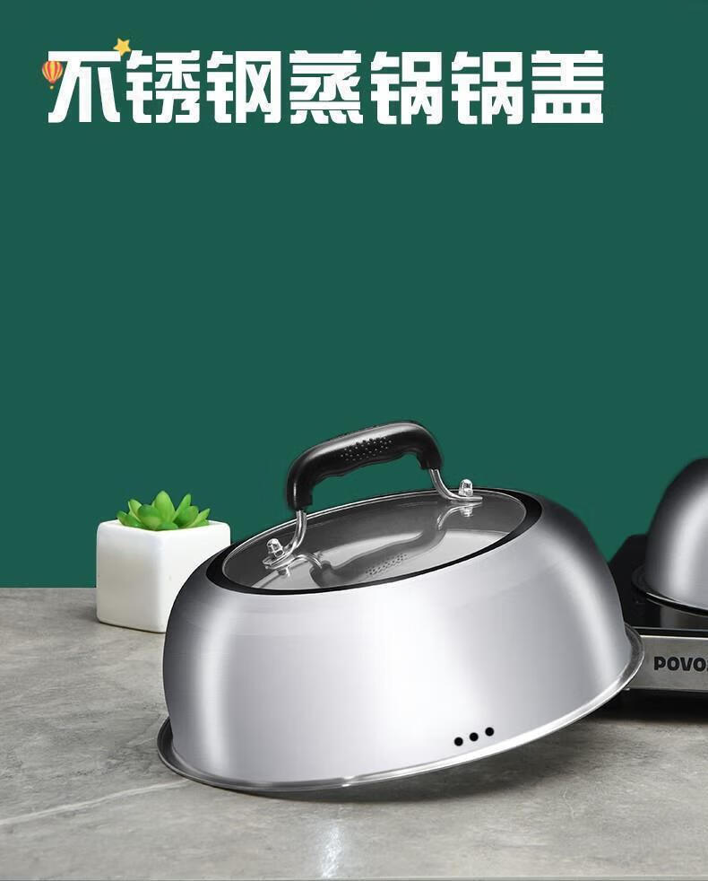FANCYCHIC stainless steel pot lid 304 household steamer lid high lid thickened wok lid increased arched stir-frying tripod lid 25.2cm steamer pot lid