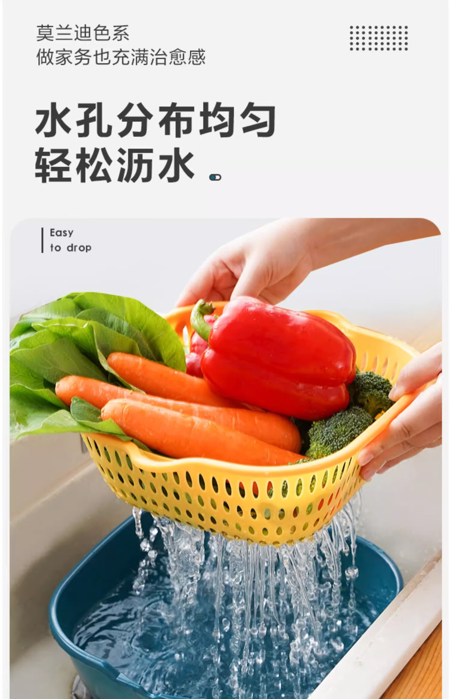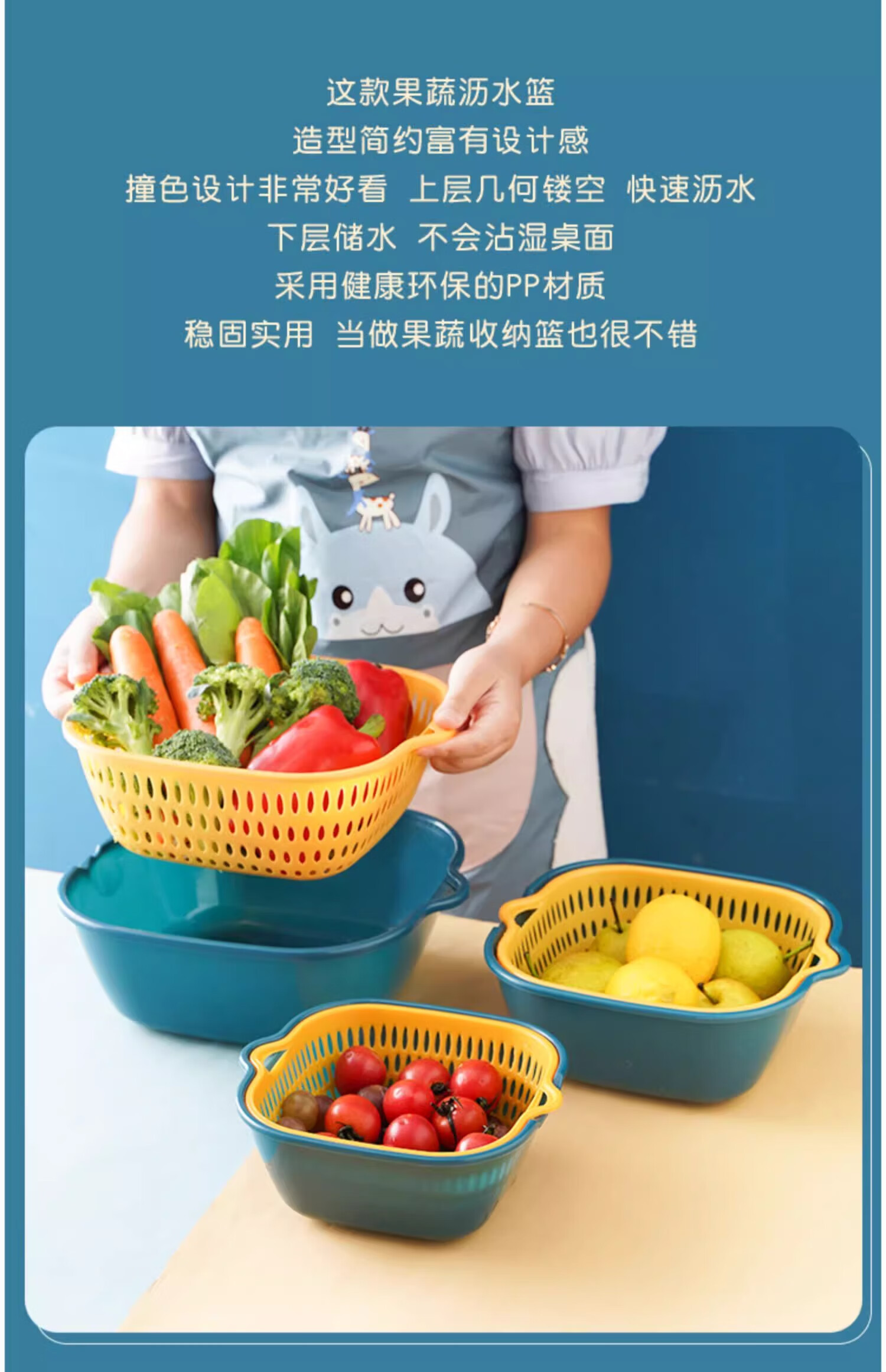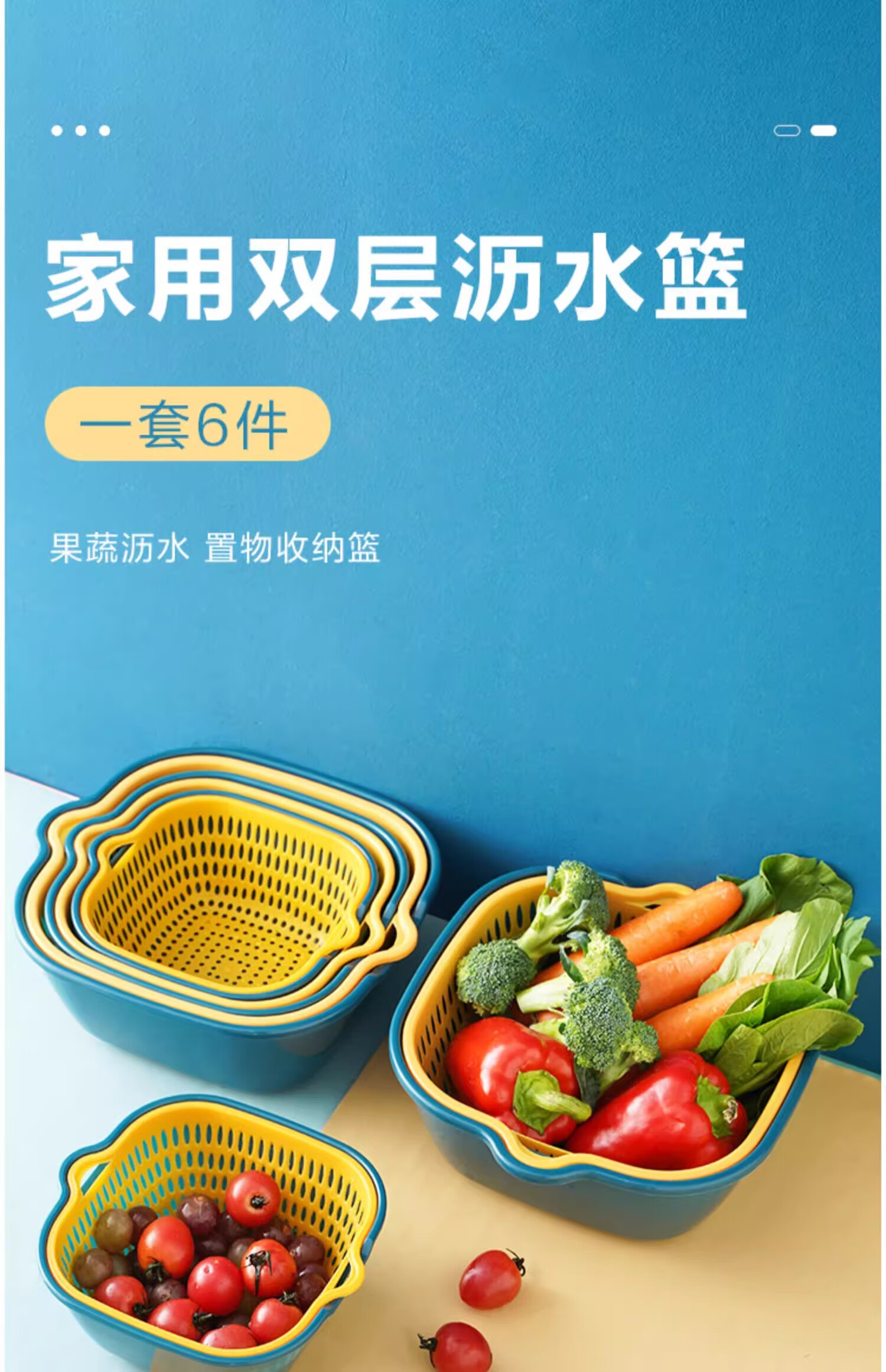 Xincong vegetable sink kitchen drain basket washing vegetable basin vegetable basket multi-functional fruit plate vegetable basket thickened water filter basket 6-piece set extra large + large + medium yellow and blue combination - event exclusive