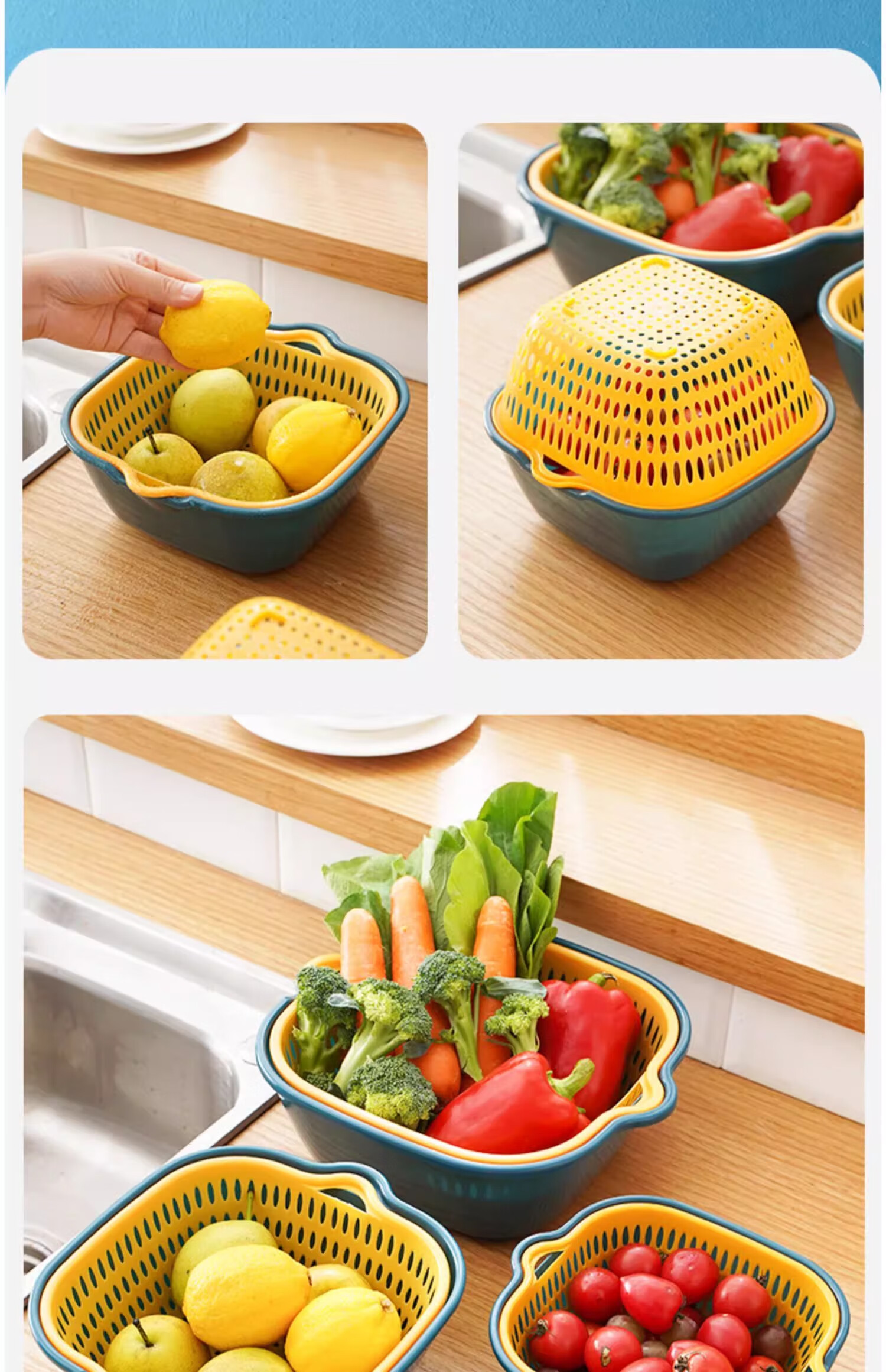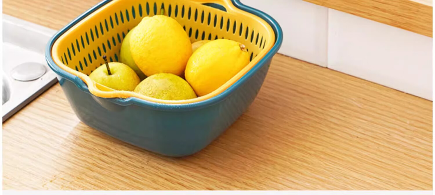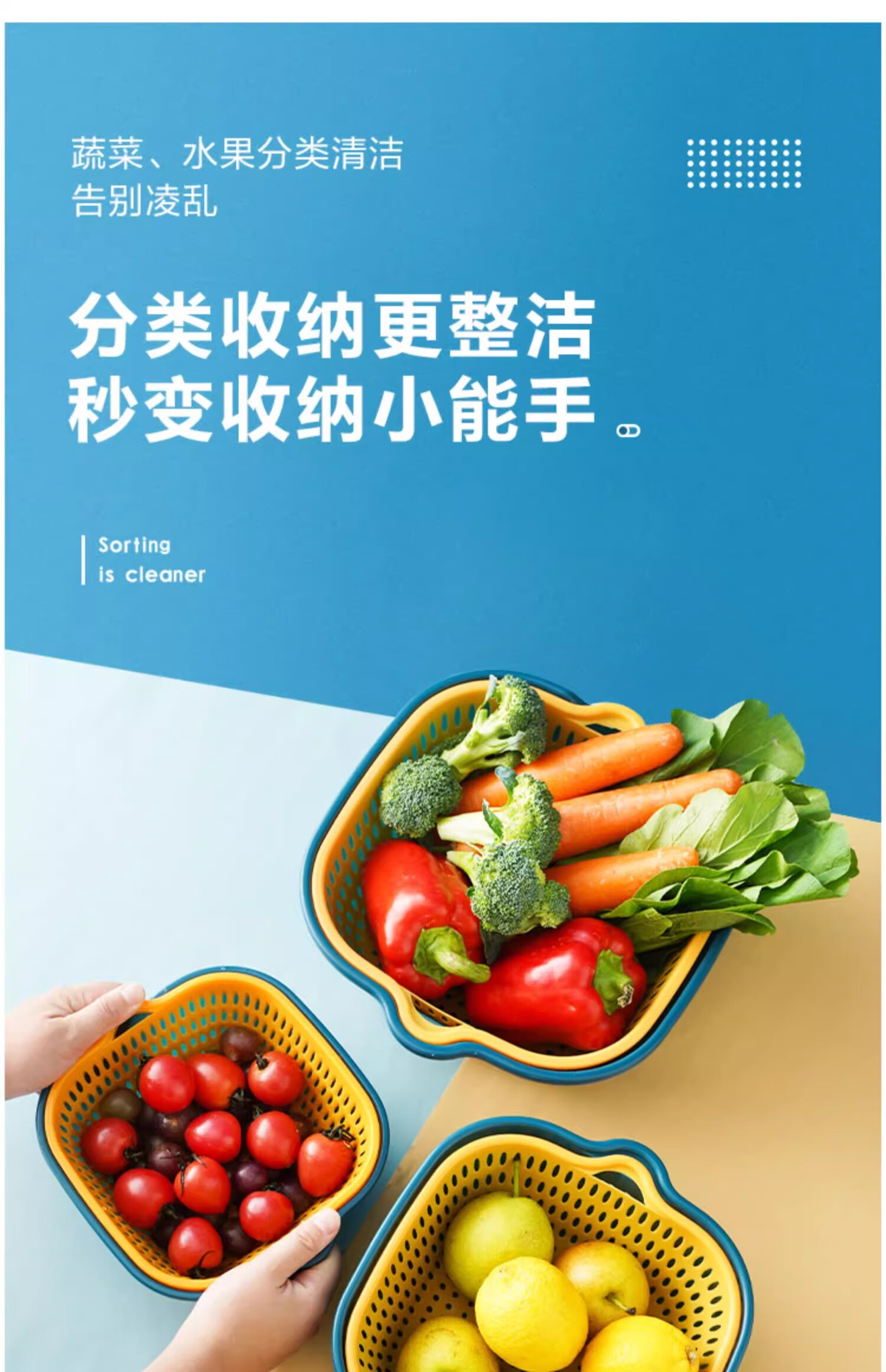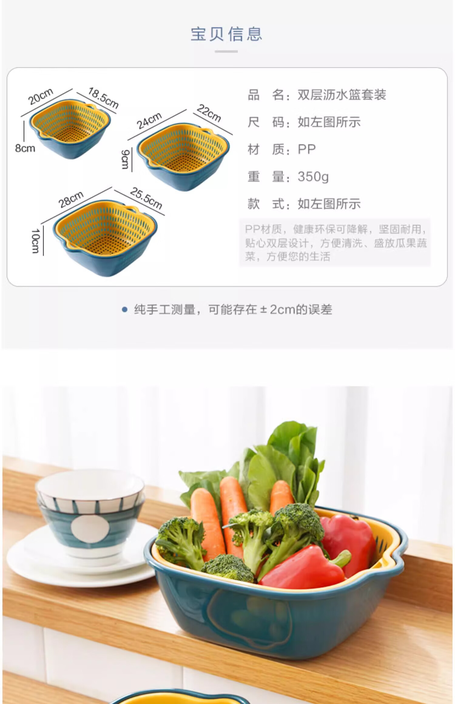 Xincong vegetable sink kitchen drain basket washing vegetable basin vegetable basket multi-functional fruit plate vegetable basket thickened water filter basket 6-piece set extra large + large + medium yellow and blue combination - event exclusive