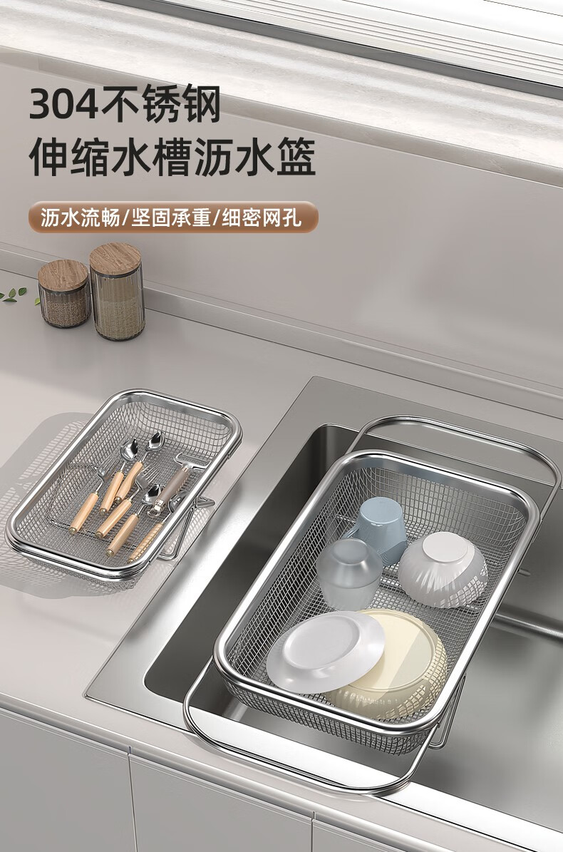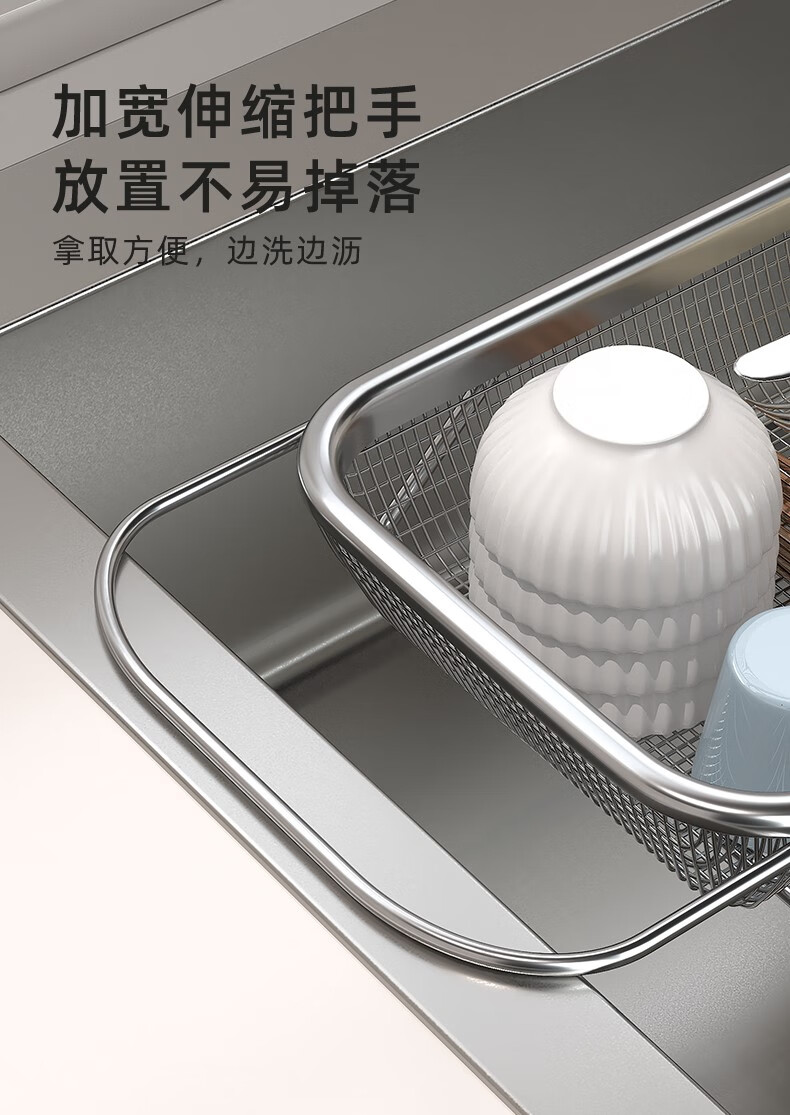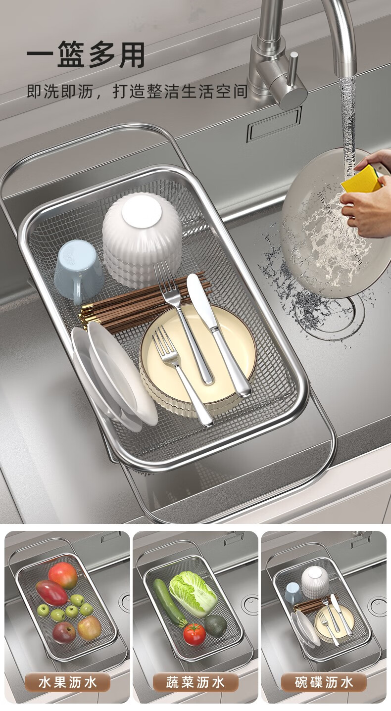 Weiliang Germany imported high-quality telescopic drain basket drain rack kitchen sink vegetable basin wash basin bowl bowl drain rack small 304 stainless steel telescopic drain basket