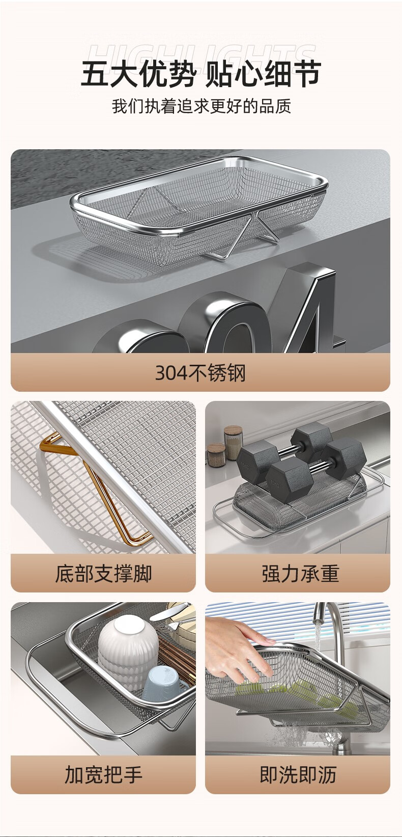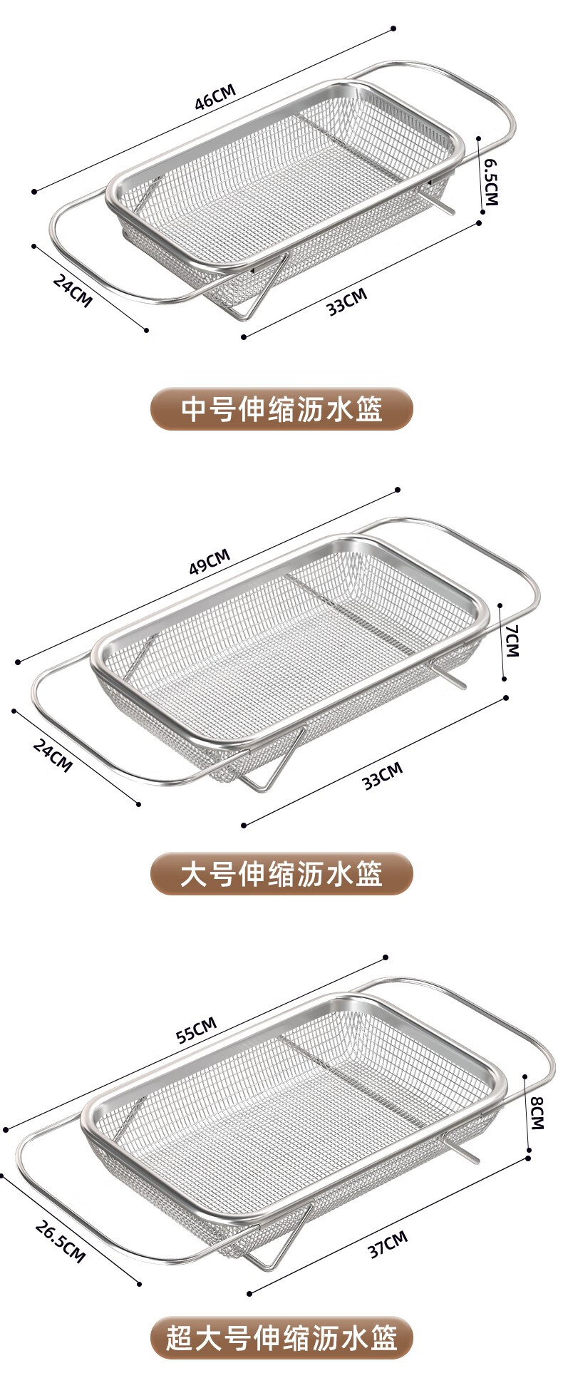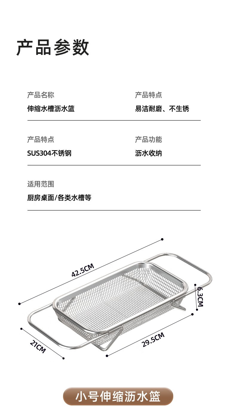 Weiliang Germany imported high-quality telescopic drain basket drain rack kitchen sink vegetable basin wash basin bowl bowl drain rack small 304 stainless steel telescopic drain basket