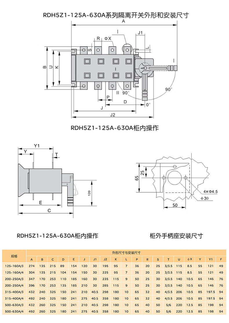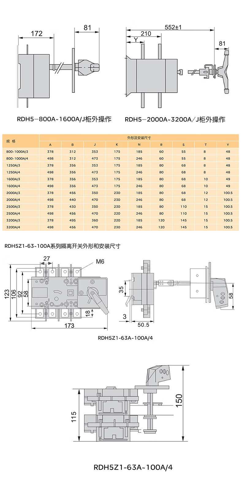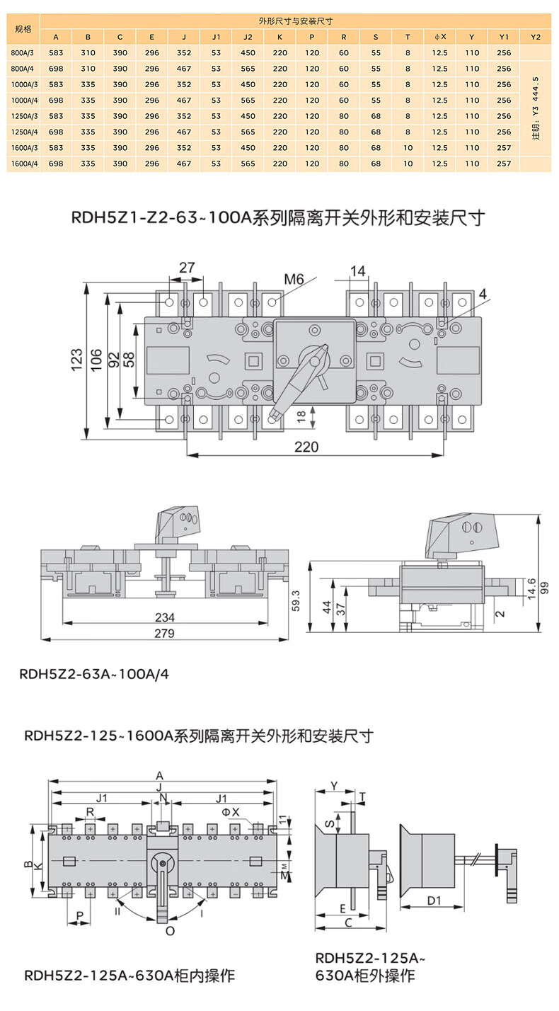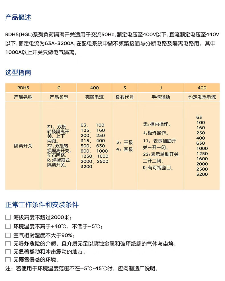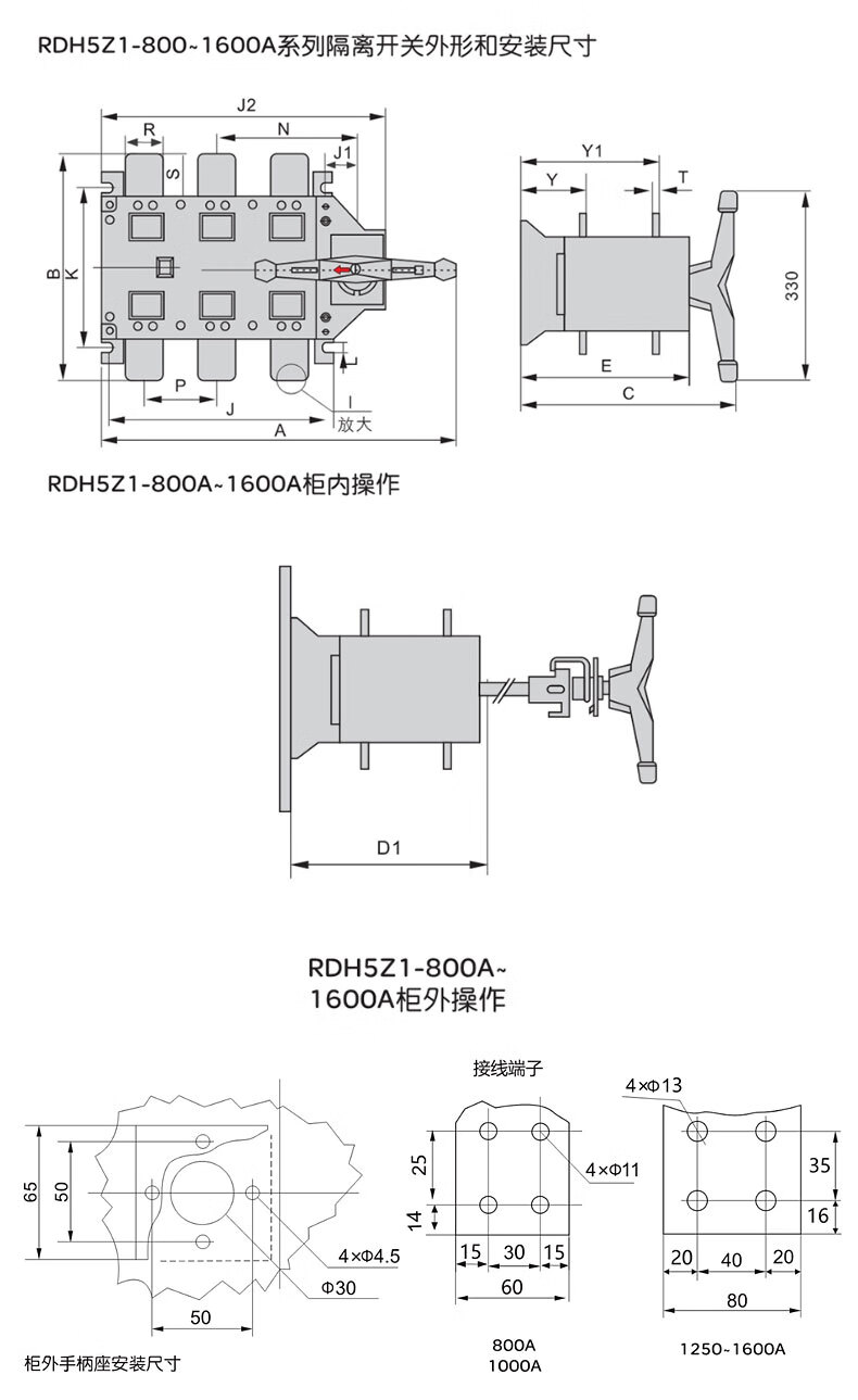 People's Electric RDH5 series load isolation switch HGL100A250A400A630A manual switching knife 800A 3P cabinet operation