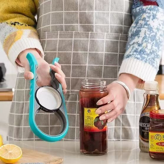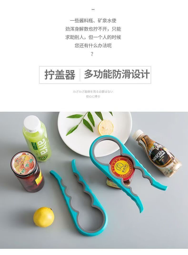 Cap opener, four-in-one bottle opener, multi-functional anti-slip bottle cap opener, kitchen can opener, manual opener, simple artifact, orange 1 piece