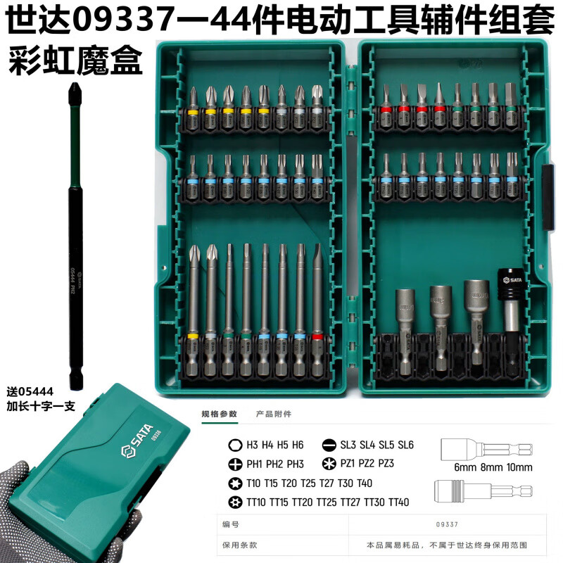 Shida Tools 09337 - 44-piece power tool accessories set 09336 Rainbow Magic Box screwdriver bit set 0933744 bit set box extended cross