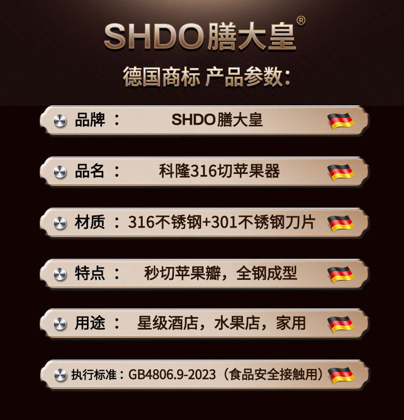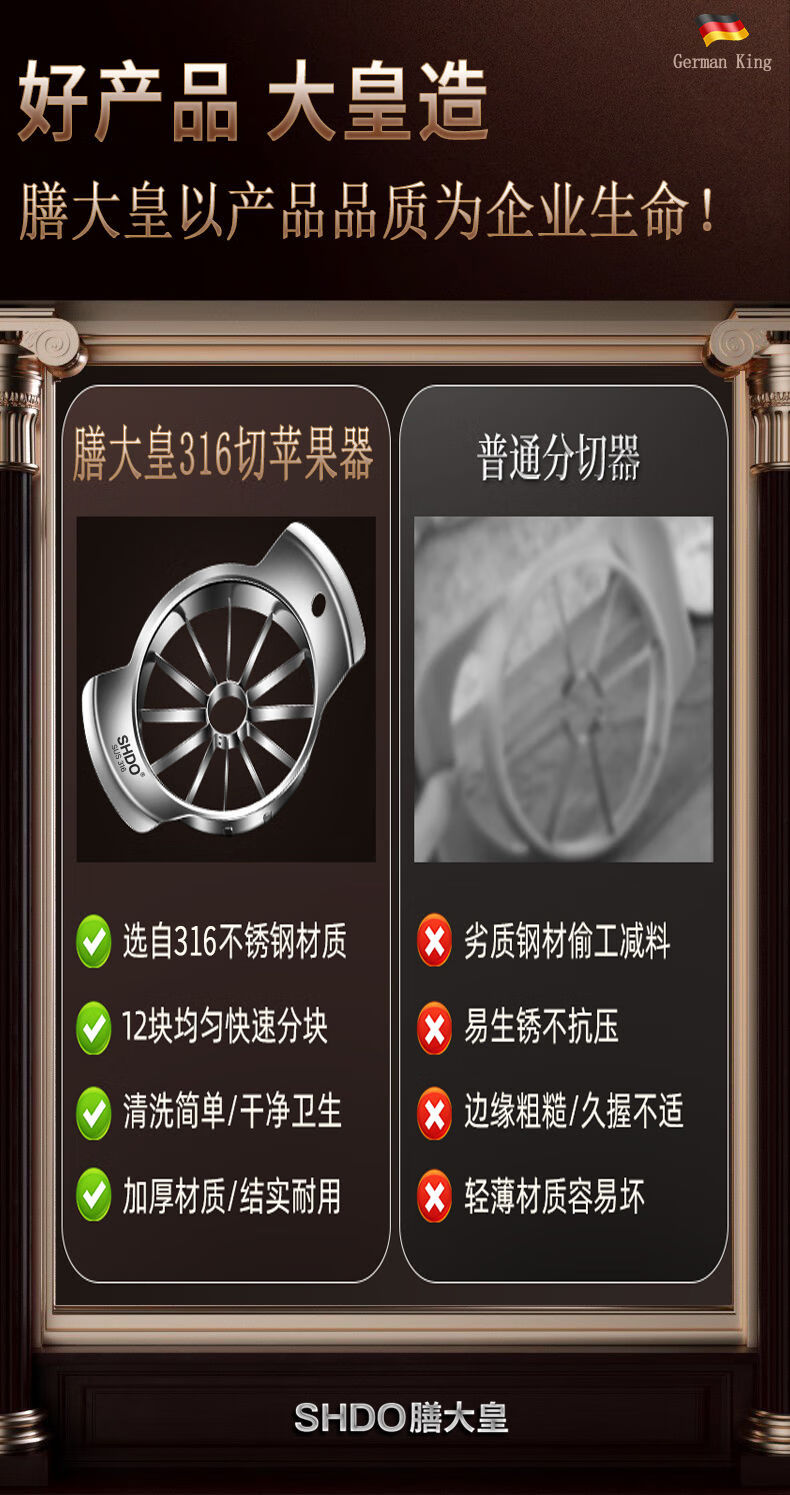 Shandahuang (SHDO) 316 stainless steel apple cutting artifact splitter apple splitter Sydney core removal artifact splitter Cologne 316 medium inner diameter 9.5cm/cut into 8 pieces