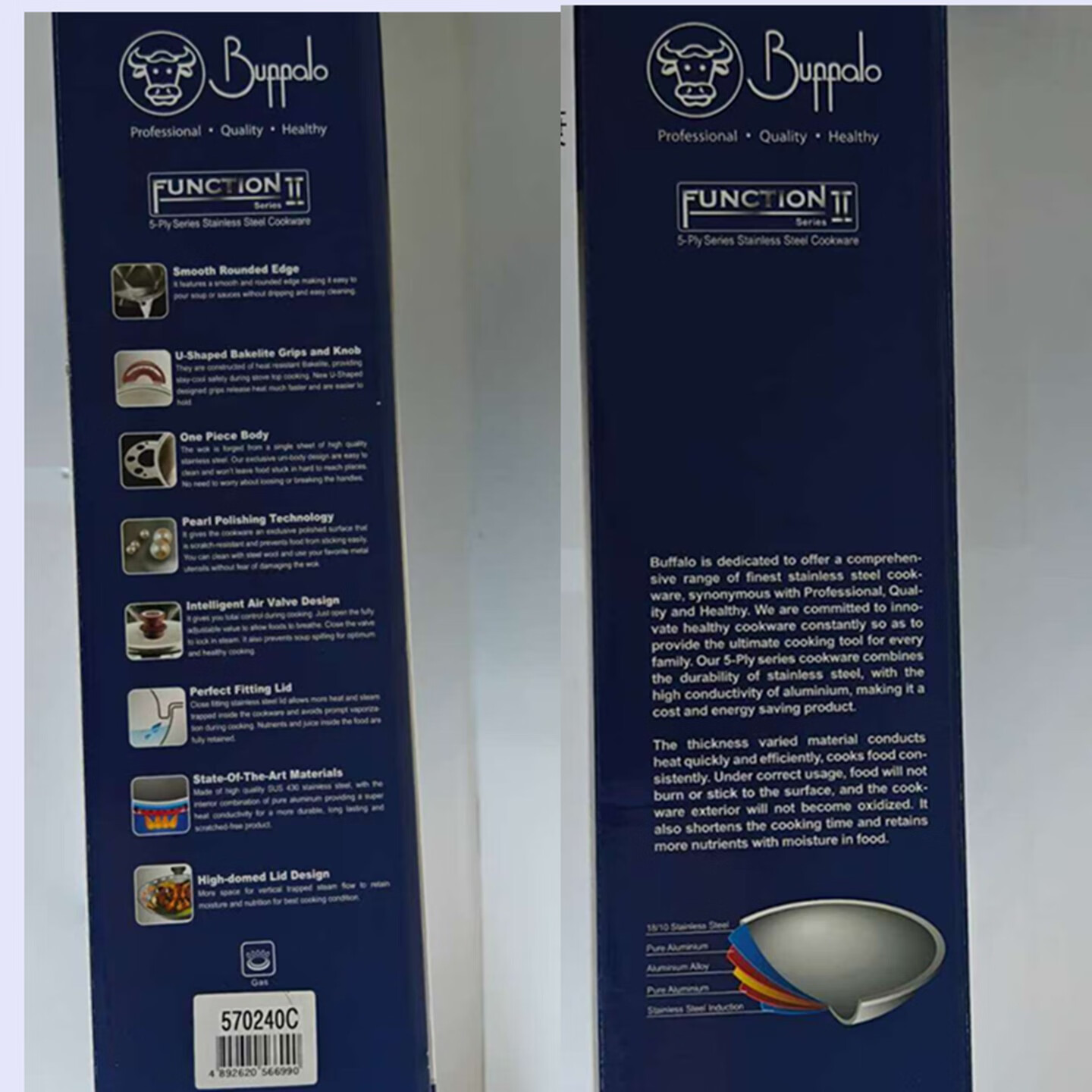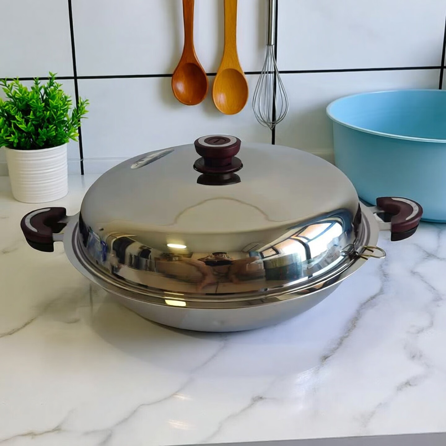 Niutou brand stainless steel wok 40cm round bottom with lid 5 layers 3mm 18/10 gas universal stove 40cm round bottom with lid