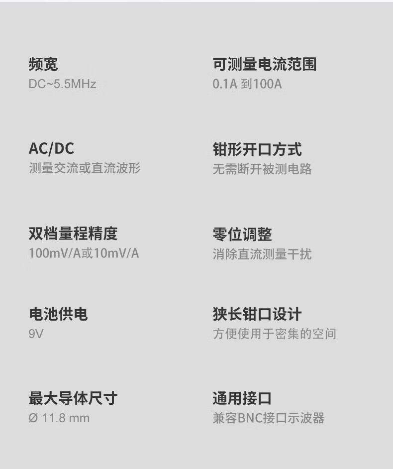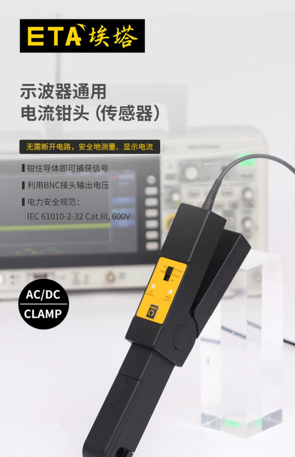 YWZR ETA ETA5301 oscilloscope current clamp high-precision 100A BNC interface AC and DC dual-use made in Jiangsu ETA56500A (5MHz+500A)