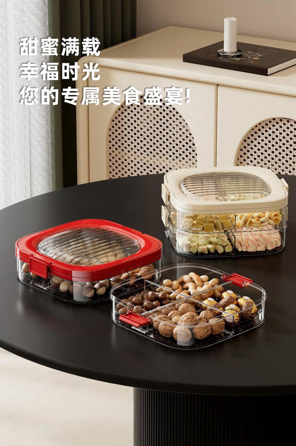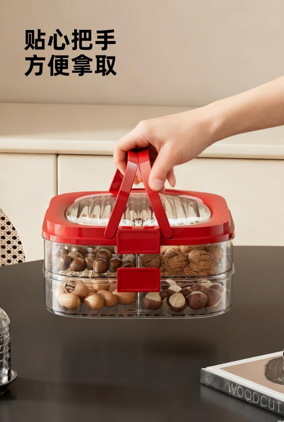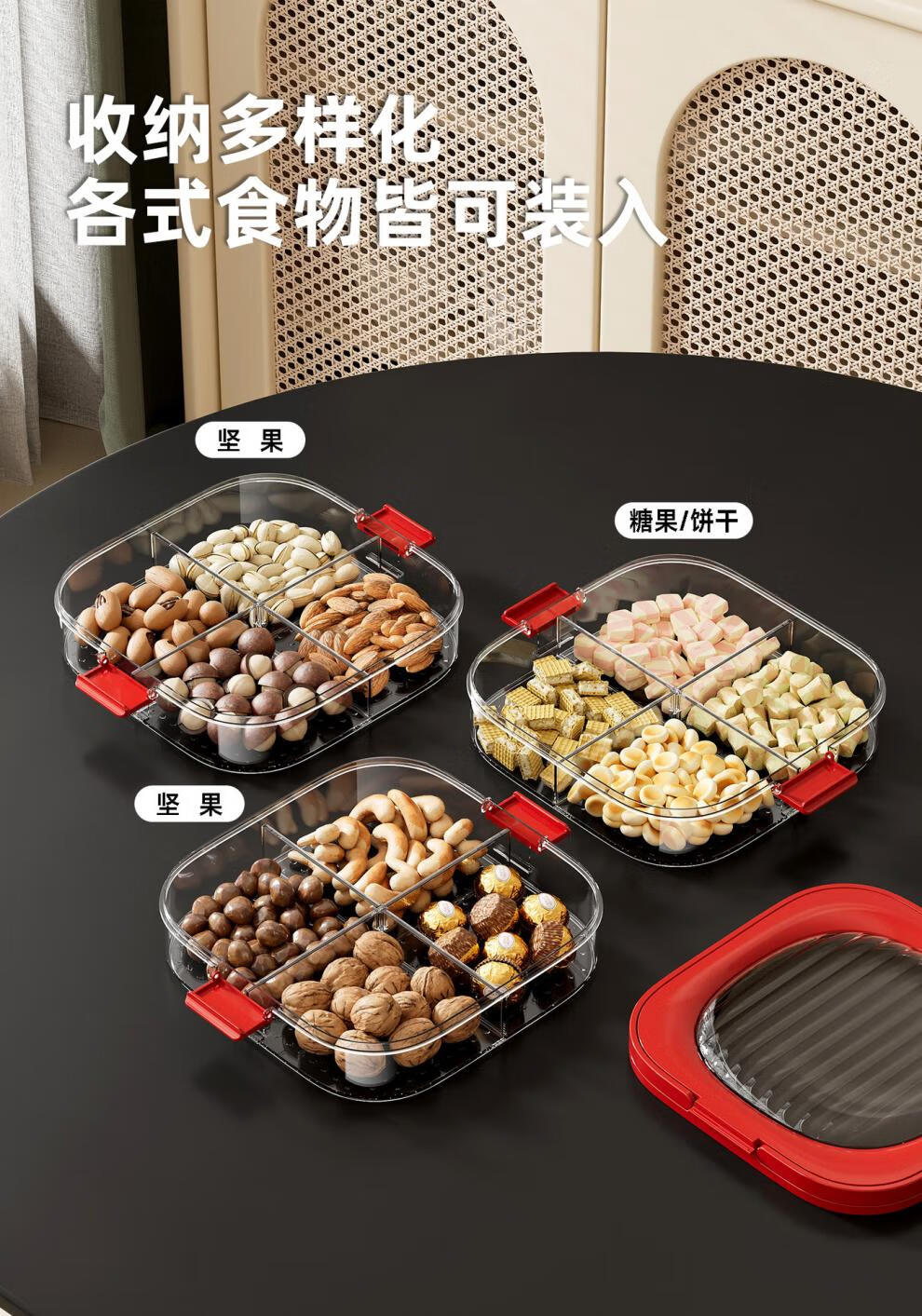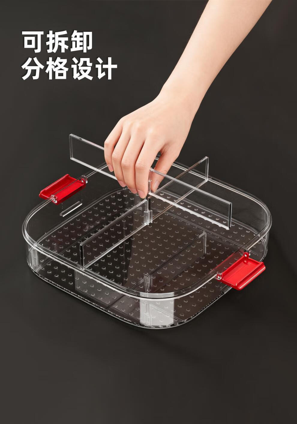 OEING Germany's new dumpling box refrigerated fruit plate high-end multi-layer compartmented sealed moisture-proof snack storage box with lid, one layer red, four compartments classification/sealed and moisture-proof with lid