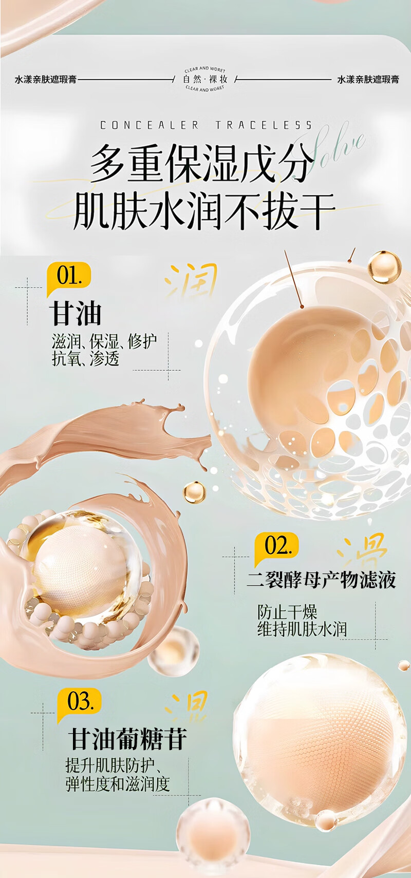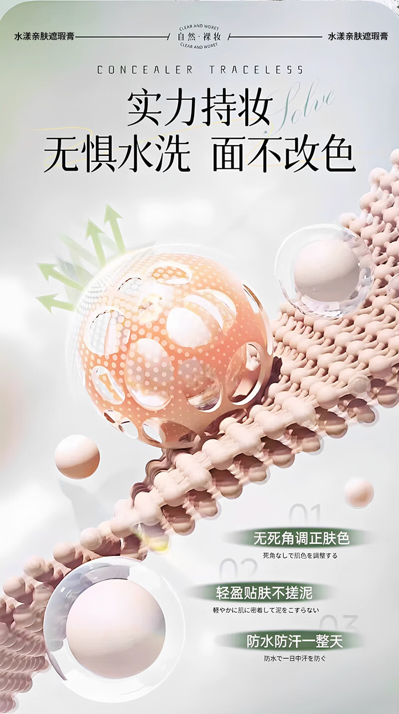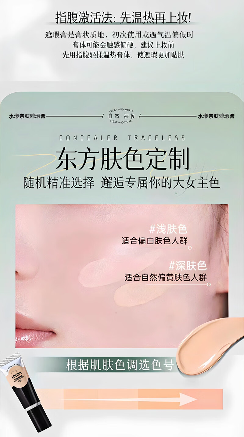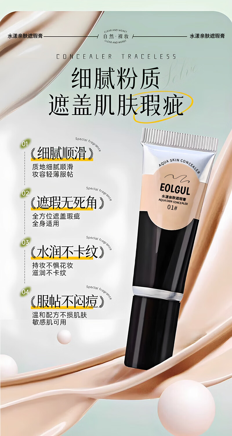 Concealer covers spots, dark circles, moisturizes tattoos, moisturizes and brightens, waterproof, makeup artist retouches, students, long-lasting EOLGUL Concealer 01