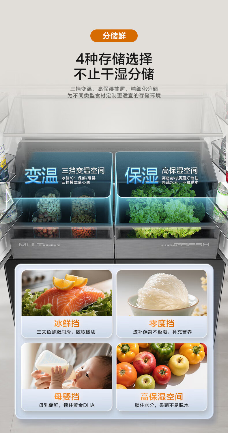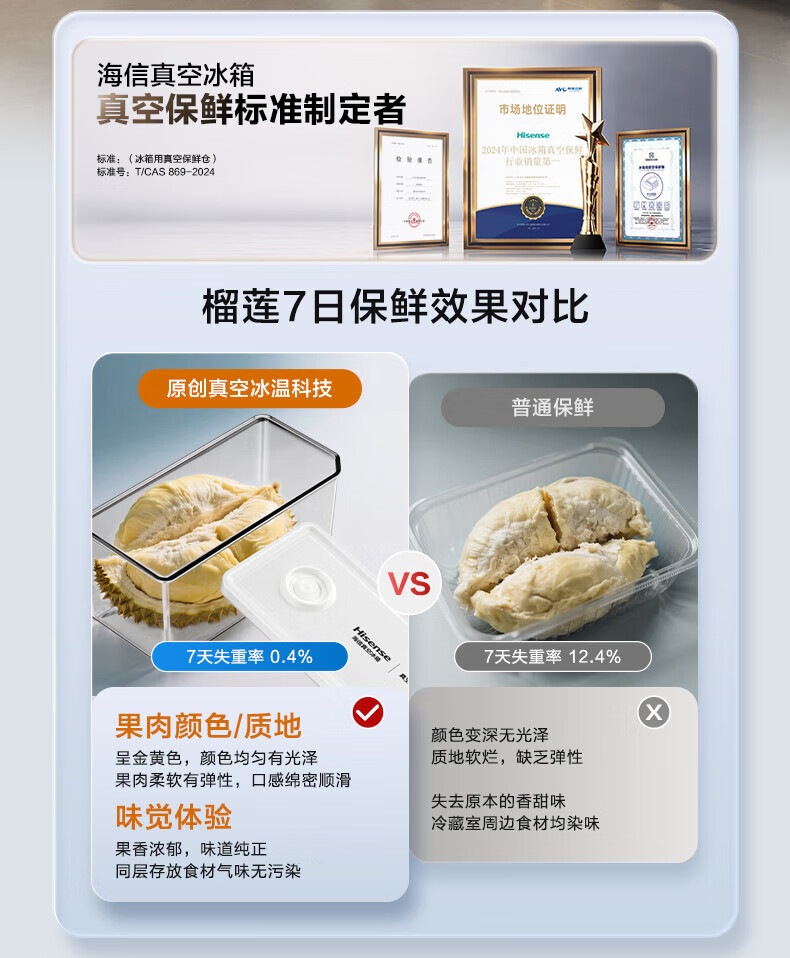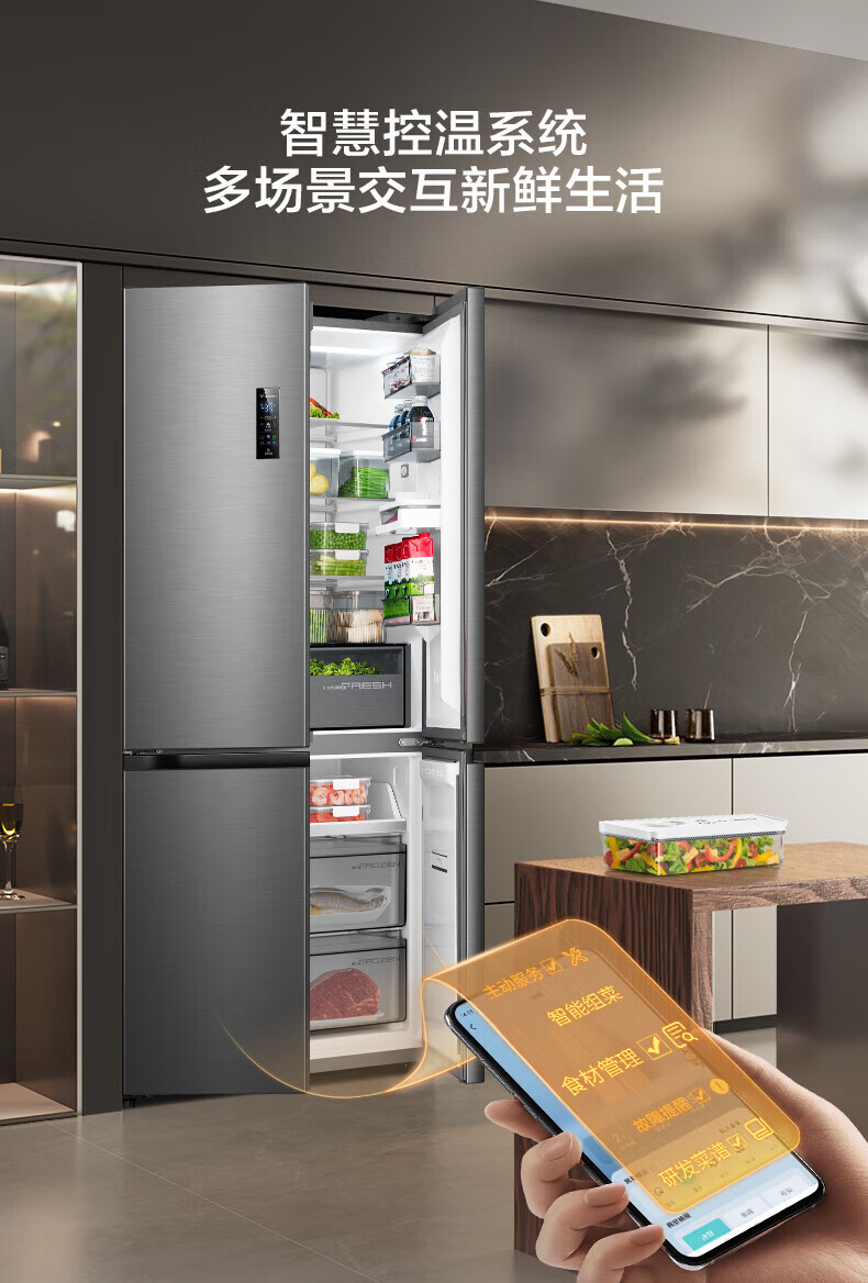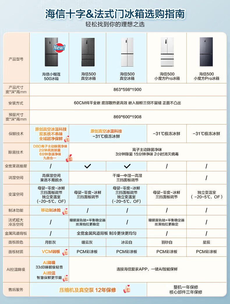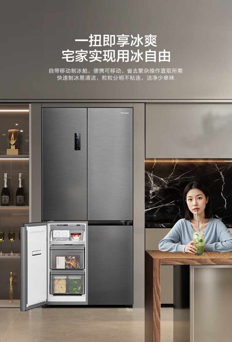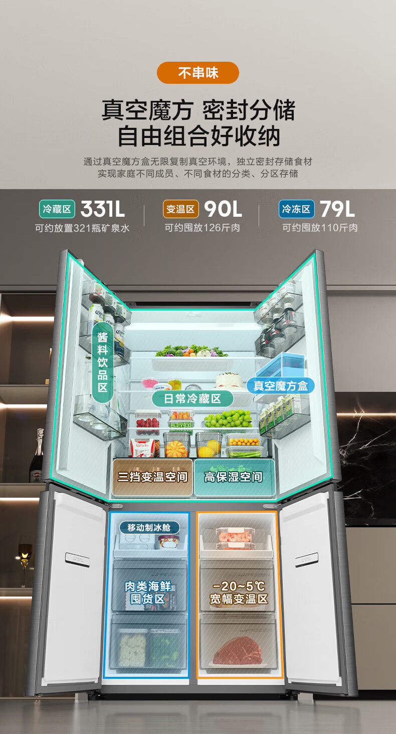 Hisense Small Durian 500 Refrigerator Vacuum Freshness Zero Embedded Refrigerator Cross Door Four Door Thin Dual System Level One Energy Efficiency Home Appliance Subsidy 20% BCD-500V5CZKQD Vacuum Ice Temperature Technology | Small Durian 500 Moon Shadow Gray