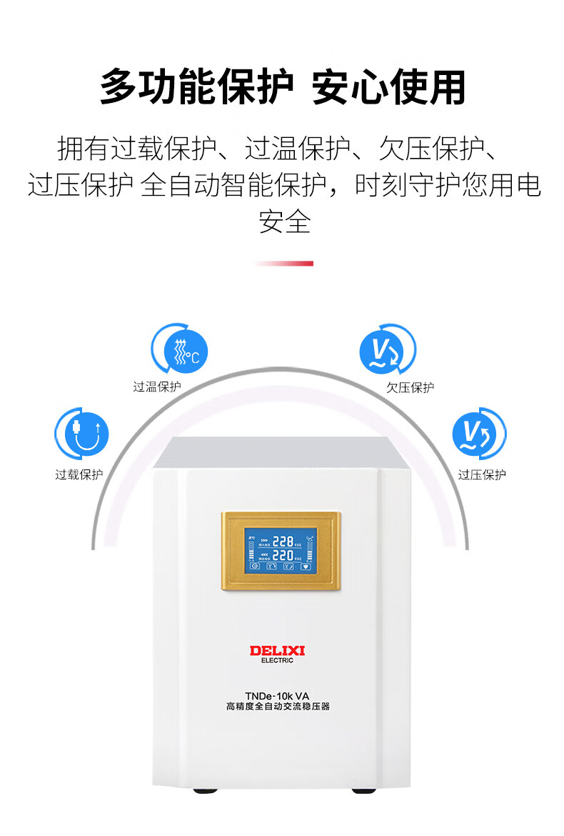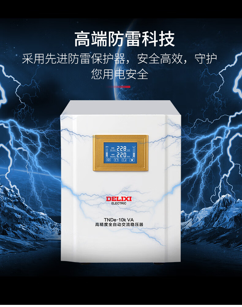 Delixi electrical voltage regulator TND3 fully automatic lightning protection 220v single-phase computer TV power supply voltage regulator stabilizer TND3-1.5KVA digital display lightning protection 1500W + row plug
