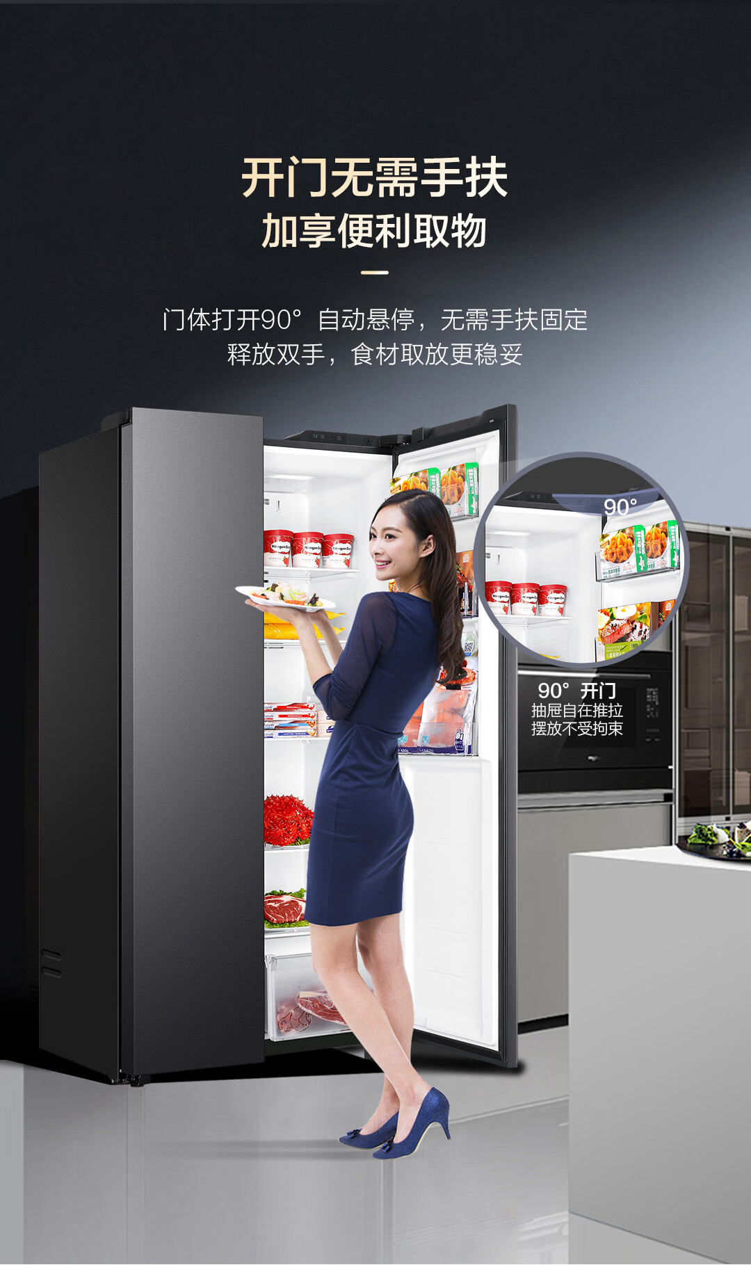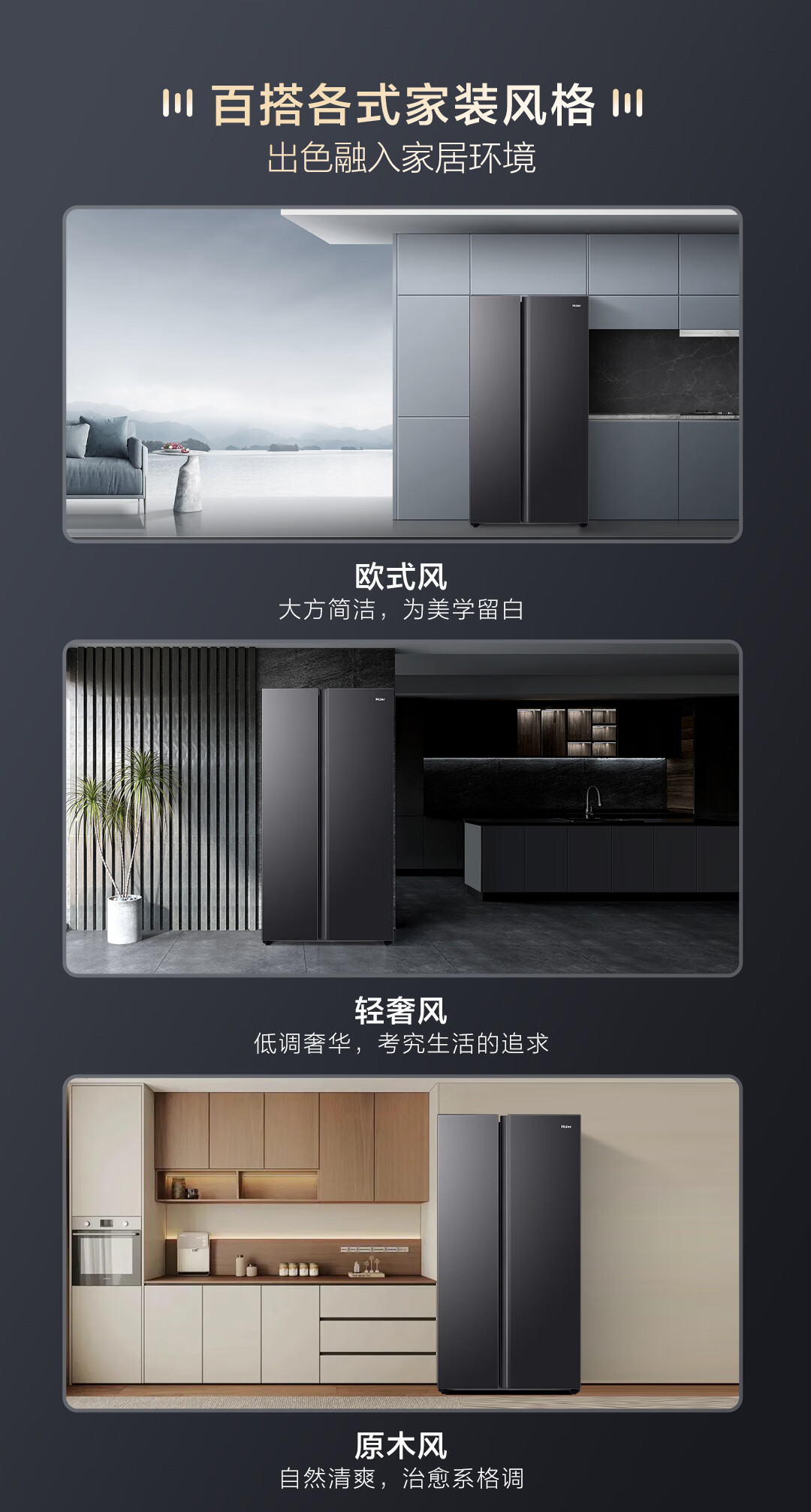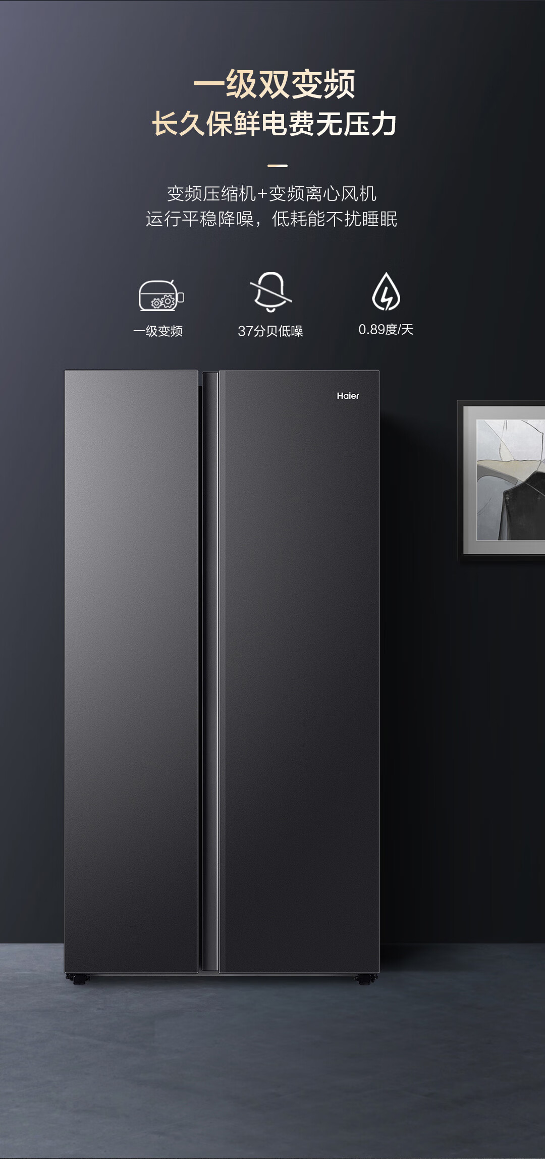 Haier refrigerator double-door door-to-door 517 household large capacity large freezing double frequency conversion new level energy efficiency air-cooled frost-free ultra-thin embedded deodorizing fresh-keeping and sterilizing refrigerator 517 liters of giant frozen large freezing + black gold purification