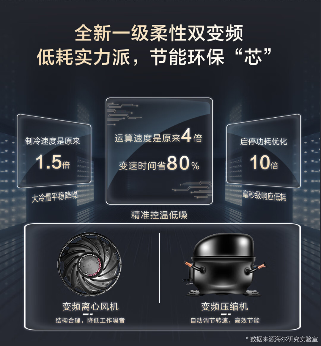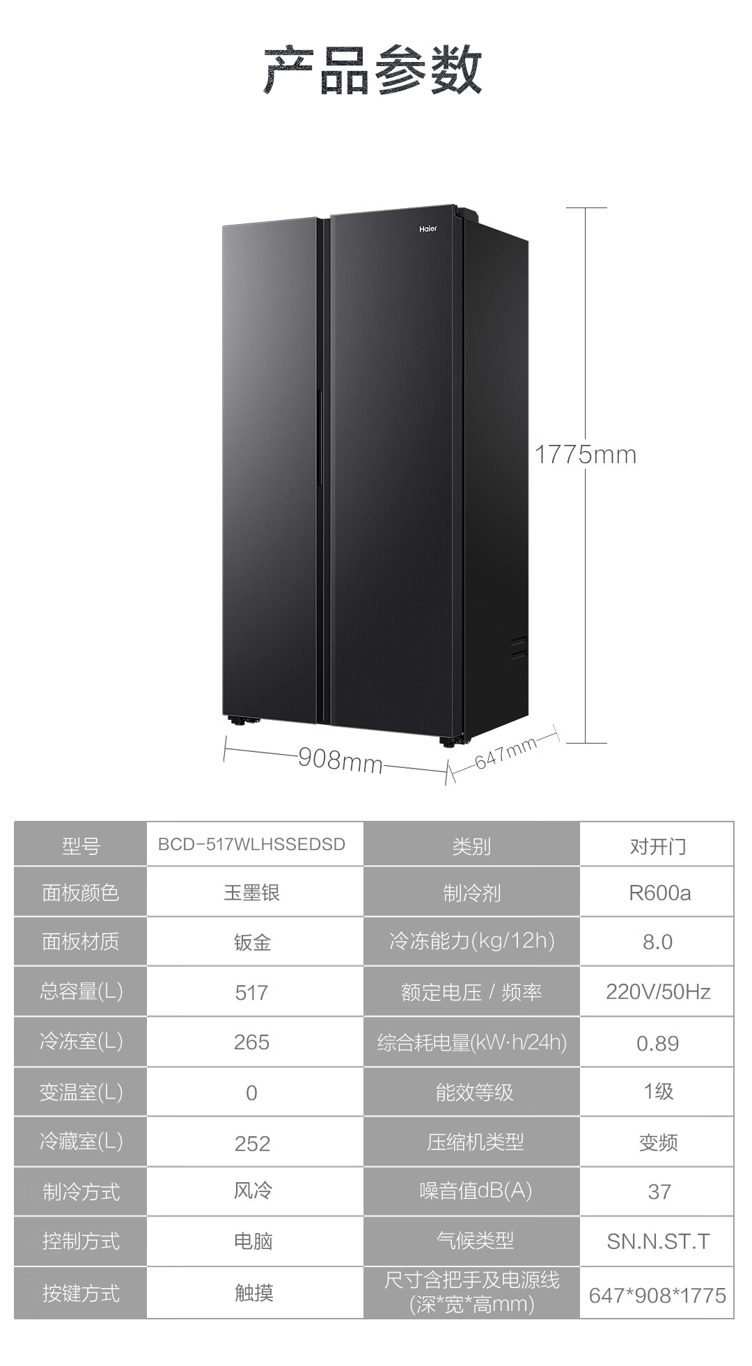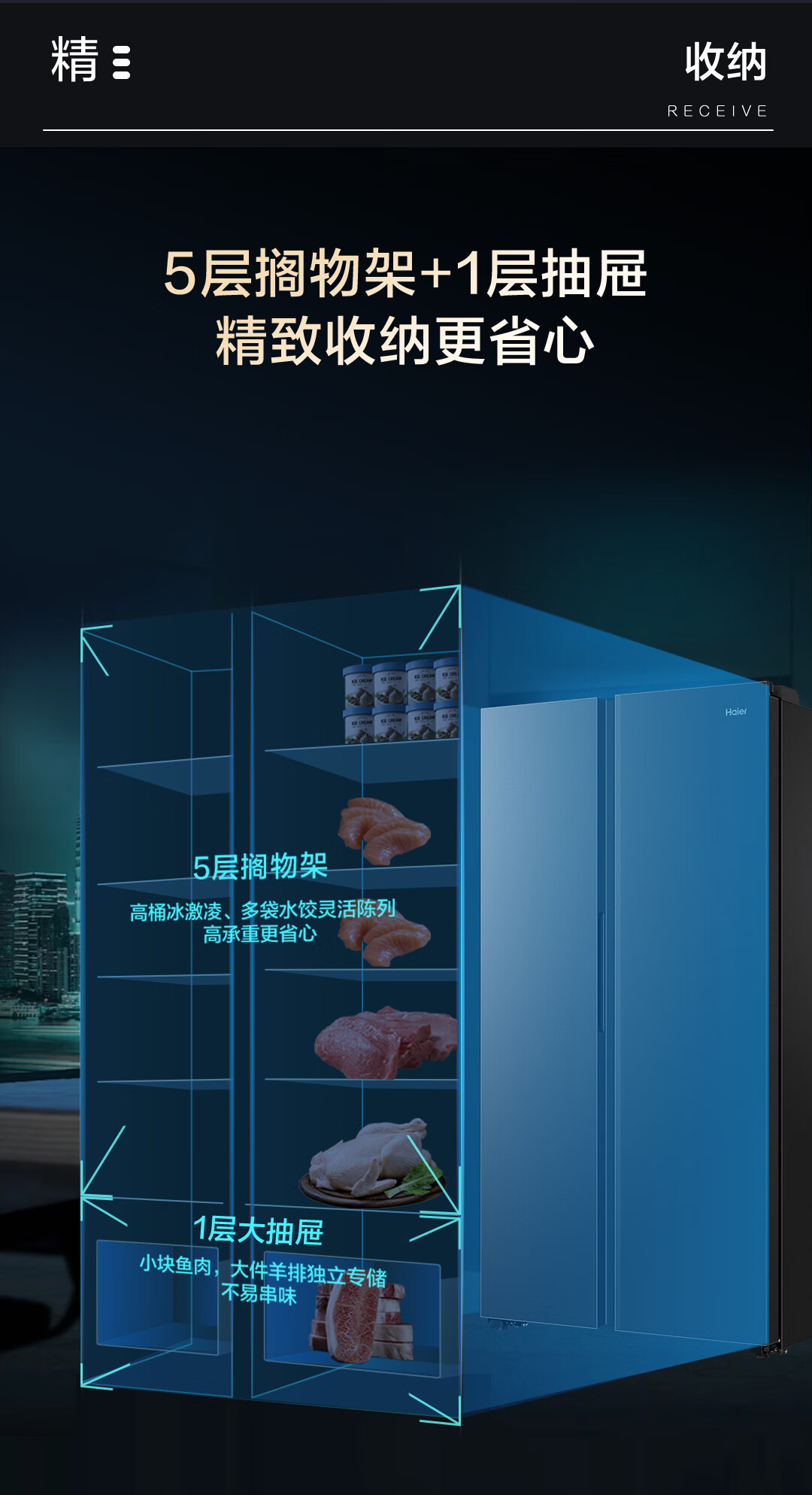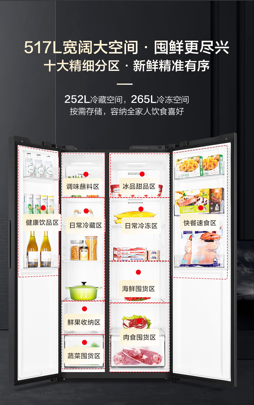 Haier refrigerator double-door door-to-door 517 household large capacity large freezing double frequency conversion new level energy efficiency air-cooled frost-free ultra-thin embedded deodorizing fresh-keeping and sterilizing refrigerator 517 liters of giant frozen large freezing + black gold purification