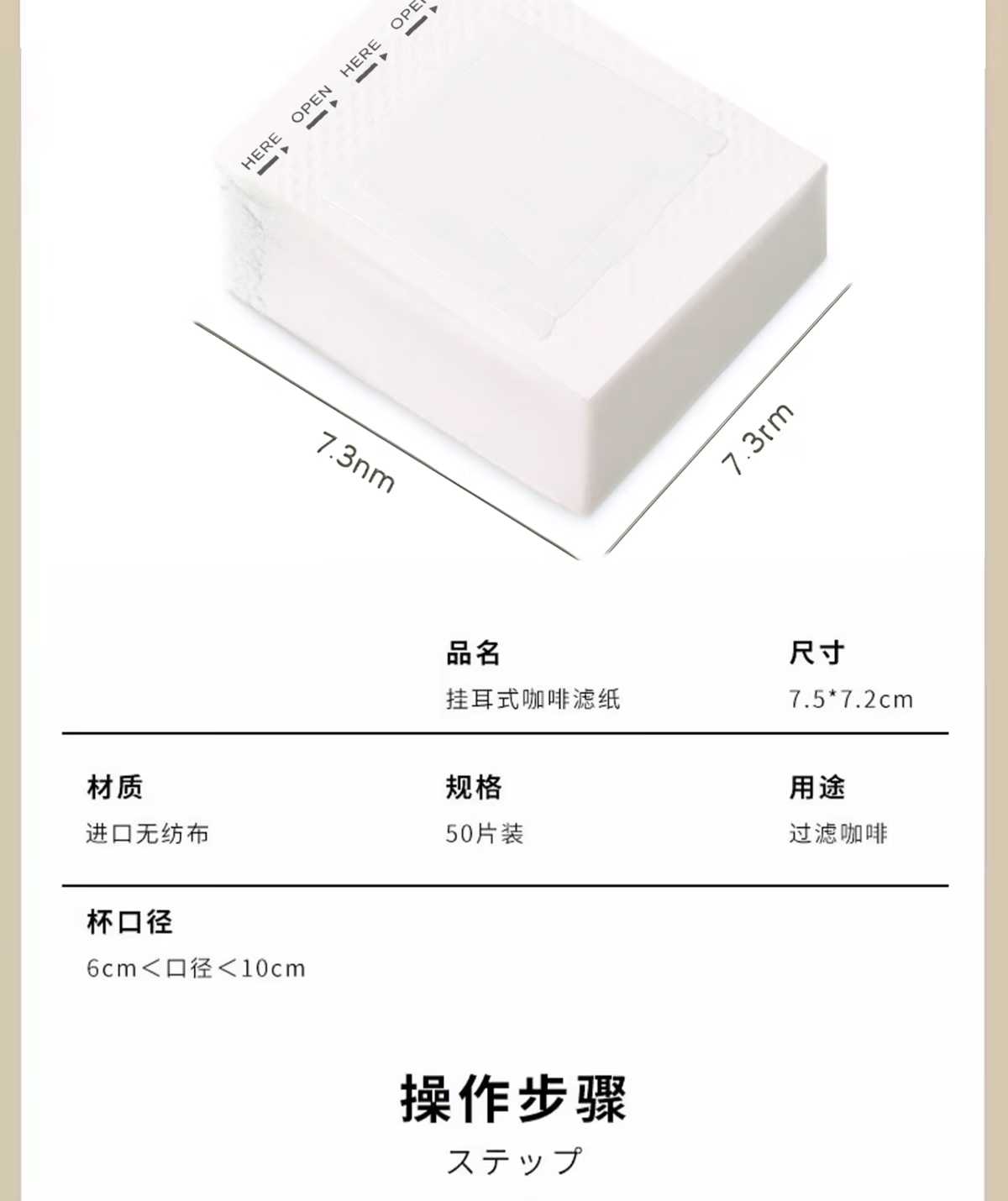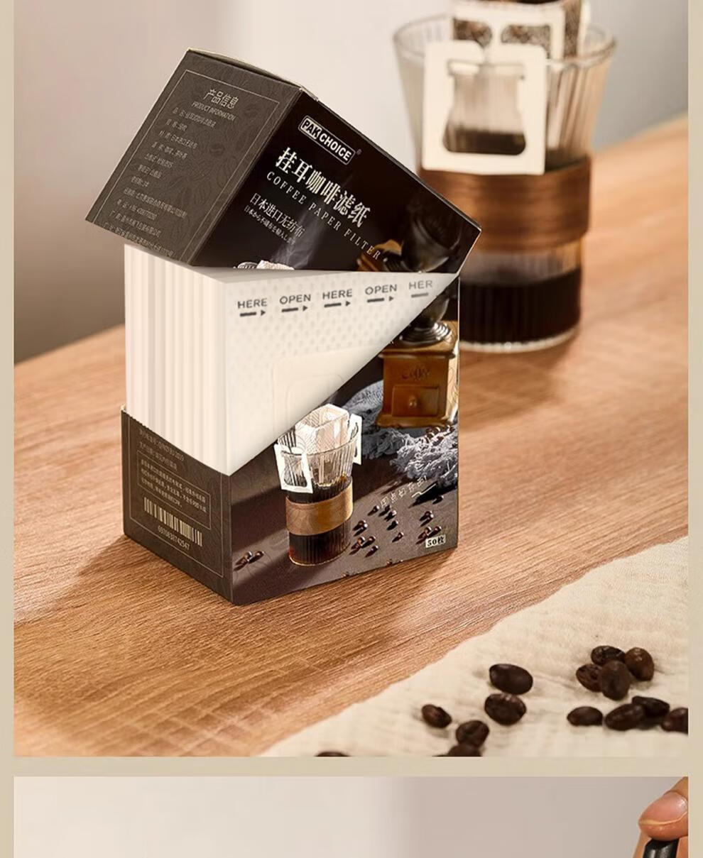 MIEHONE Japanese coffee filter paper hanging ear filter paper hand brewed coffee filter imported hanging ear bag disposable ear hanging coffee filter bag 50 pieces food grade material/high density/solid and durable-delivery spoon