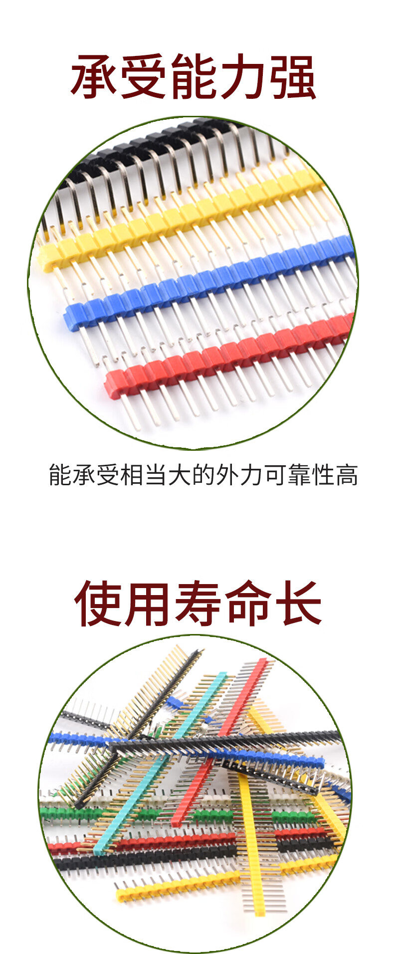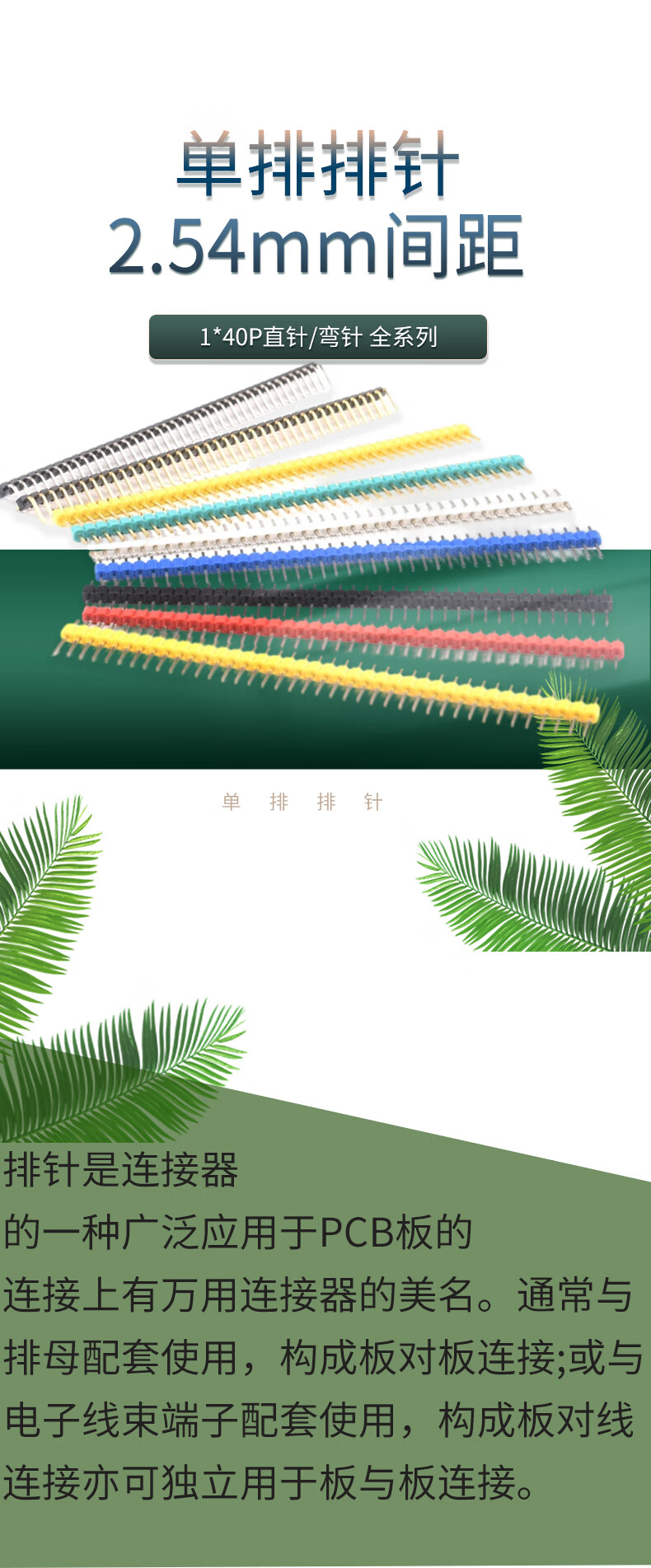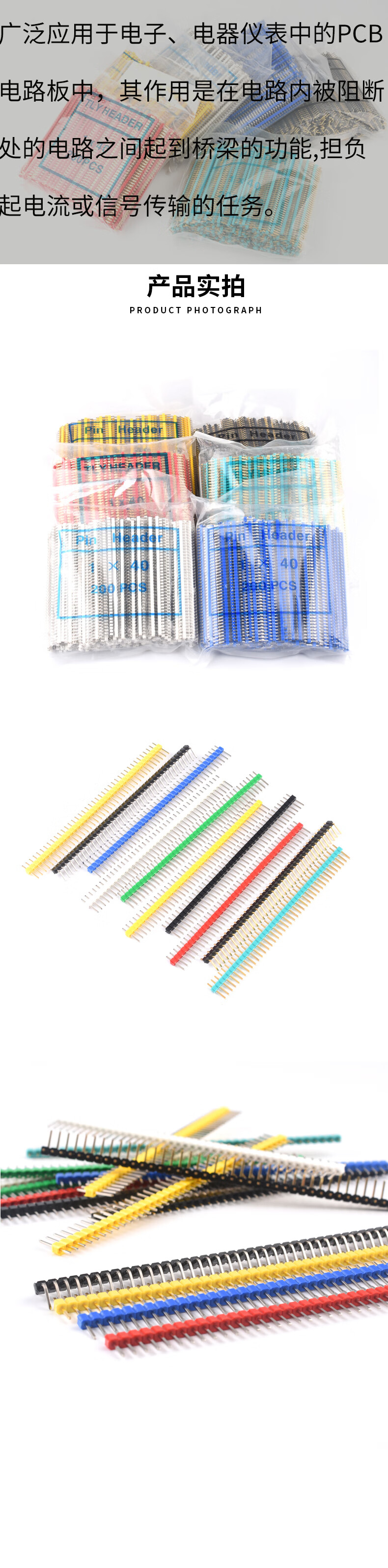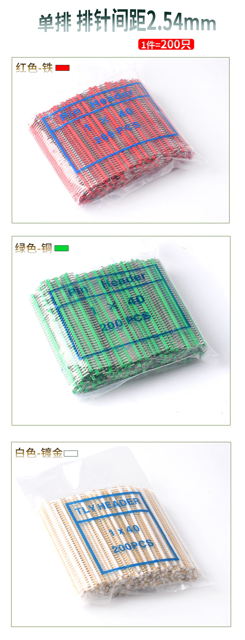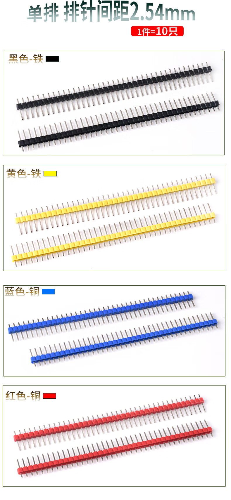 Dengshitang single and double row pin headers with 2.54mm spacing, 200 pieces, multi-color electronic components, straight pins and curved pins, gold-plated/tin-plated/copper/iron single and double row connectors, electronic manufacturing connections, double row black iron pins (100 pieces), whole package