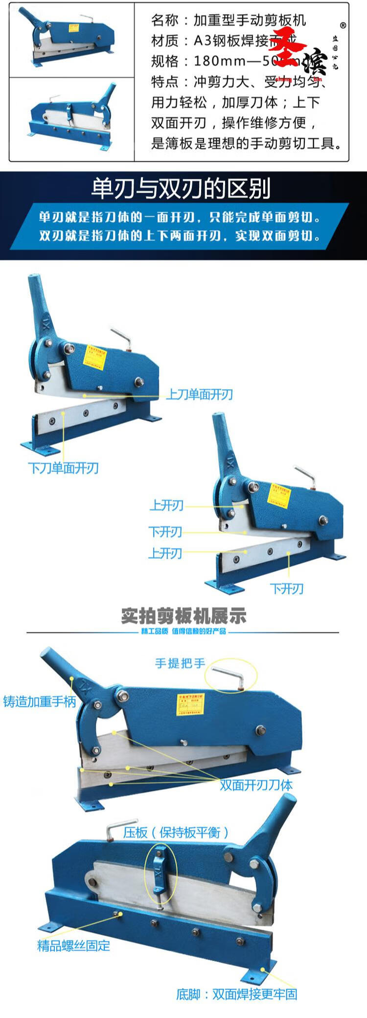 Aoyanlai manual shearing machine iron sheet shearing machine copper iron aluminum steel plate gold steel mesh guillotine iron sheet cutting tool. 500MM upper and lower knife double-sided edge