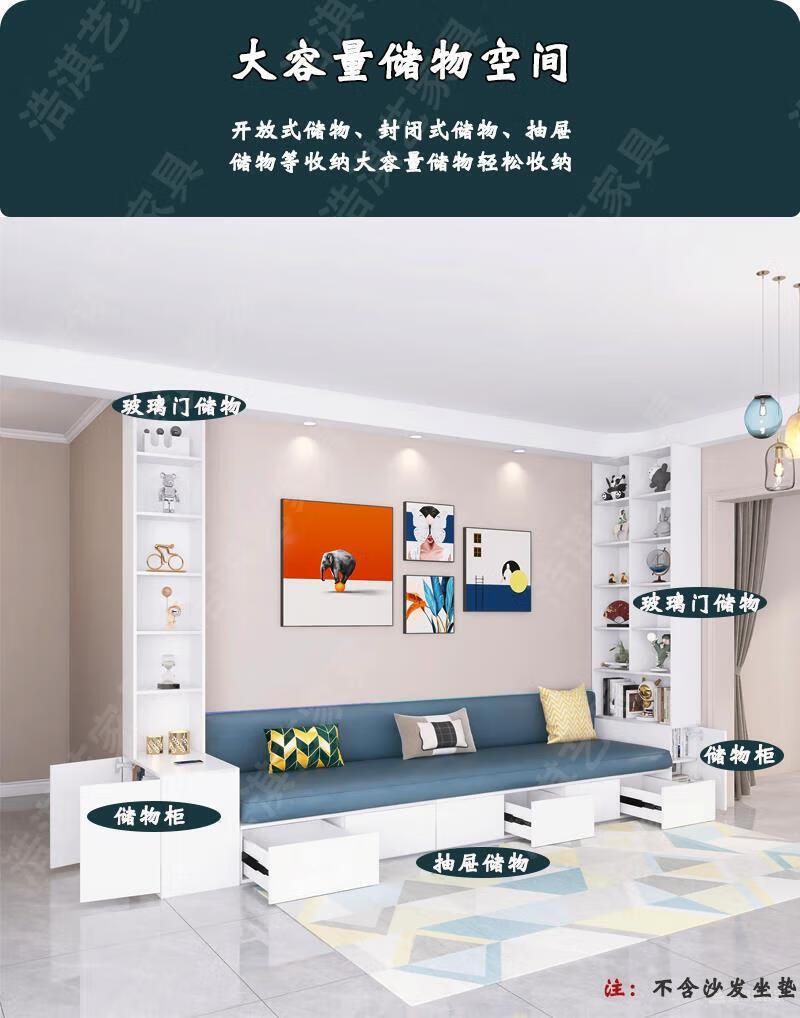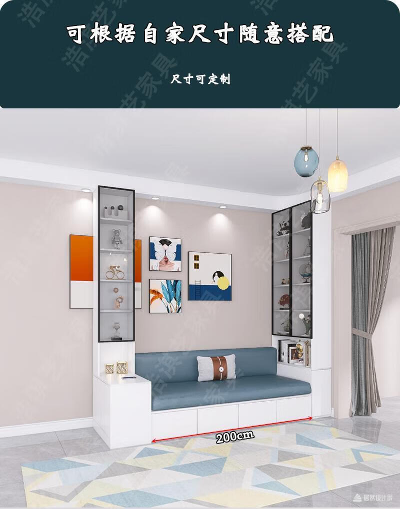 Ximofang living room sofa cabinet integrated storage card seat bookcase with cabinet door small apartment tatami sofa side cabinet combination style 1 230cm card seat bookcase