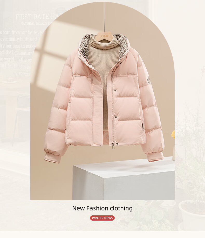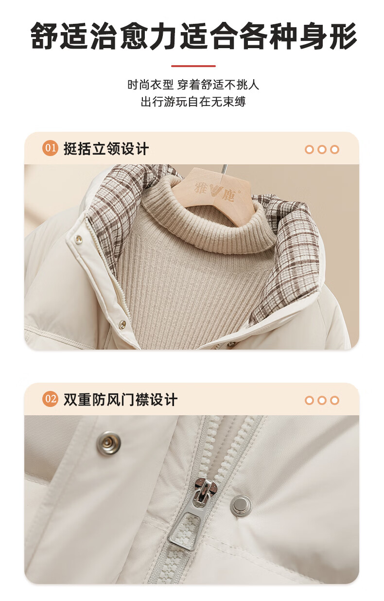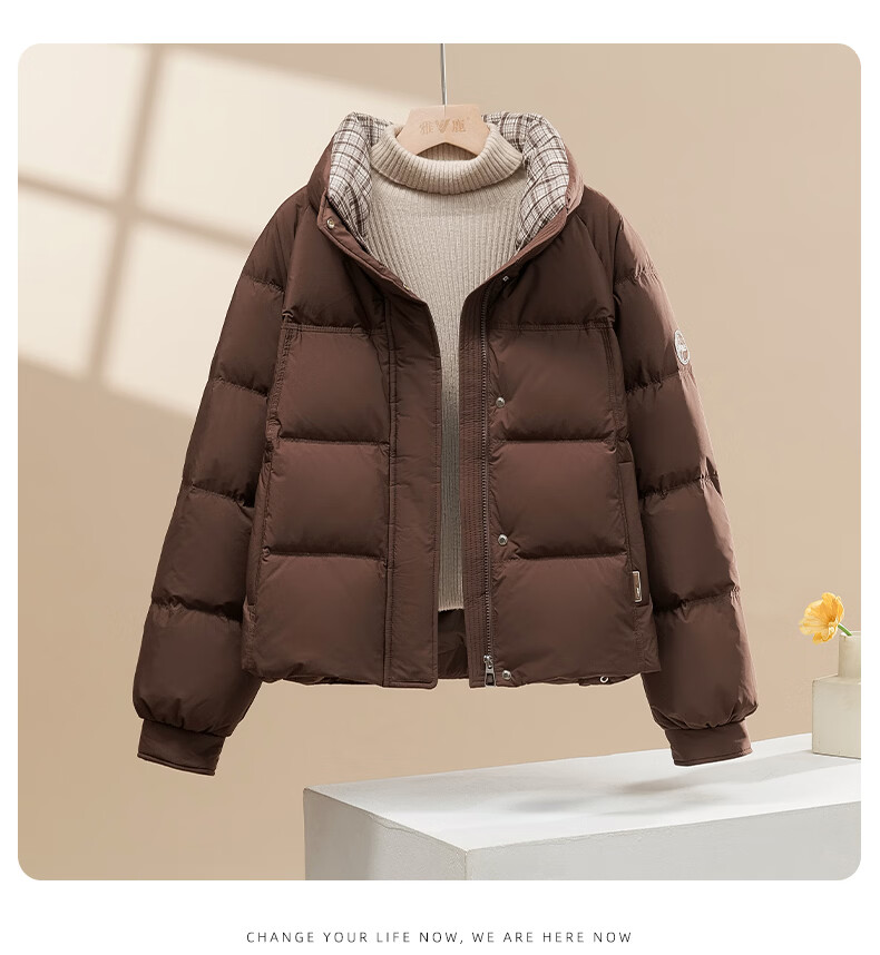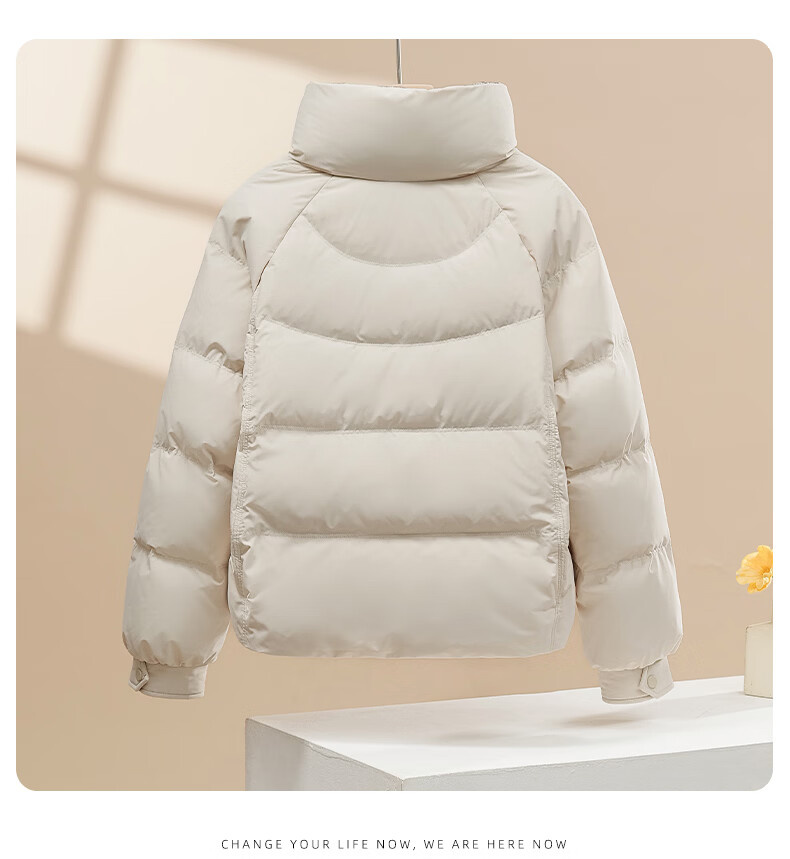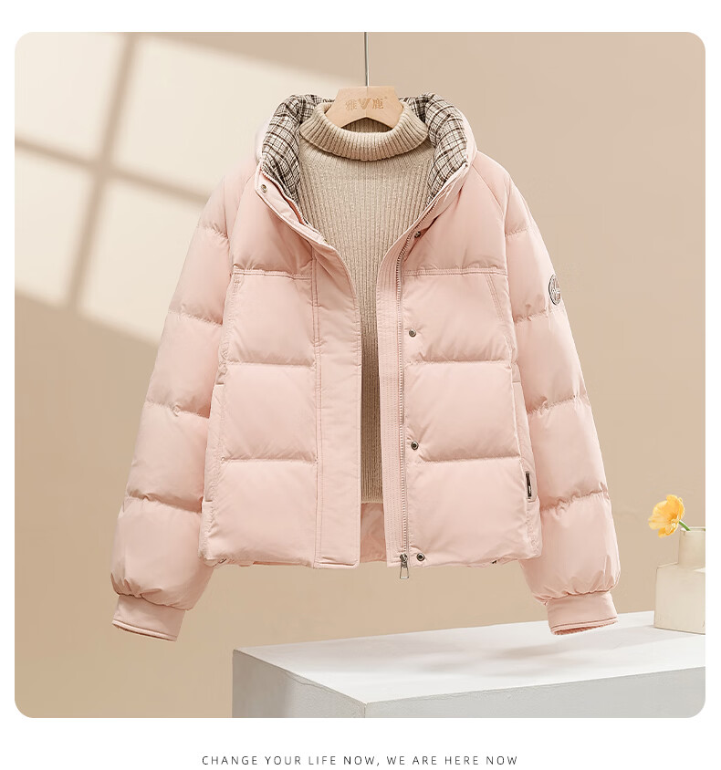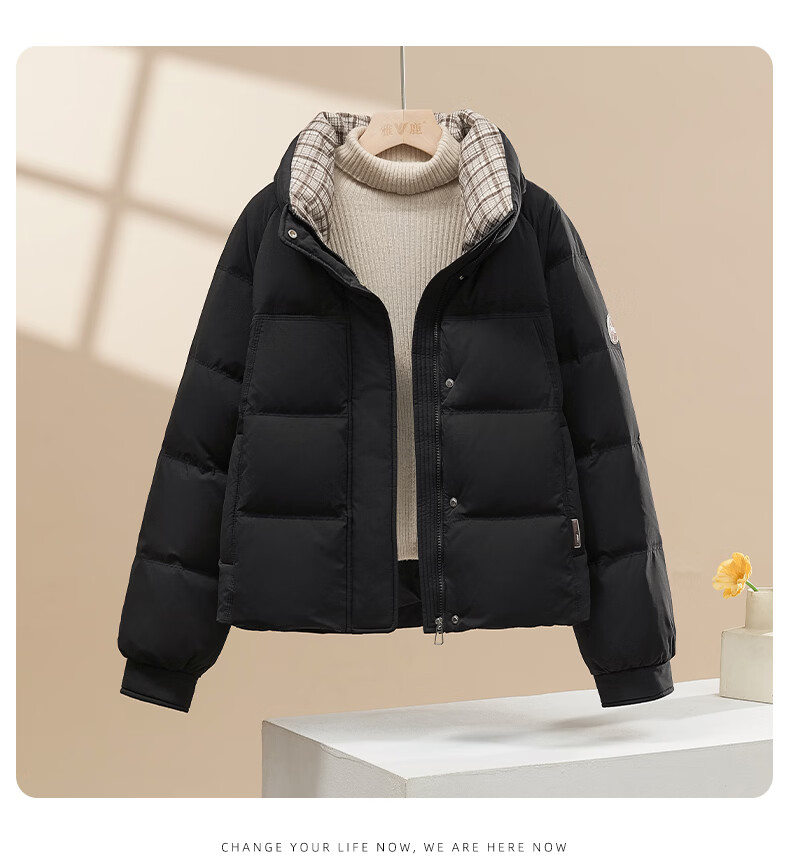 Yalu Down Jacket Women's Winter Commuting Versatile Thickened Bread Jacket Contrast Color Stand Collar Warm Casual Small Sweet Jacket Black M Recommended 90-110 catties