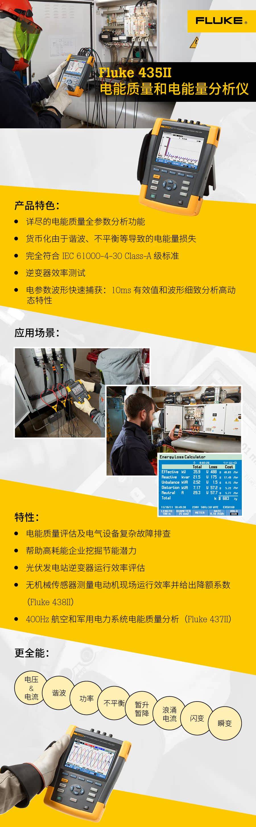 Fluke fluke434-II/F435-II/F437-II/F438-II/F345 power quality analyzer FLUKE_438-II