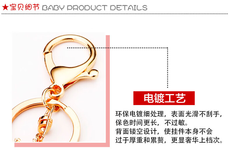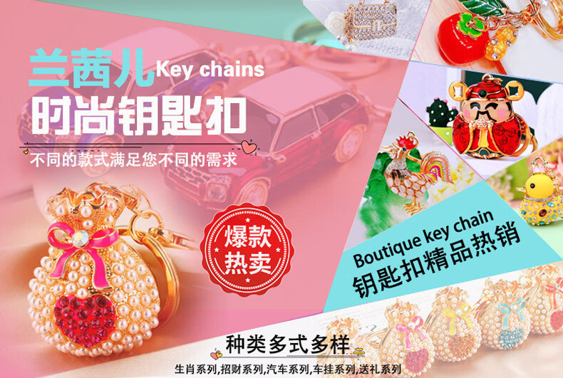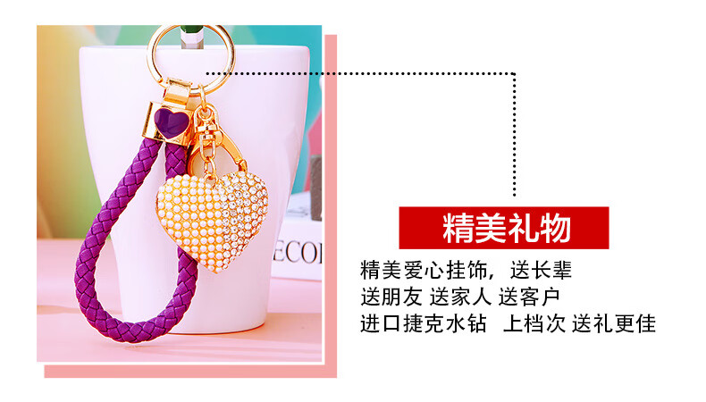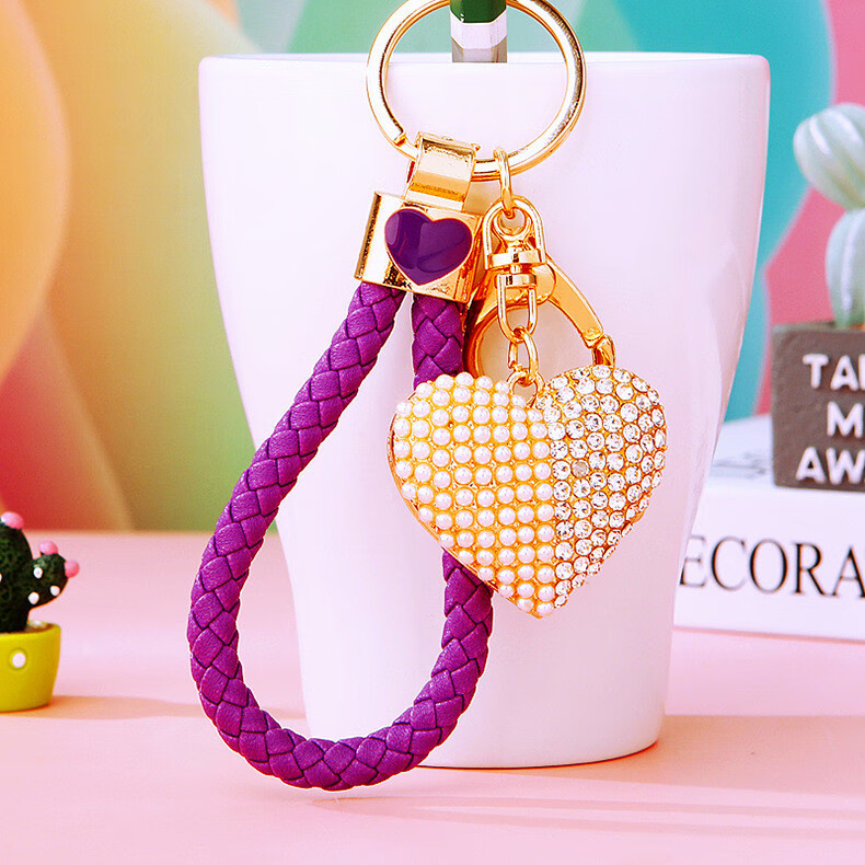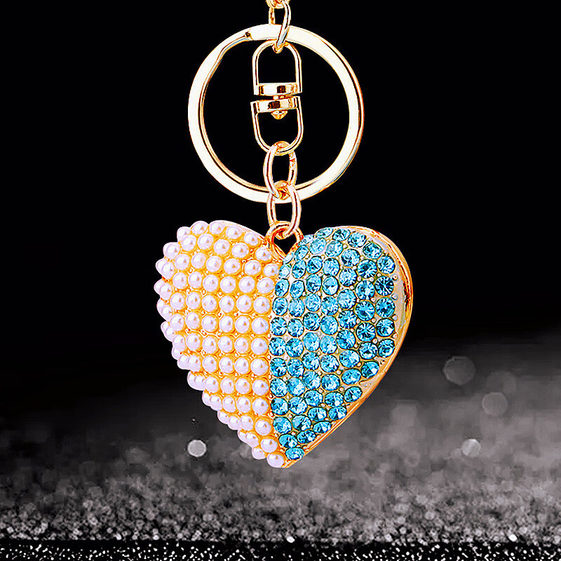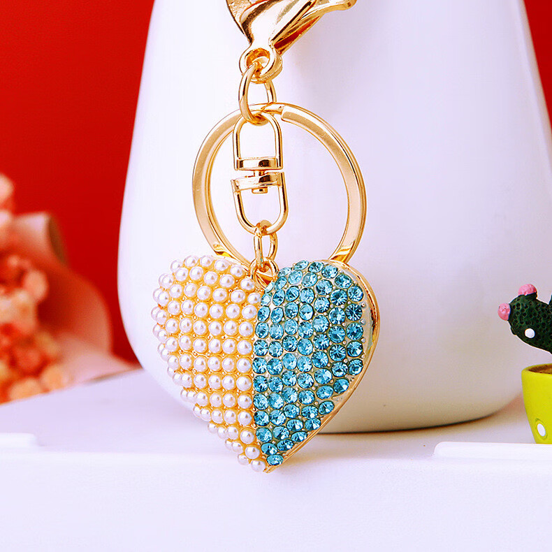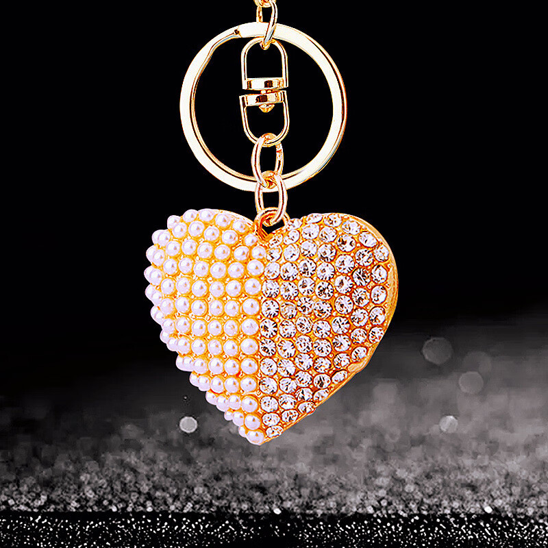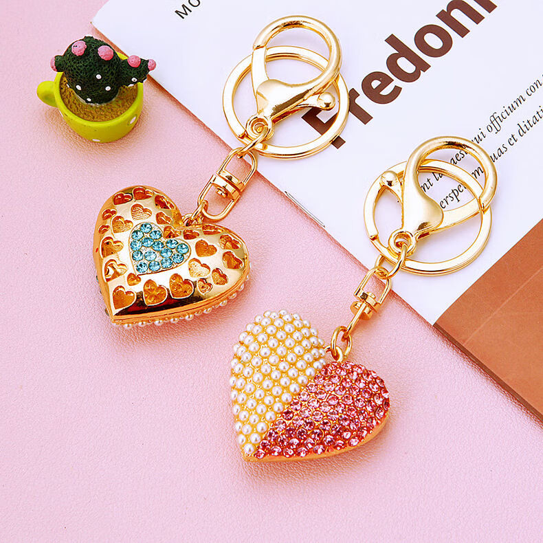 Pearl inlaid diamond double-sided love car keychain metal women's bag pendant key chain chain creative cross-border red rope + a525 double-sided pearl love red single opp bag 7
