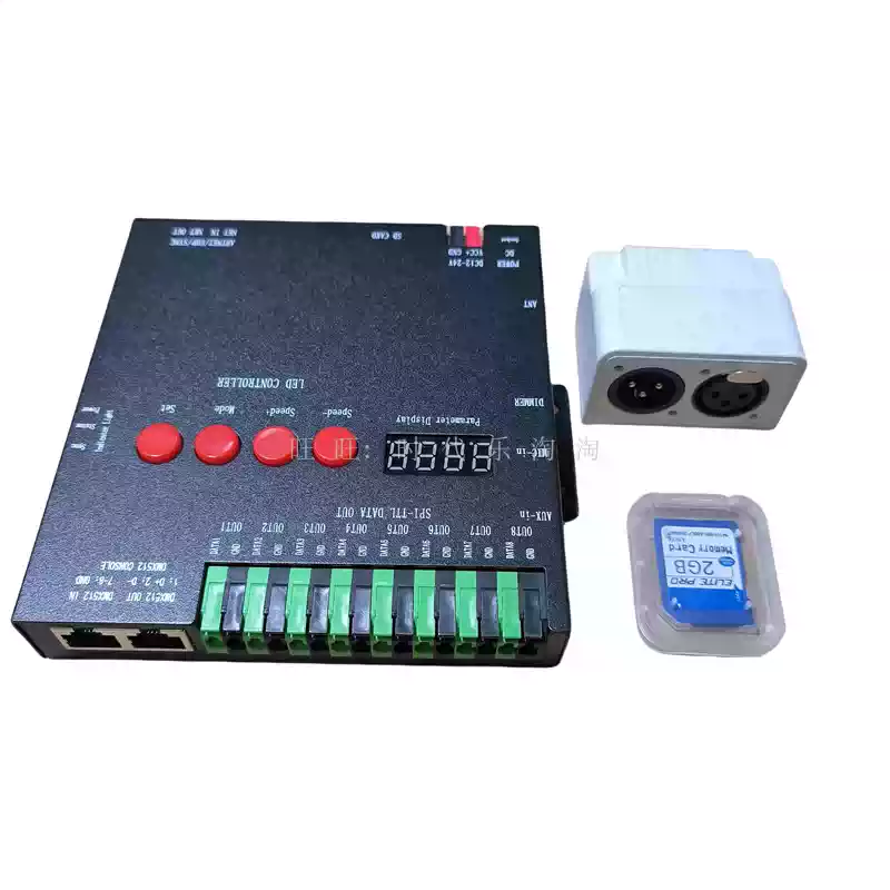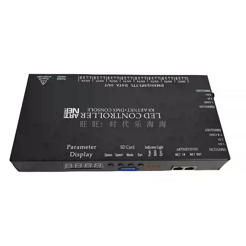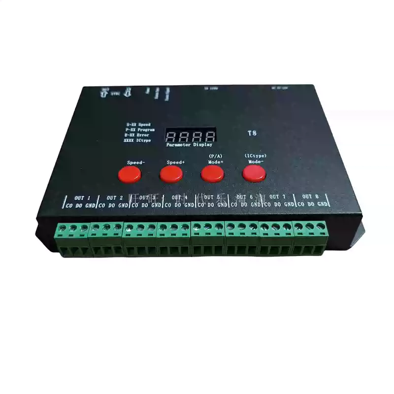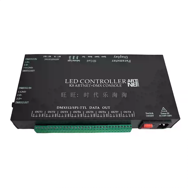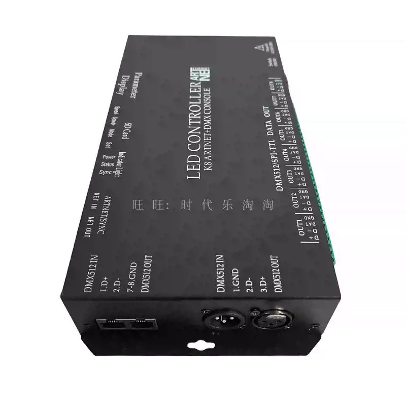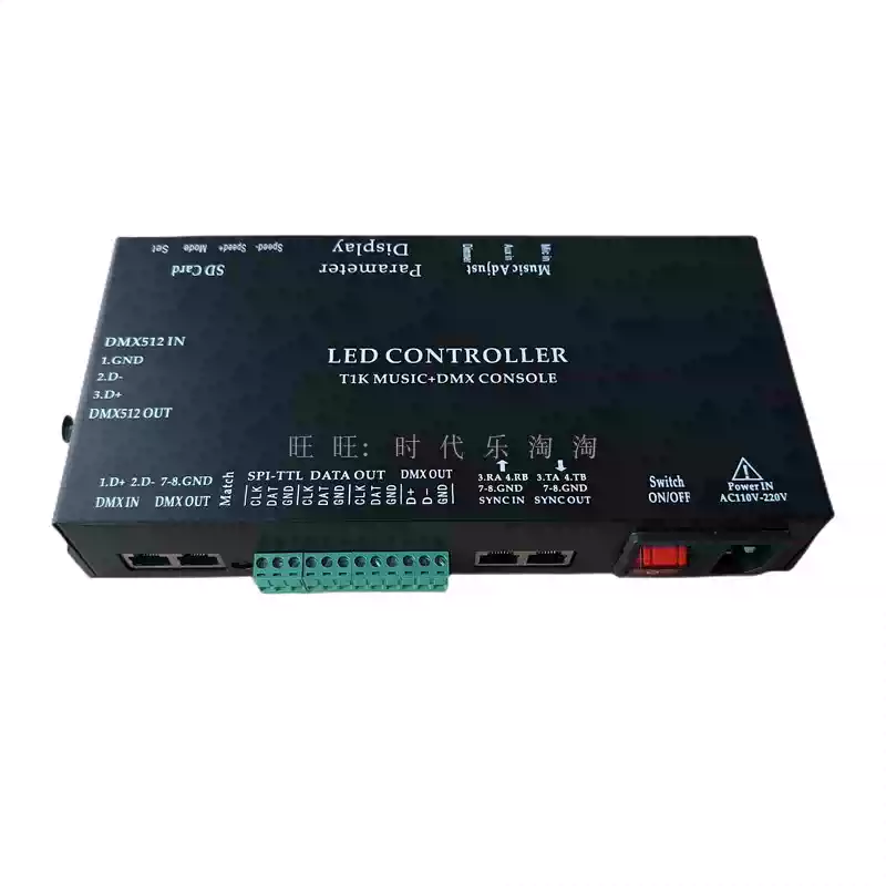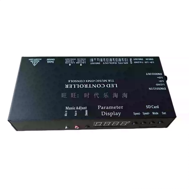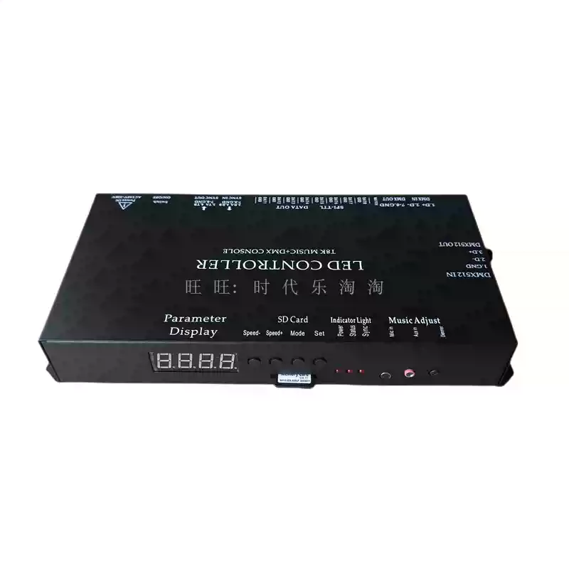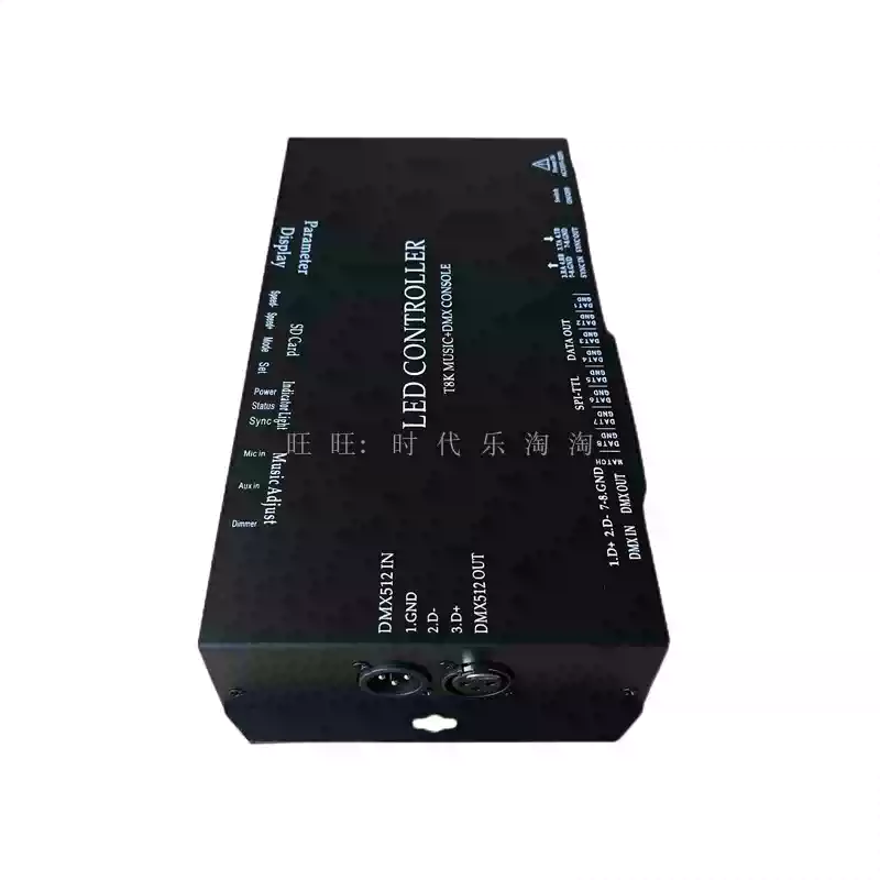 LED full-color fantasy lighting controller running water horse racing meteor bar music DMX512 console programmable T8K sound control + DMX512 + 8 ports