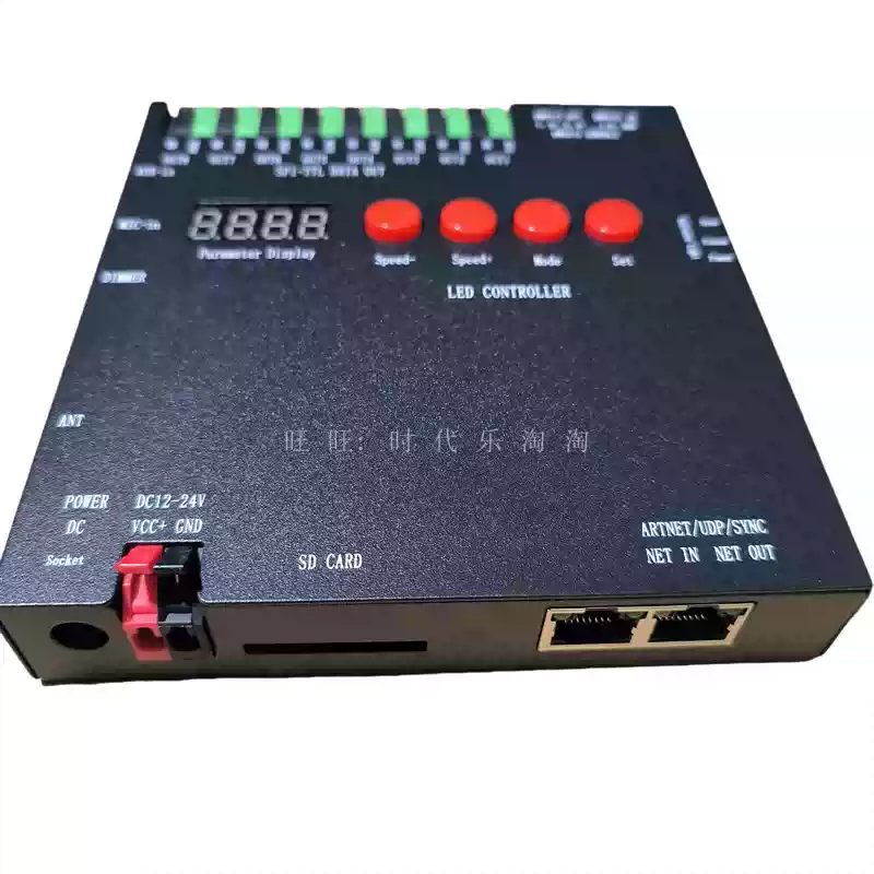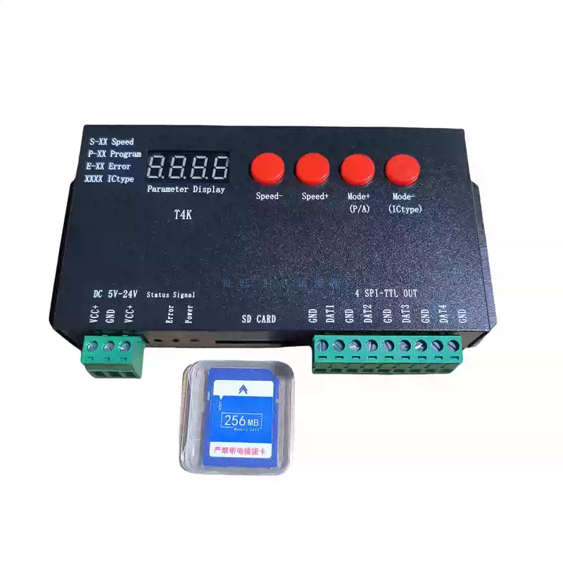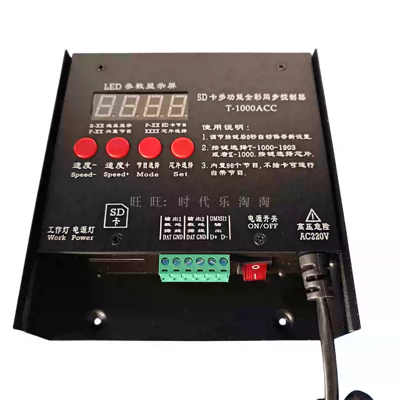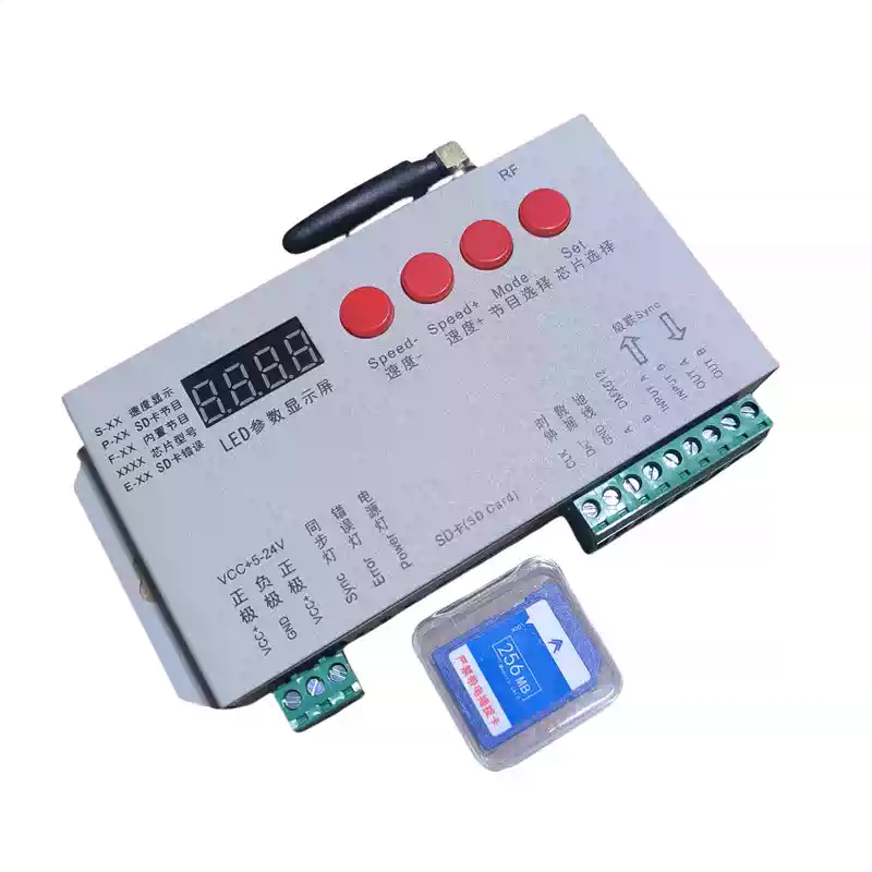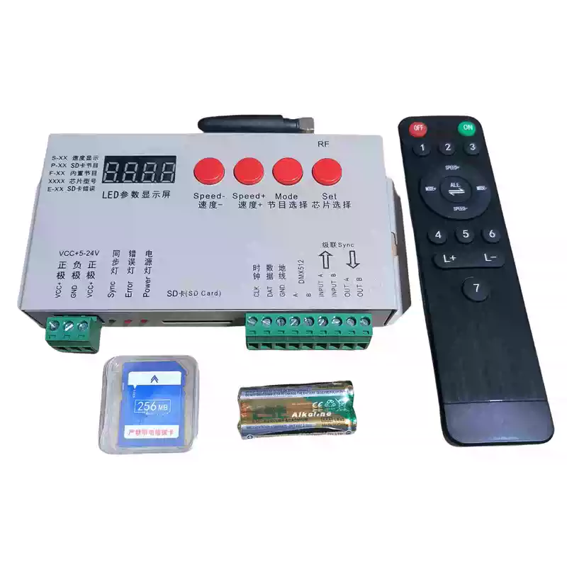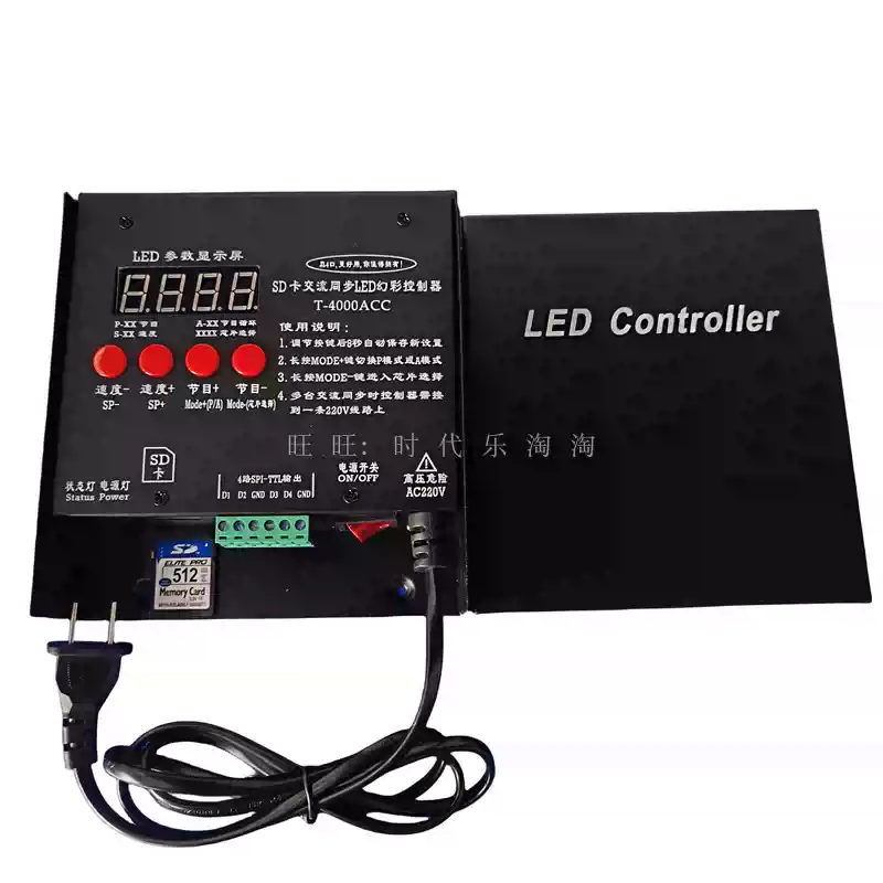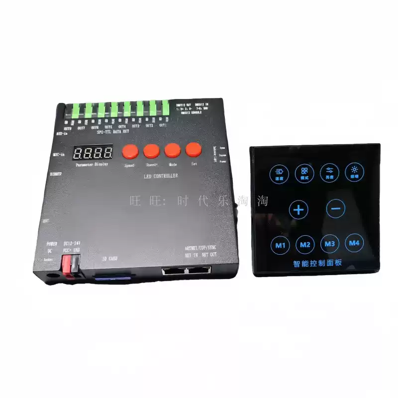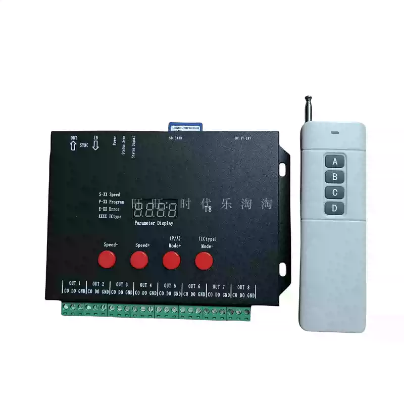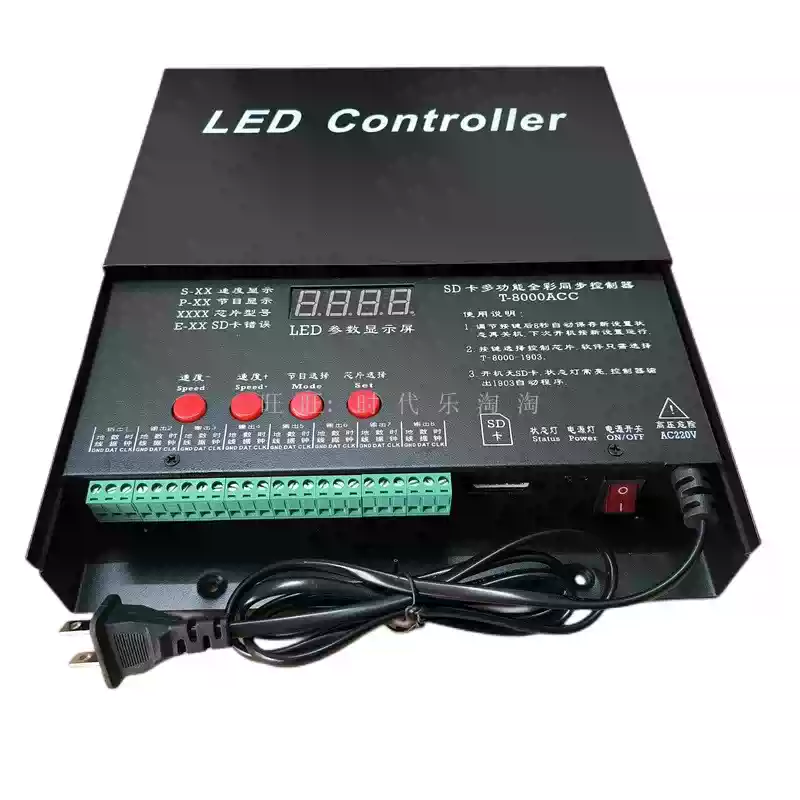 LED full-color fantasy lighting controller running water horse racing meteor bar music DMX512 console programmable T8K sound control + DMX512 + 8 ports