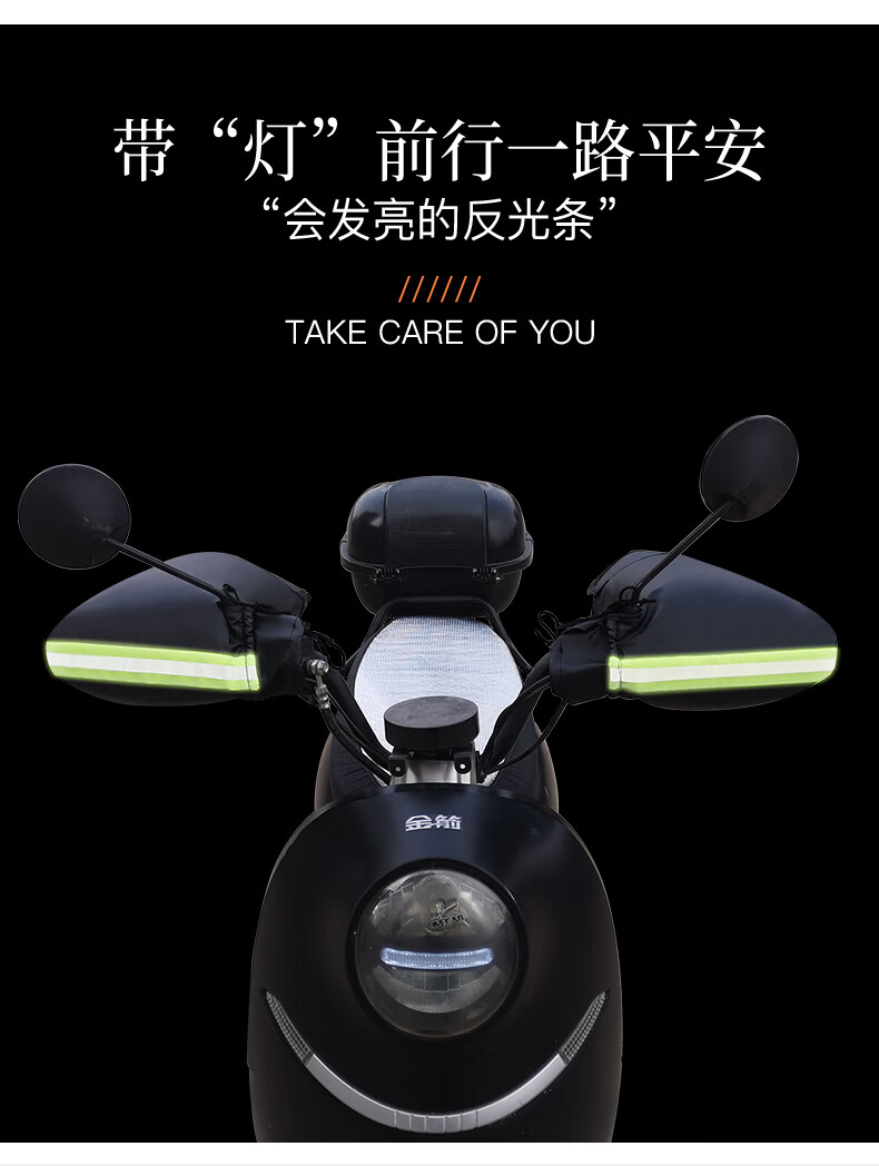 JD Logistics Electric Vehicle Gloves Battery Motorcycle Windshield Handguard Waterproof Motorcycle Warm Handle Cover Black Green Reflective Strip Grip Cover