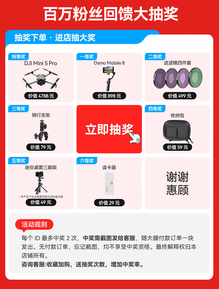 DJI Action 6 Action Camera Outdoor Motorcycle Cycling Diving Hiking vlog Portable 4K All-in-One Flagship Camera Variable Aperture Osmo Action 6 Action 6 Shooting Package Exclusive to Tomorrow Express Standard Edition (excluding free replacement)